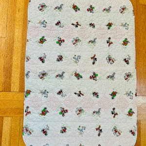 The name of this pattern is "Grandmother's Favorite" and this small quilt is circa 1990s. Beautifully machine quilted by an enterprising quilter who used very high-quality cotton fabrics for the piecework and the back.