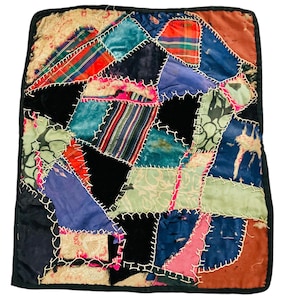 The cotton fabrics are very high quality and the back is a navy blue that really sets off the red, white and blue quilting that's been done in stars and a variety of lovely geometric patterns. See photos.