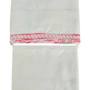 Beautifully hand crocheted-tatted pair of cotton pillowcases circa 1940s.