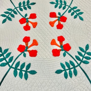 The quilt is in excellent antique condition with some fraying of the binding and overall fading of the fabrics. There are also several tiny dark spots (less than 1/8 inch) on the back that do not show or effect the front.