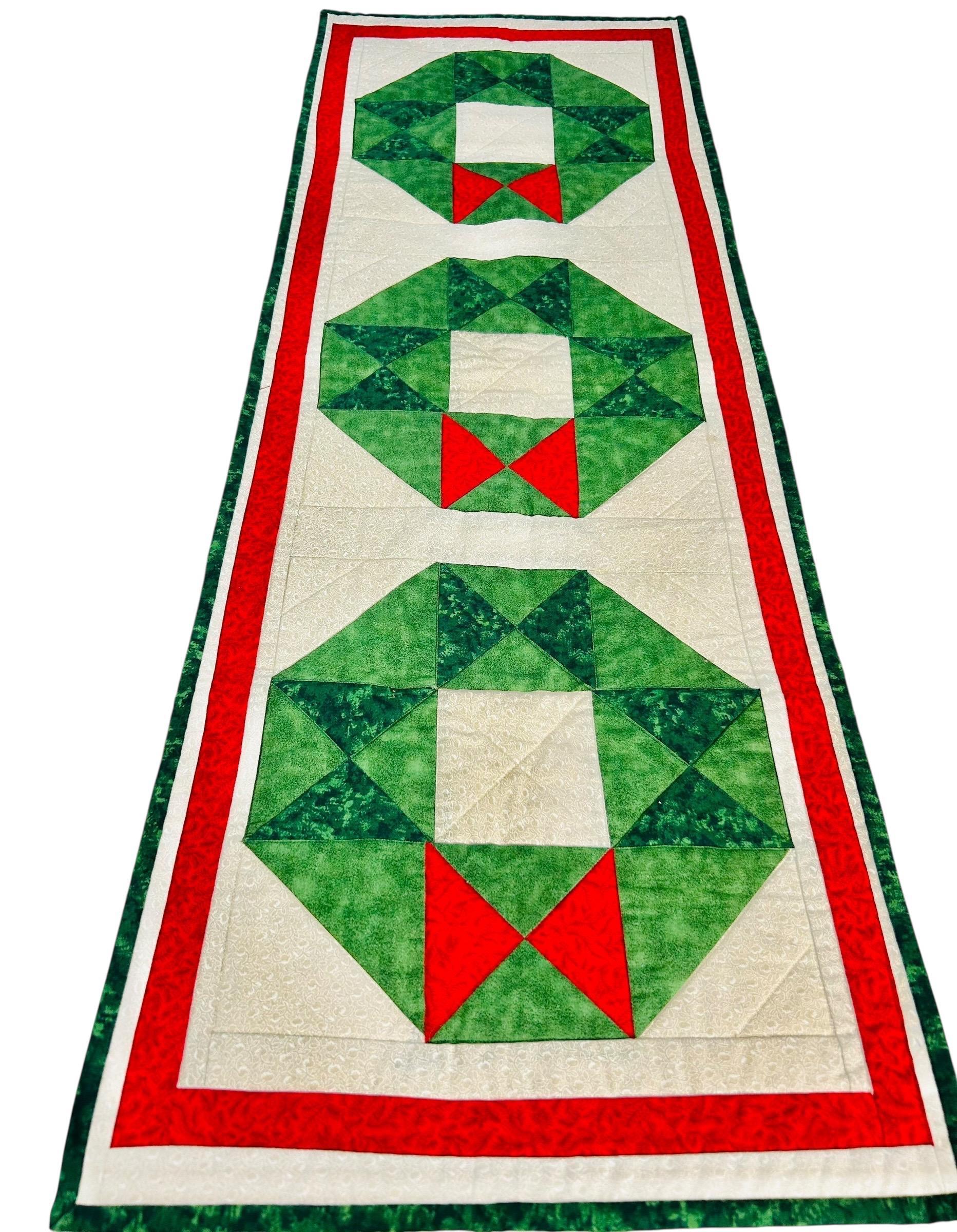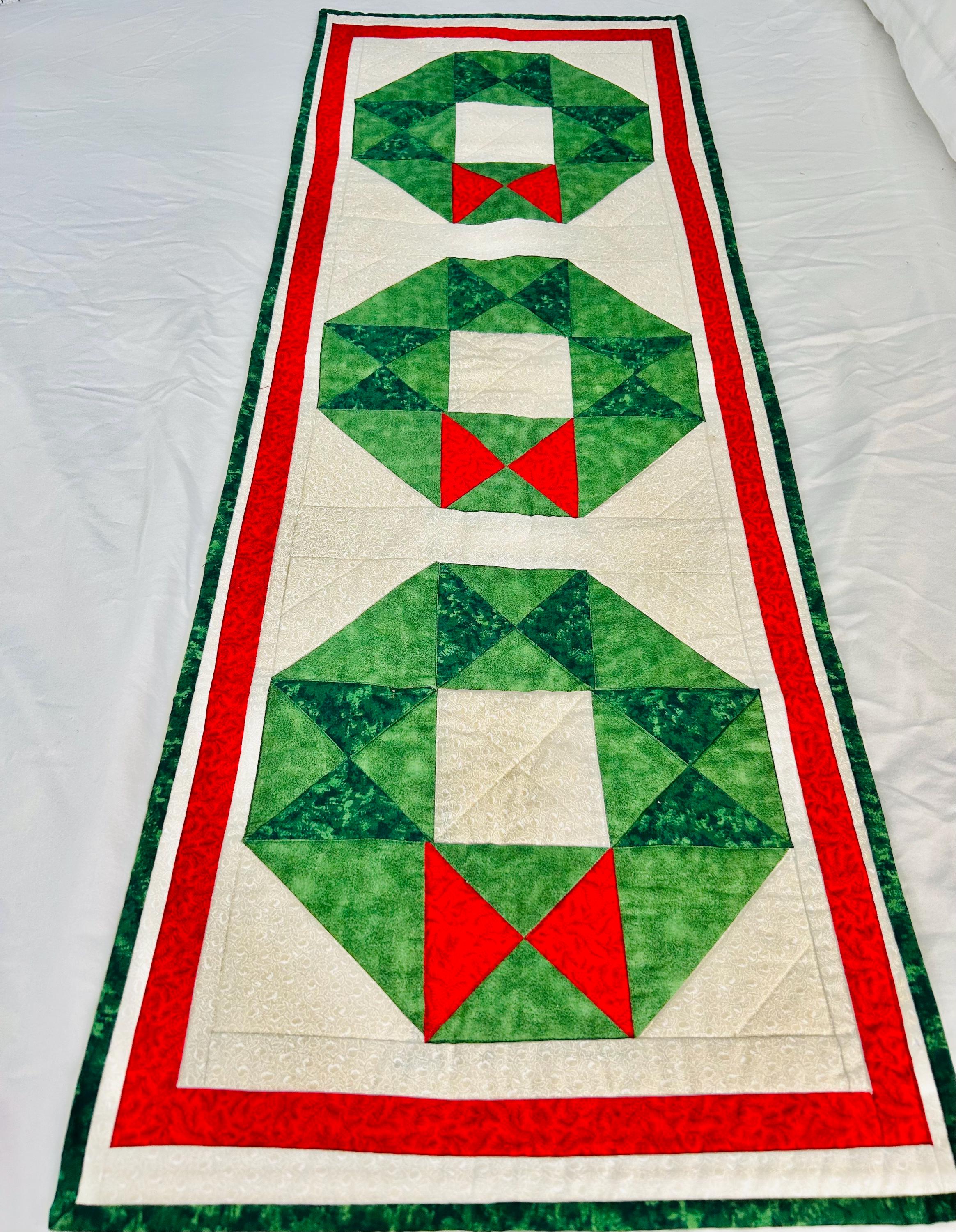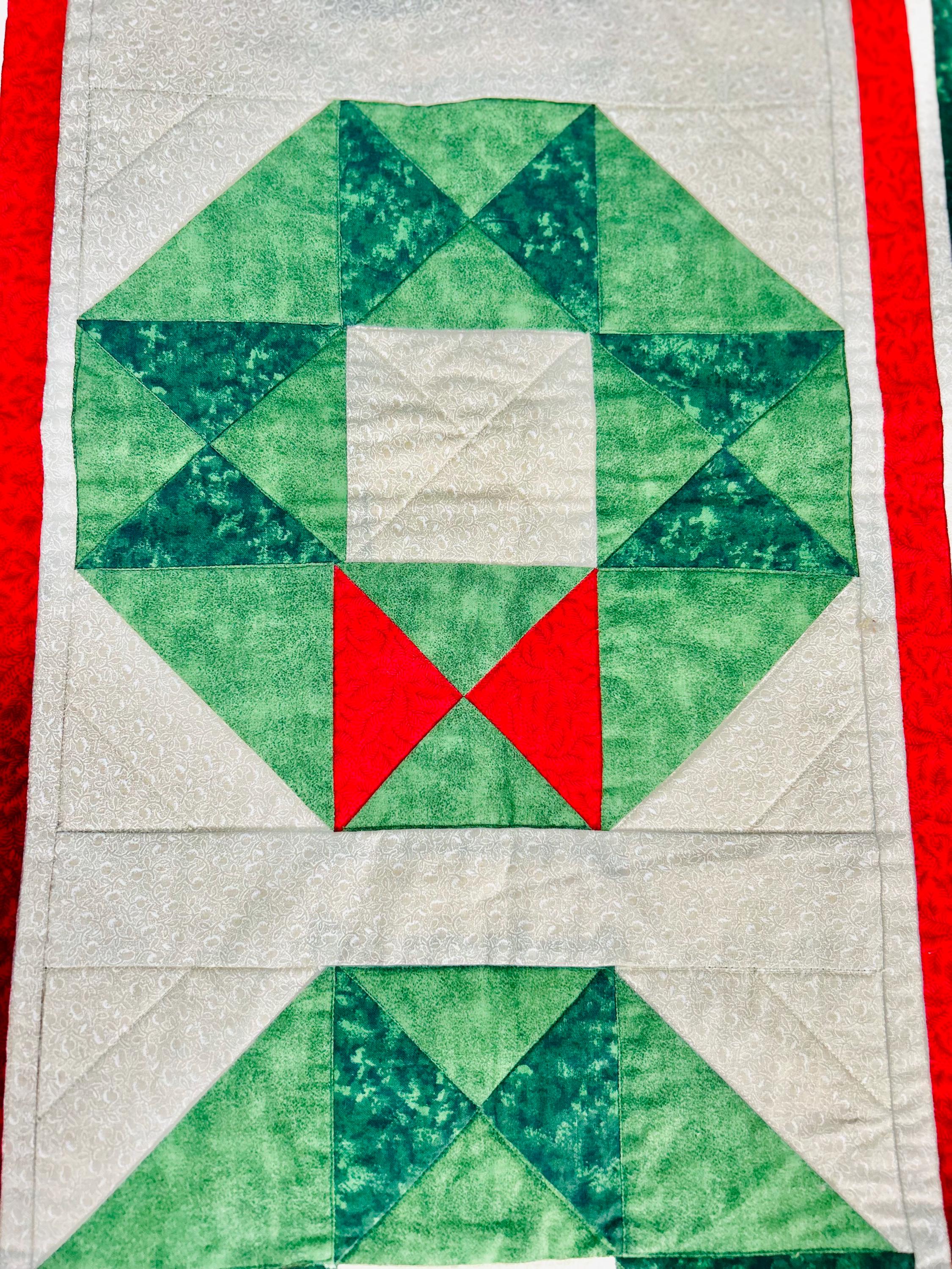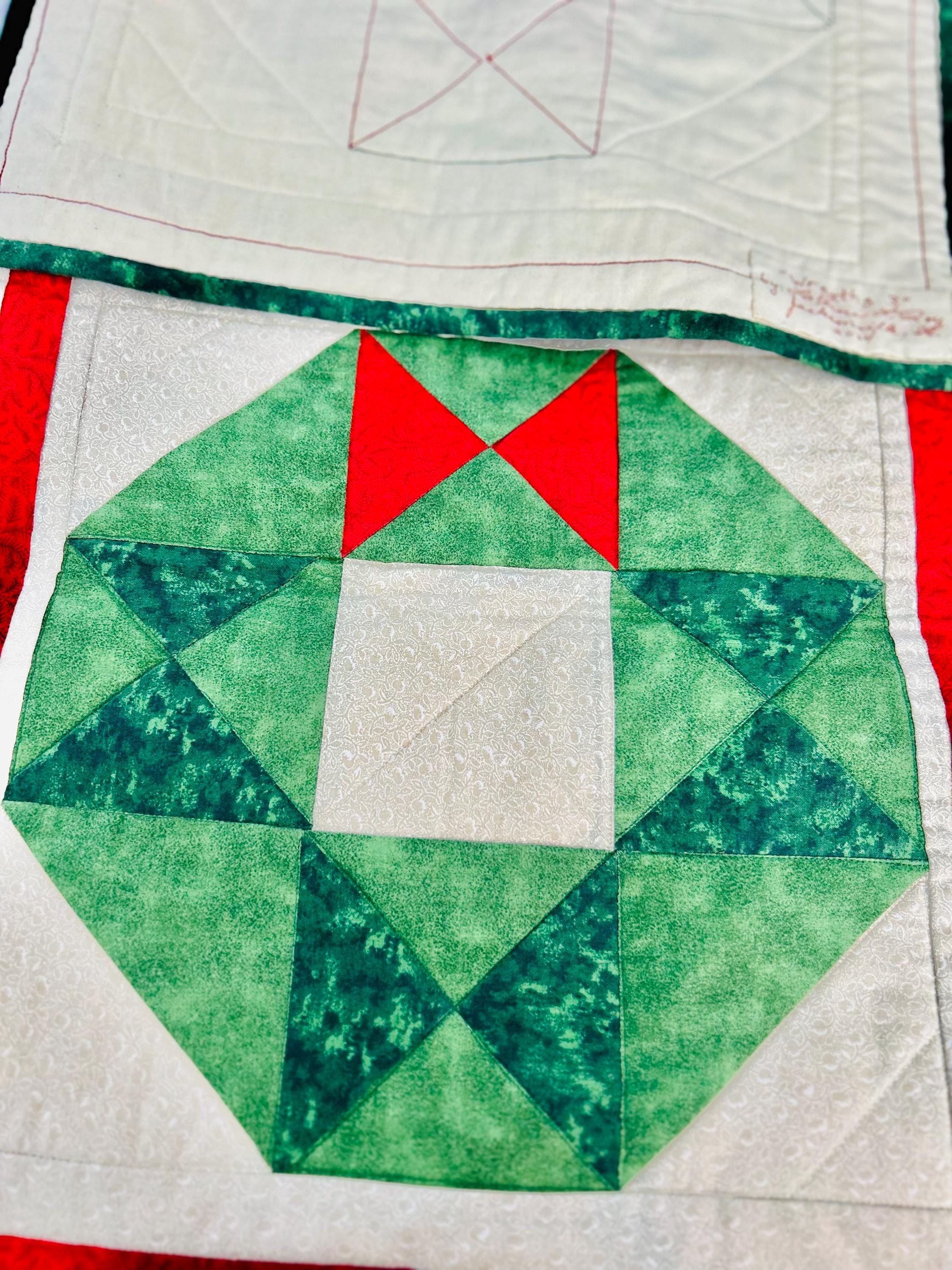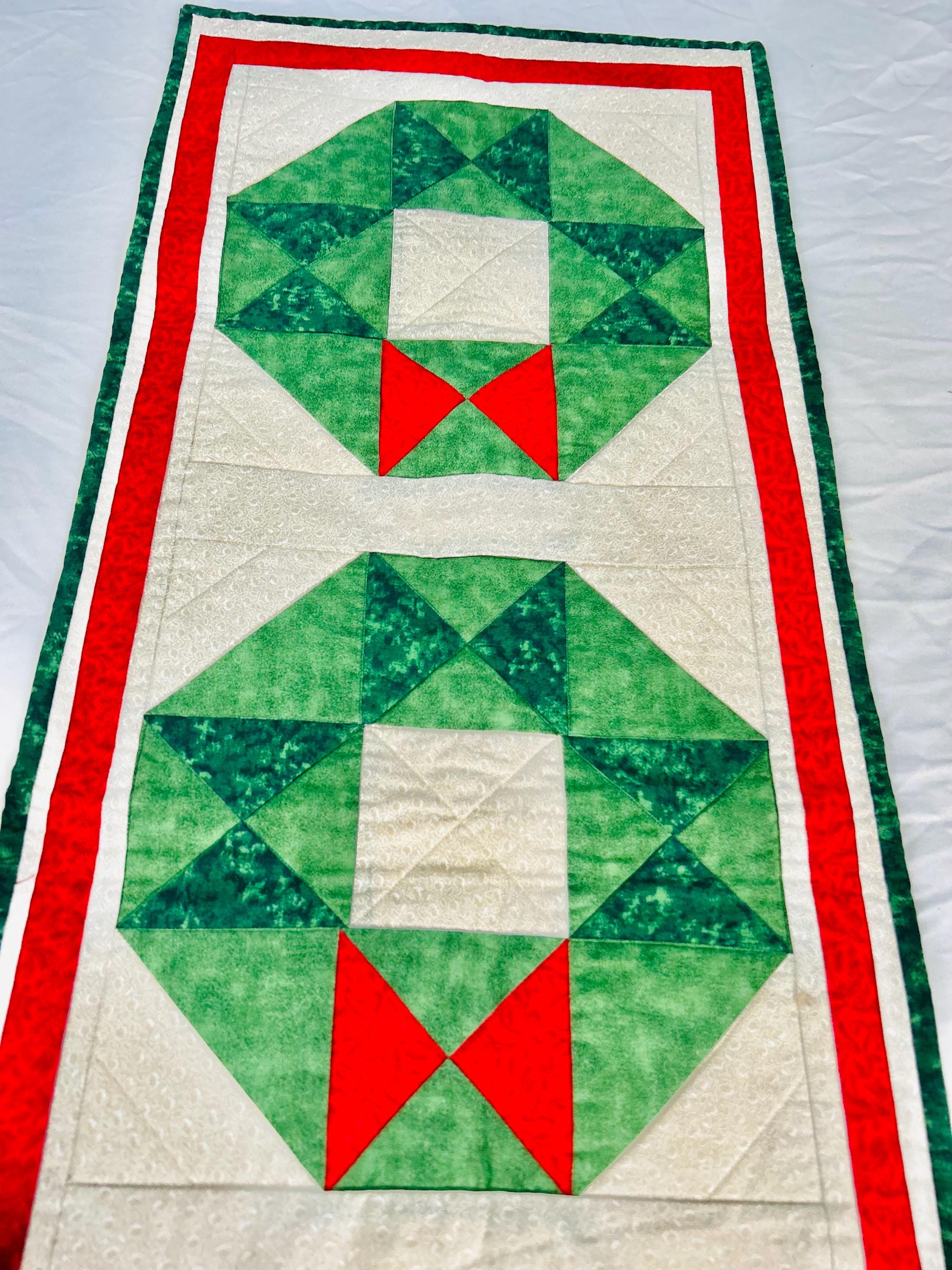 This is a Vintage Handmade Christmas Tree Table Runner or Table Mat that has been machine pieced and machine quilted in high-quality cottons. The back is a dark green and the batting is very lightweight.