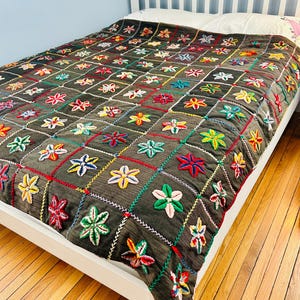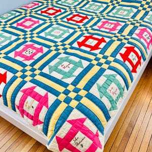 This lovely quilt is clean and soft and measures 84 inches by 94 inches. From a smoke-free, pet-free home. Shown on a queen-size bed. FA0004