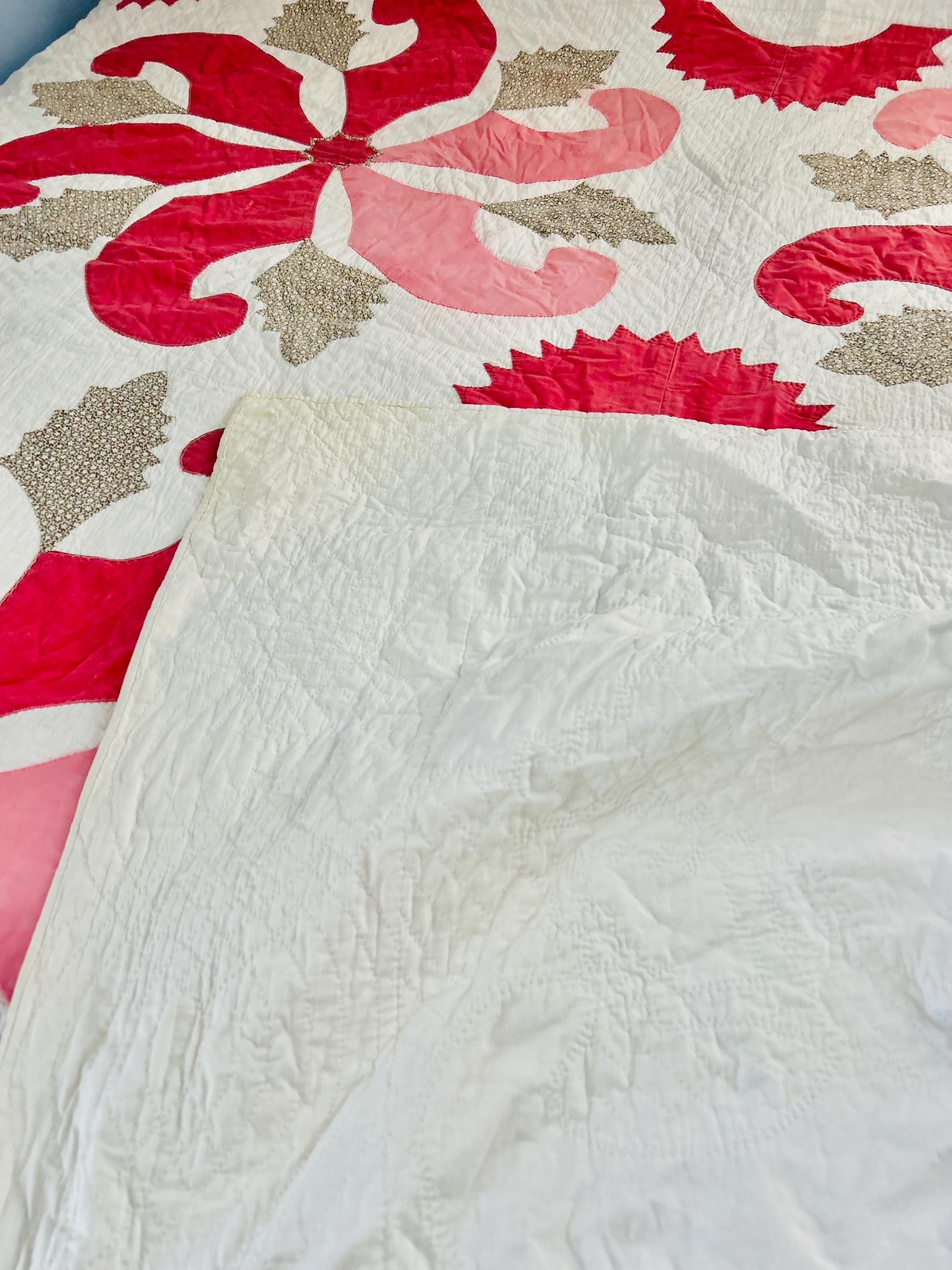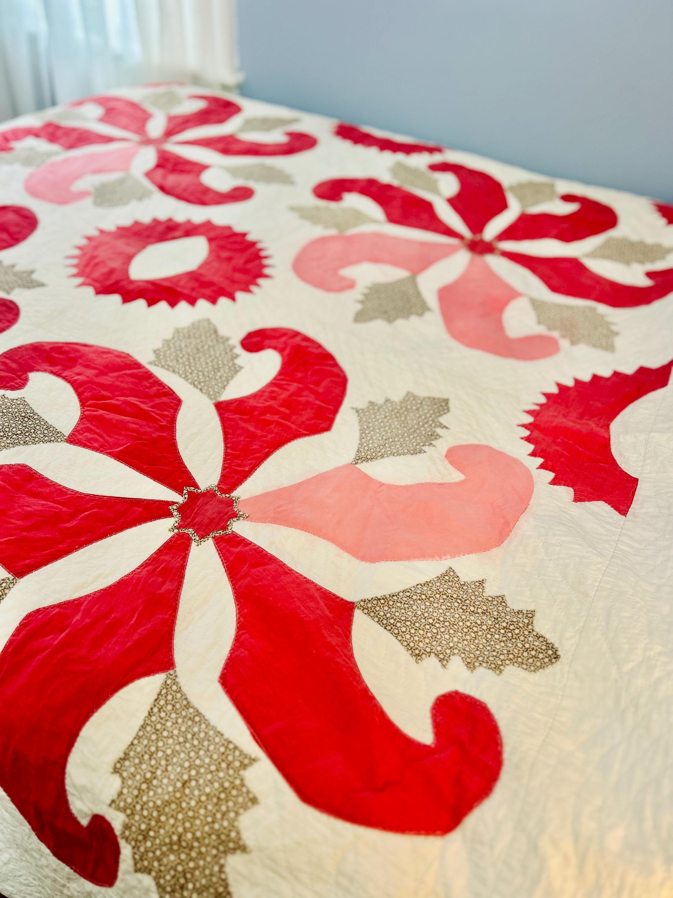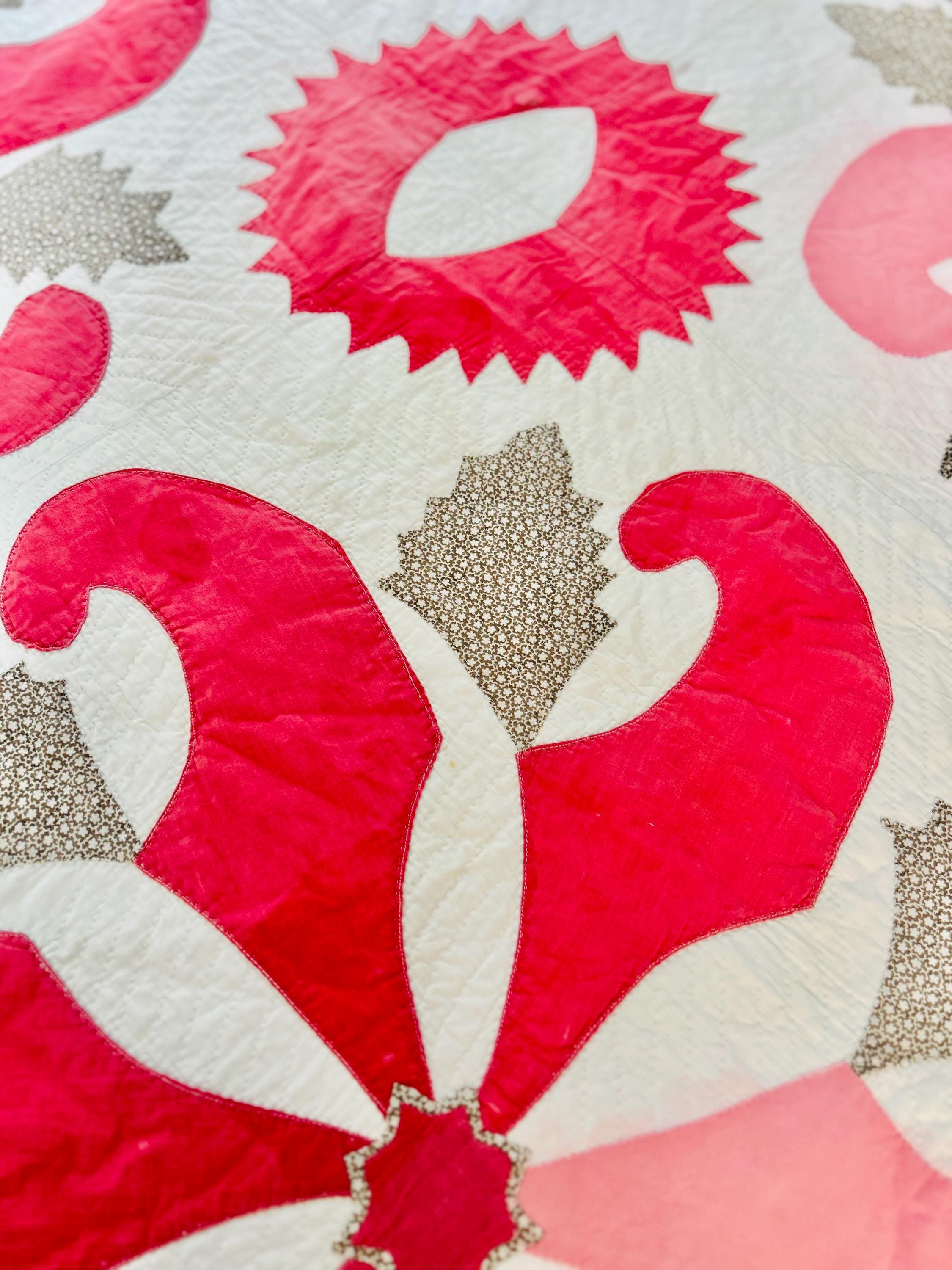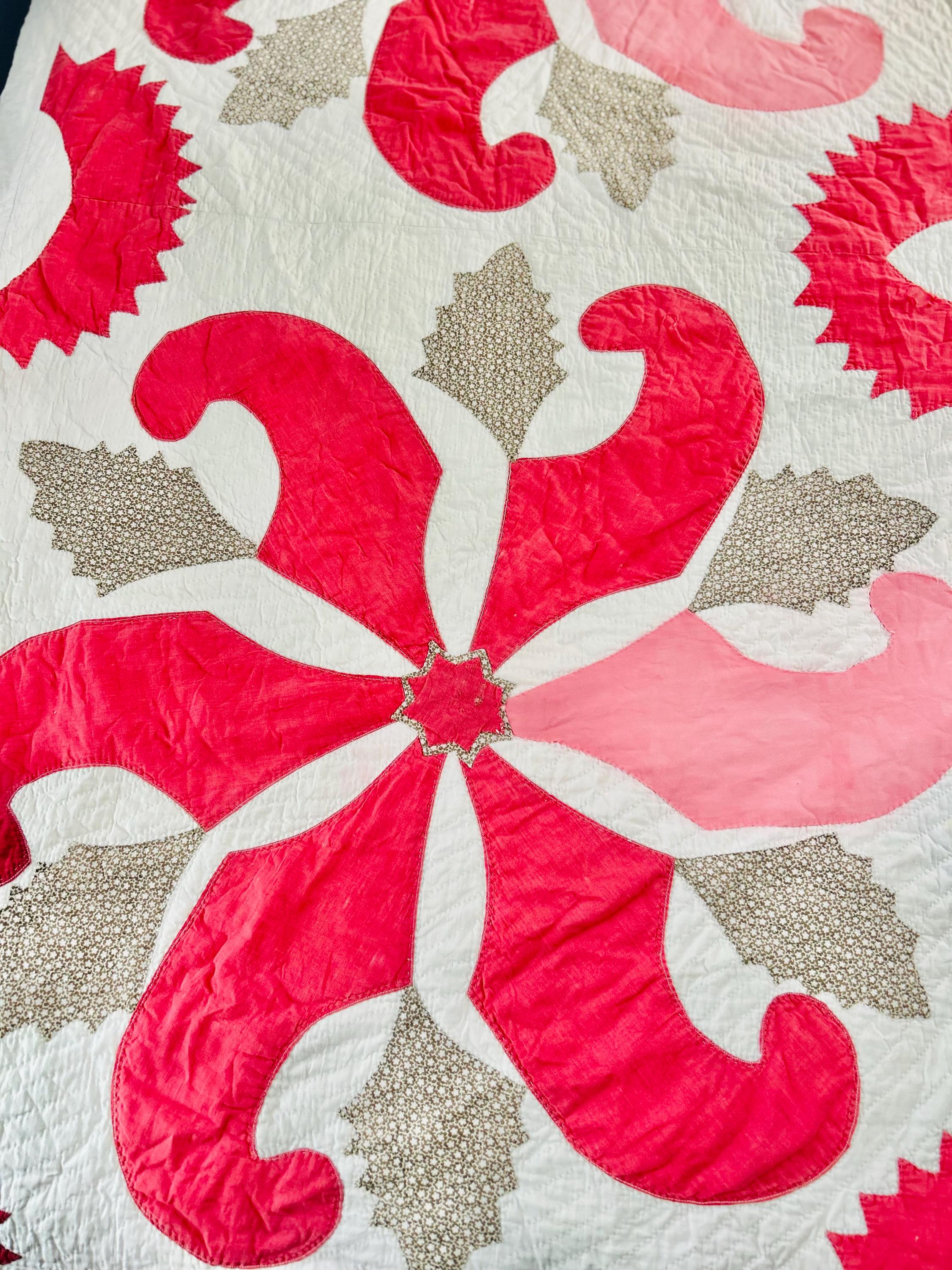 The quilt is in excellent antique condition, with a minor amount of fabric loss on one of the red Princess Feathers,