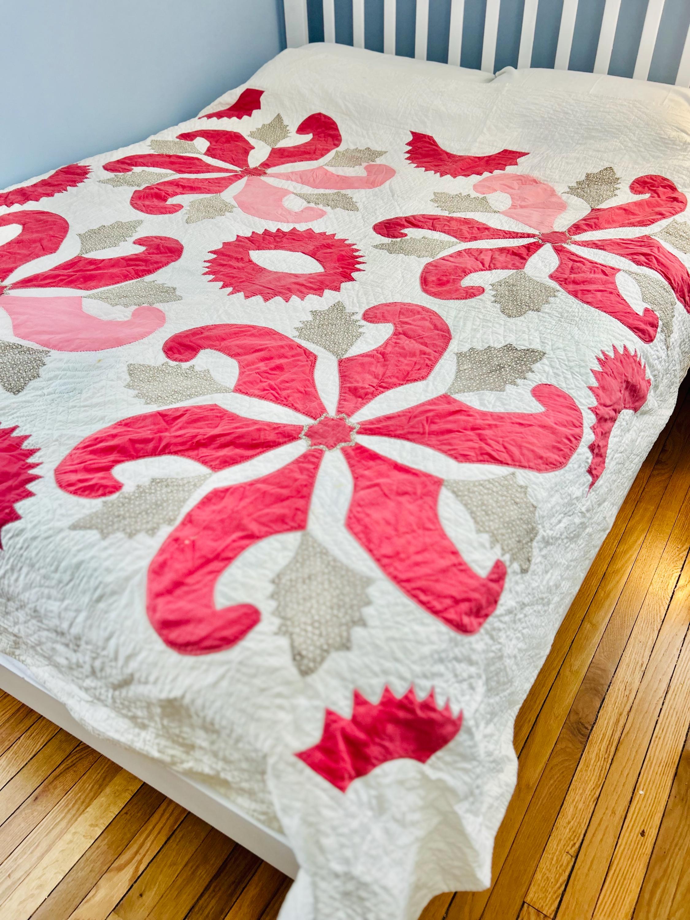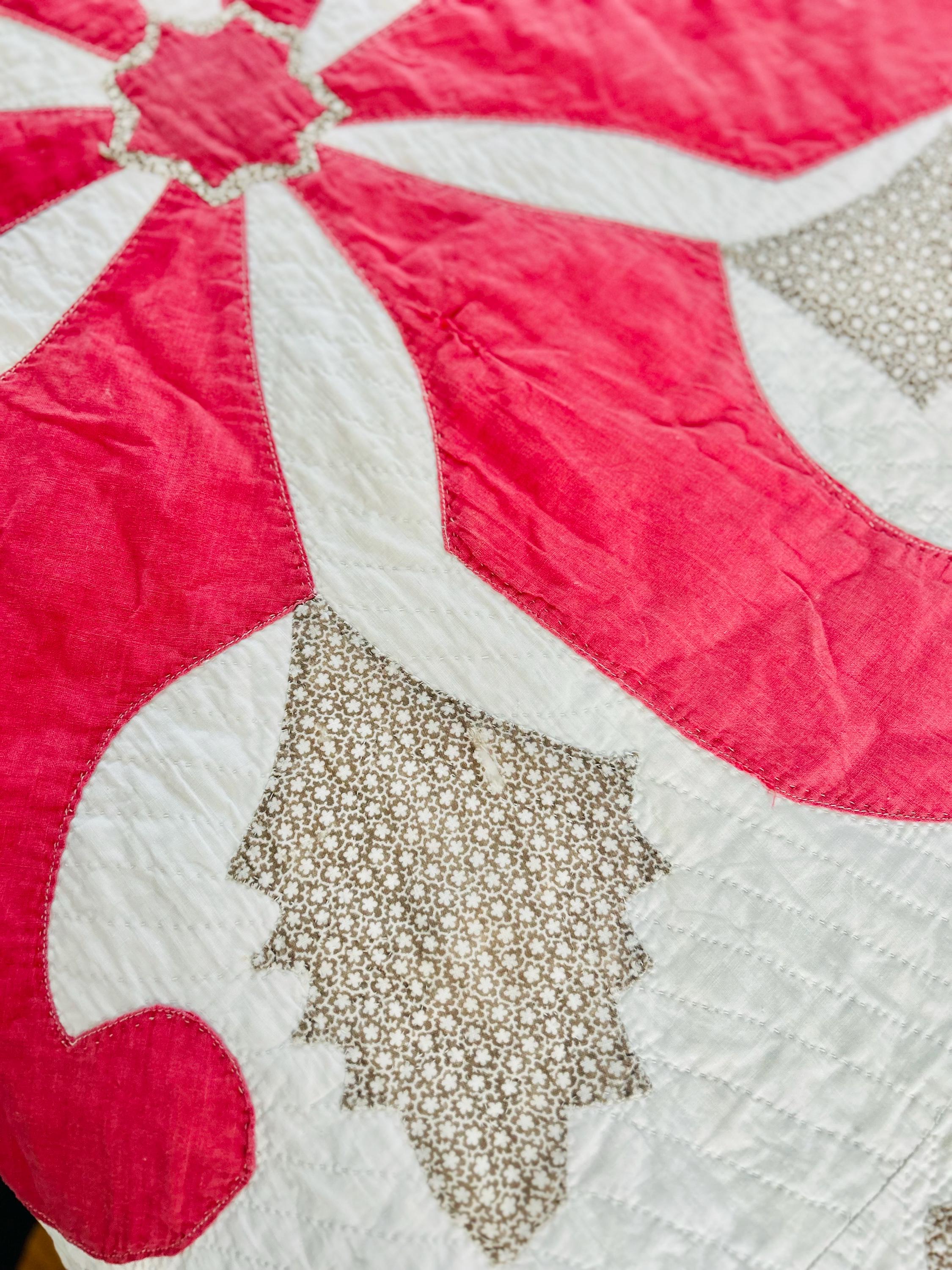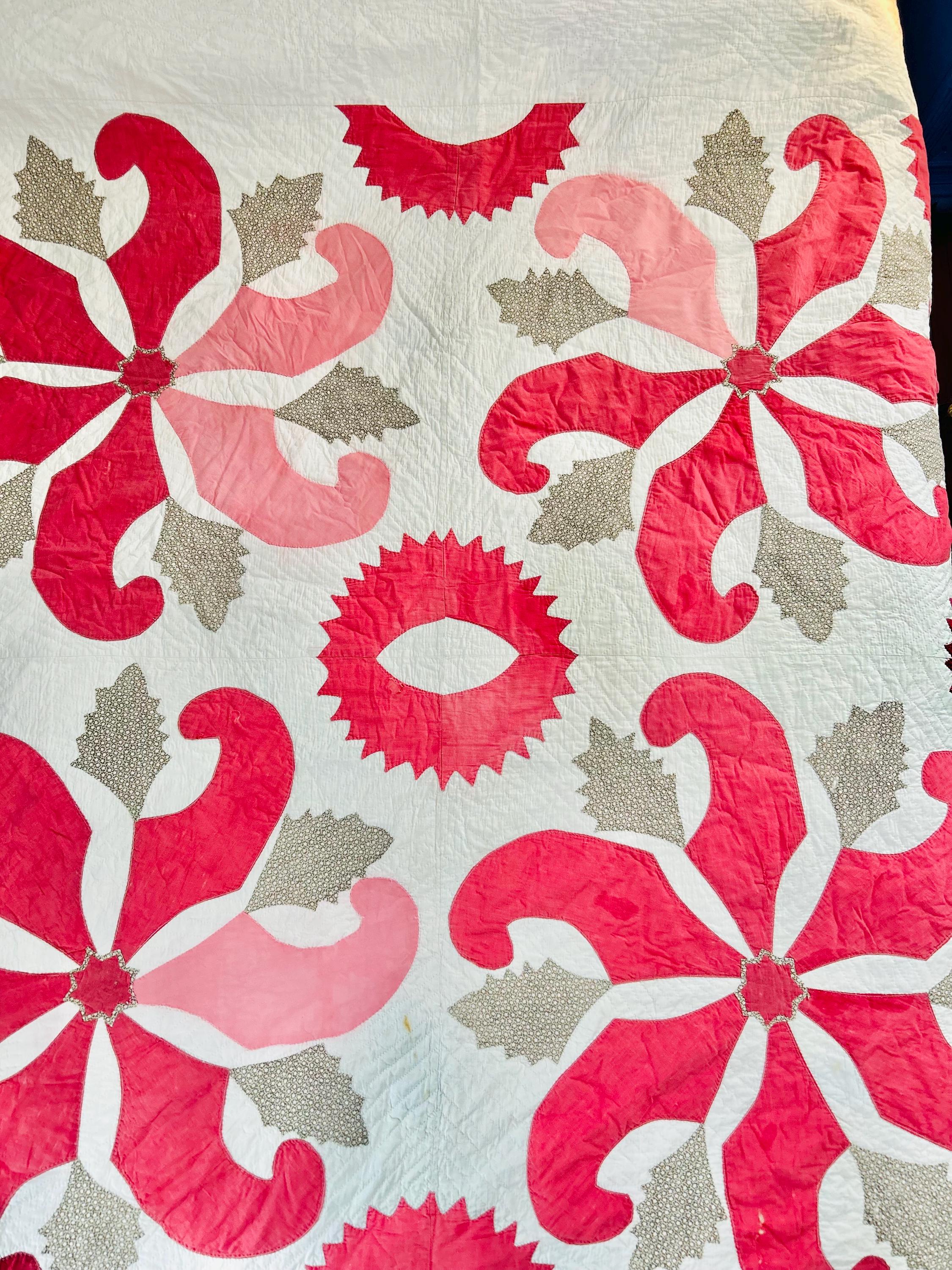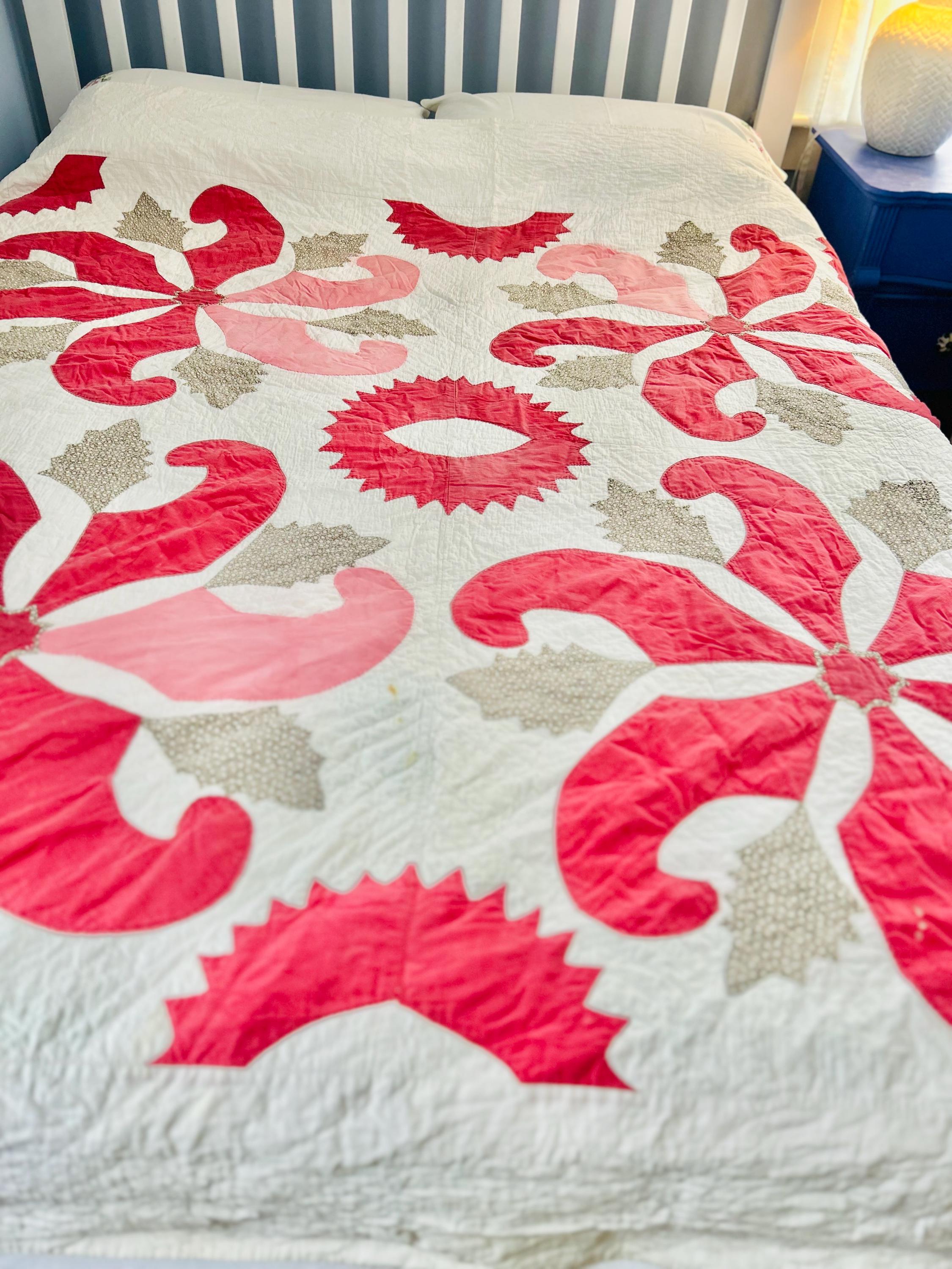 The quilt is in excellent antique condition, with a minor amount of fabric loss on one of the red Princess Feathers,