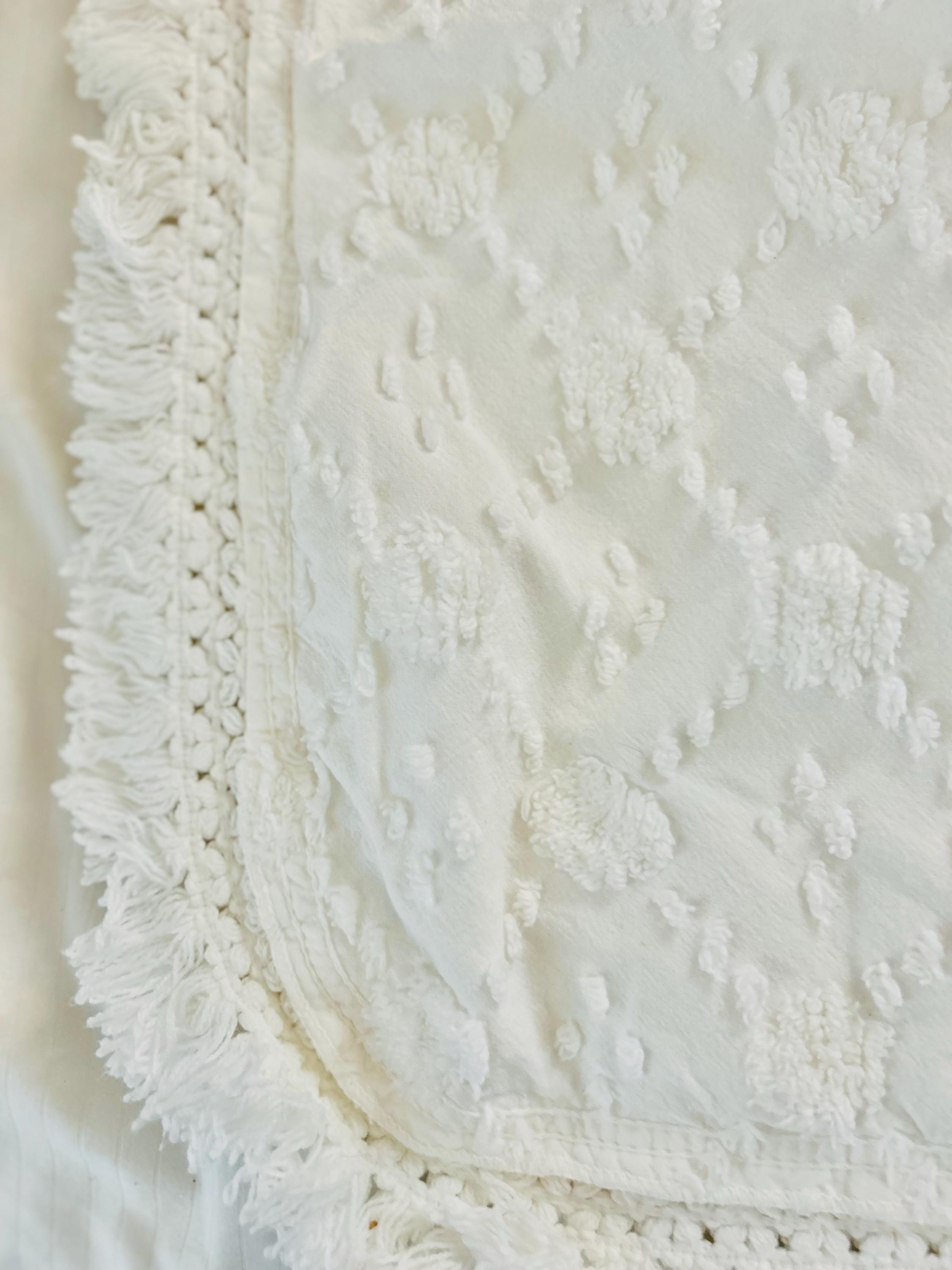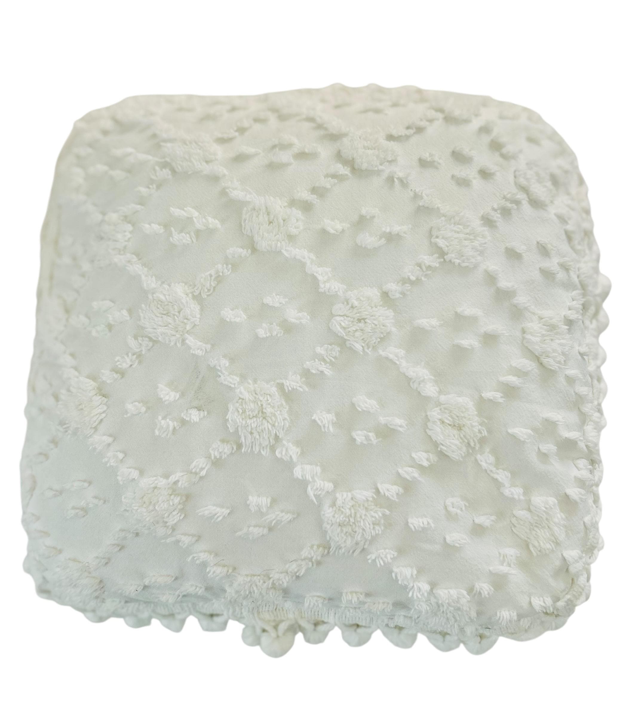 A bright white and fluffy Chenille Pillow and Pillow Cover, both from the 1950s or 60s and both in like-new, never used condition.. No holes or bald spots.