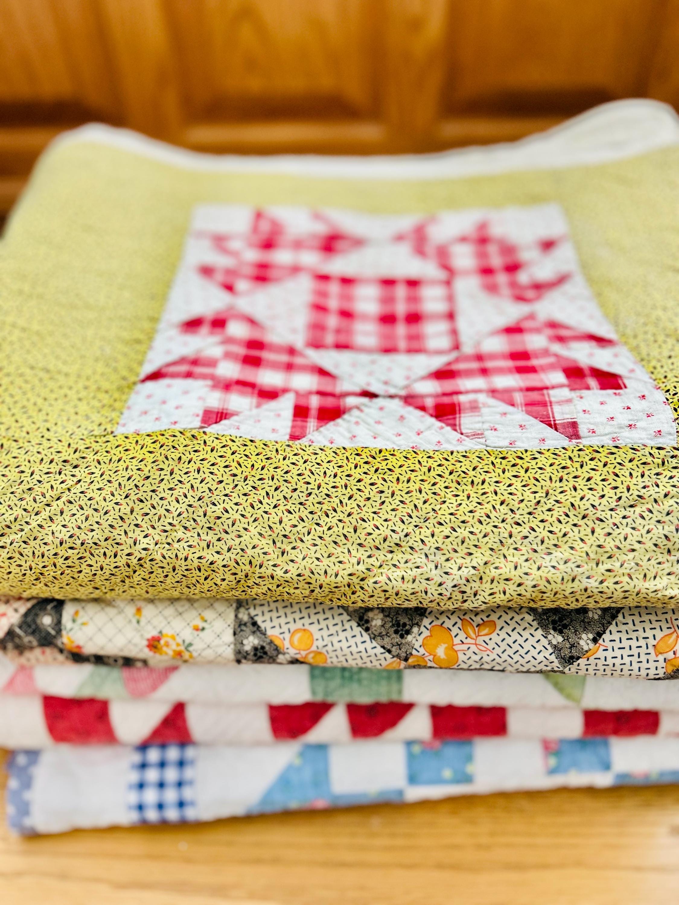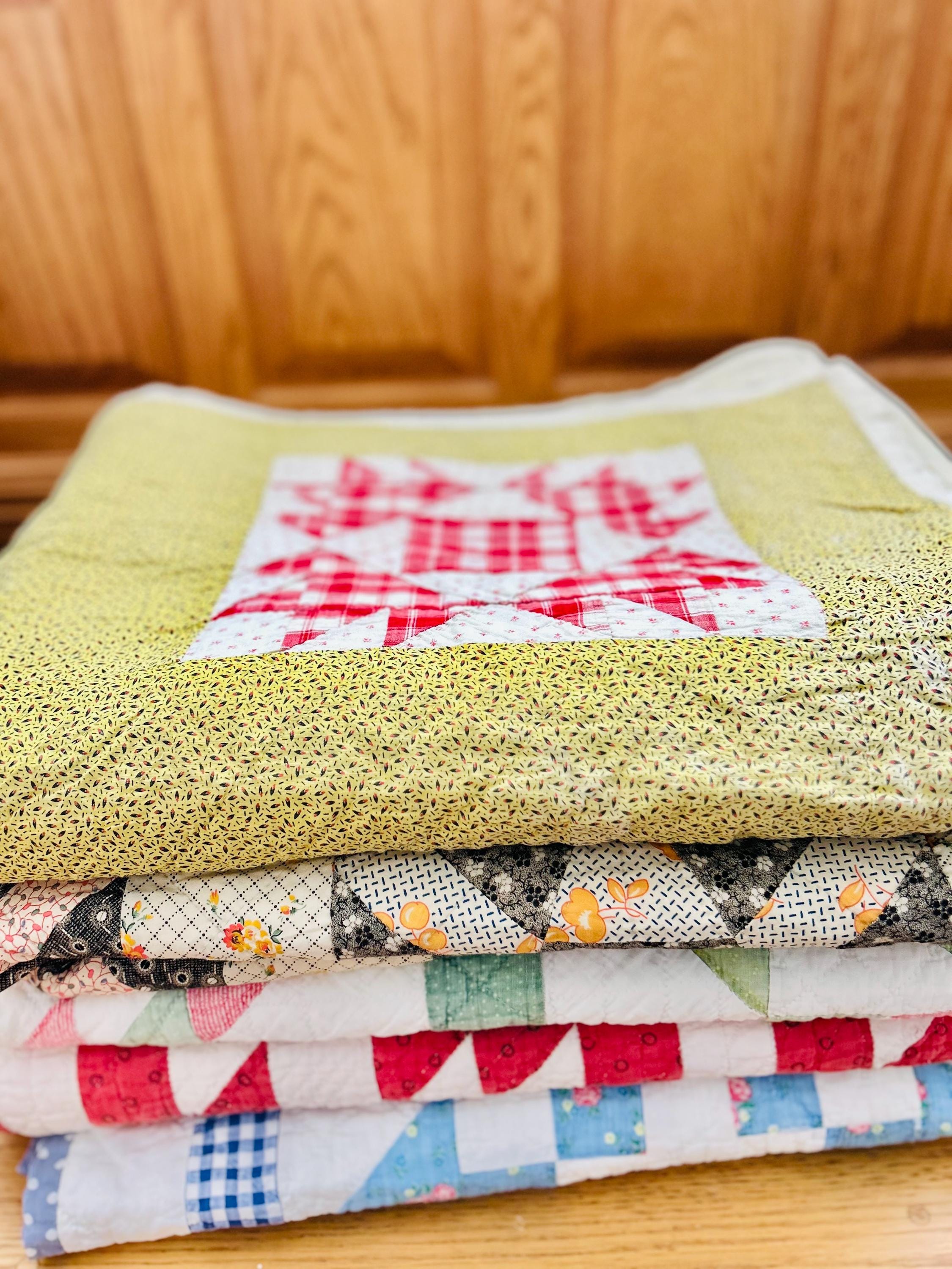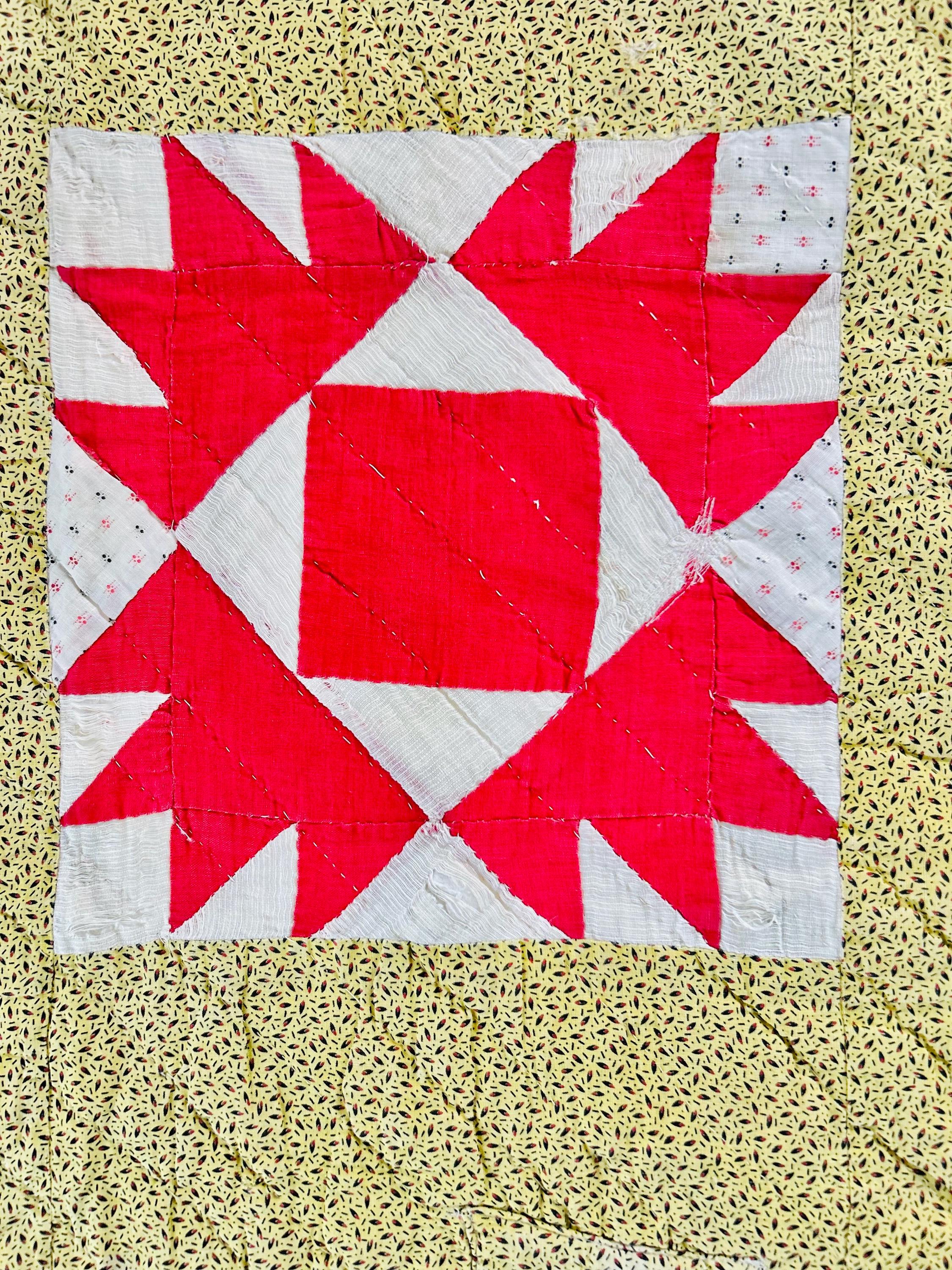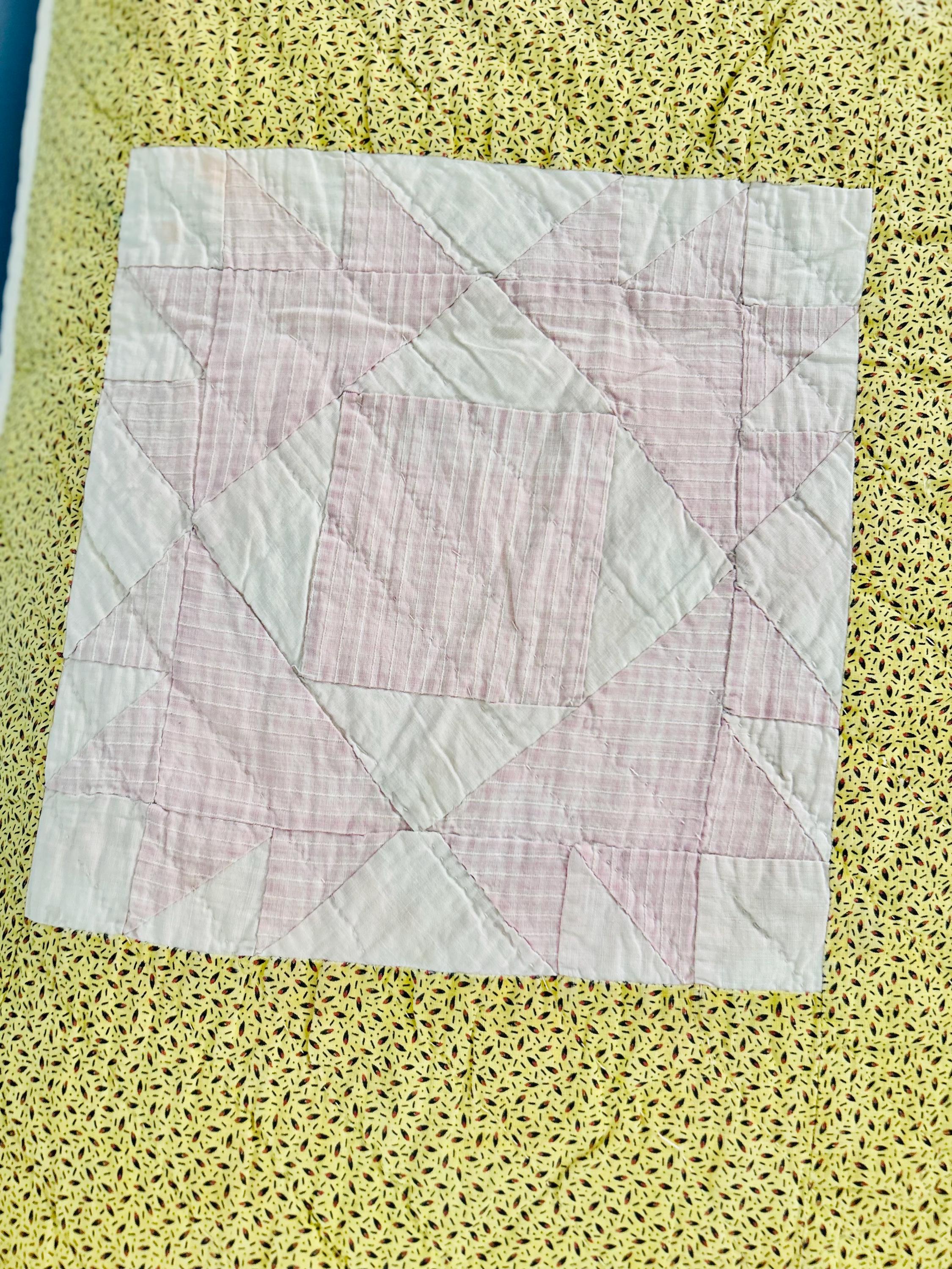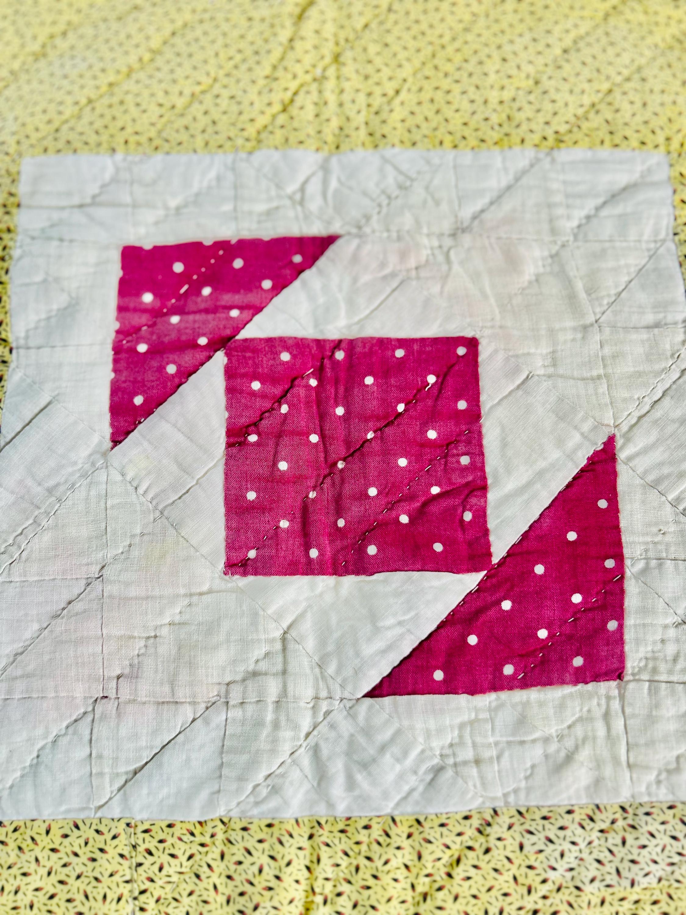 This Goose Tracks Quilt is from the 1870s-1890s and has been hand-quilted in diagonals throughout the quilt.
