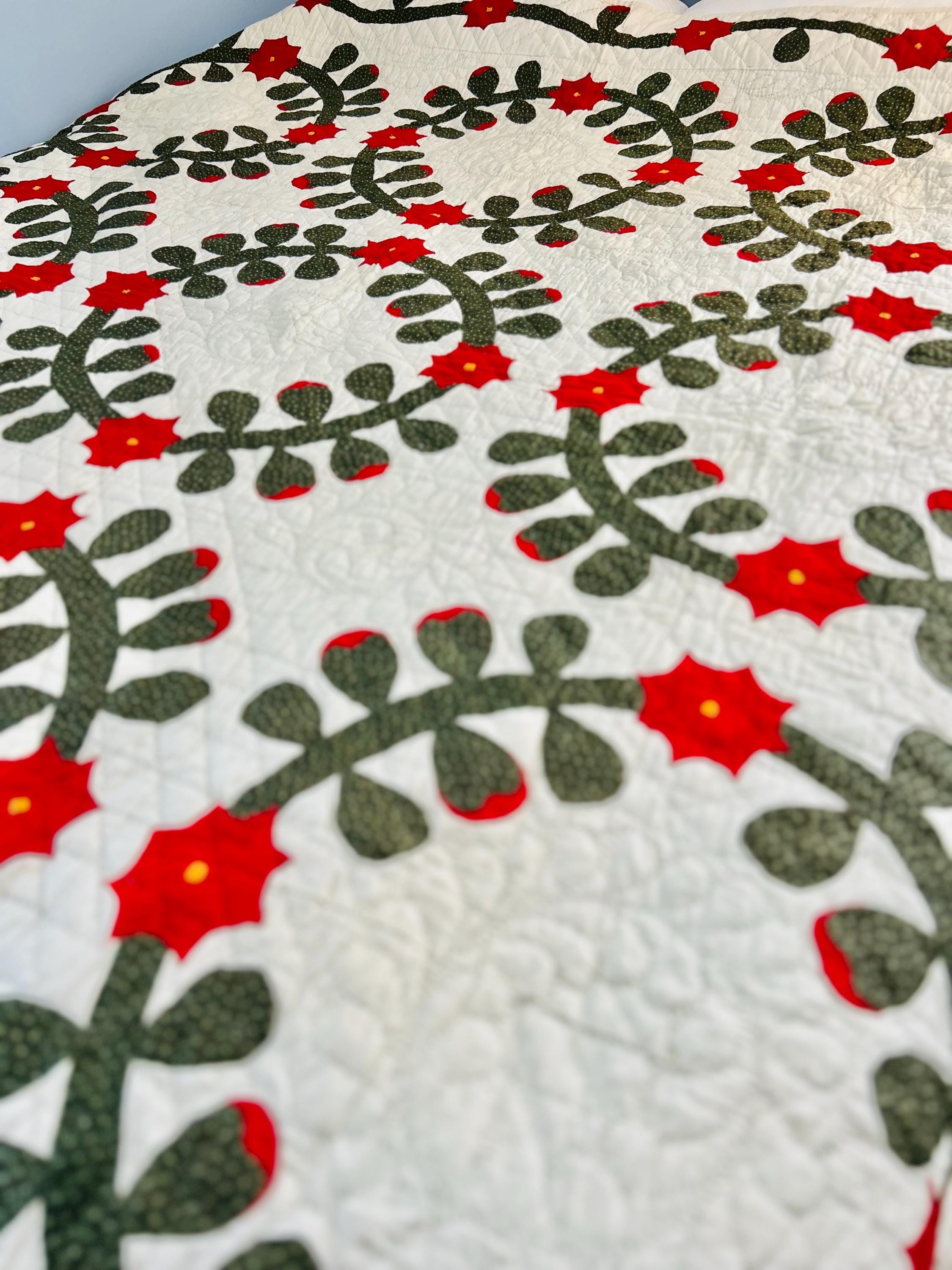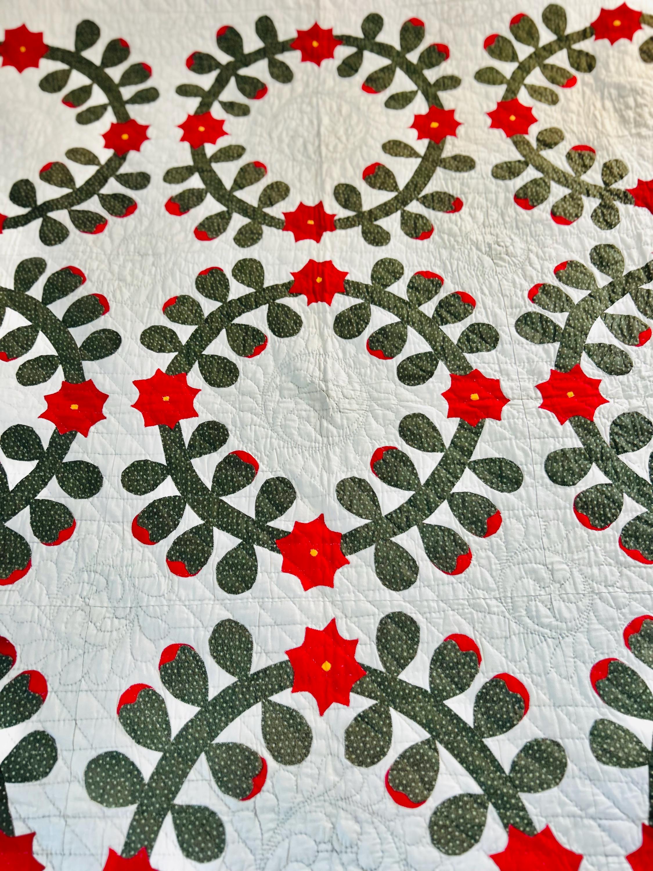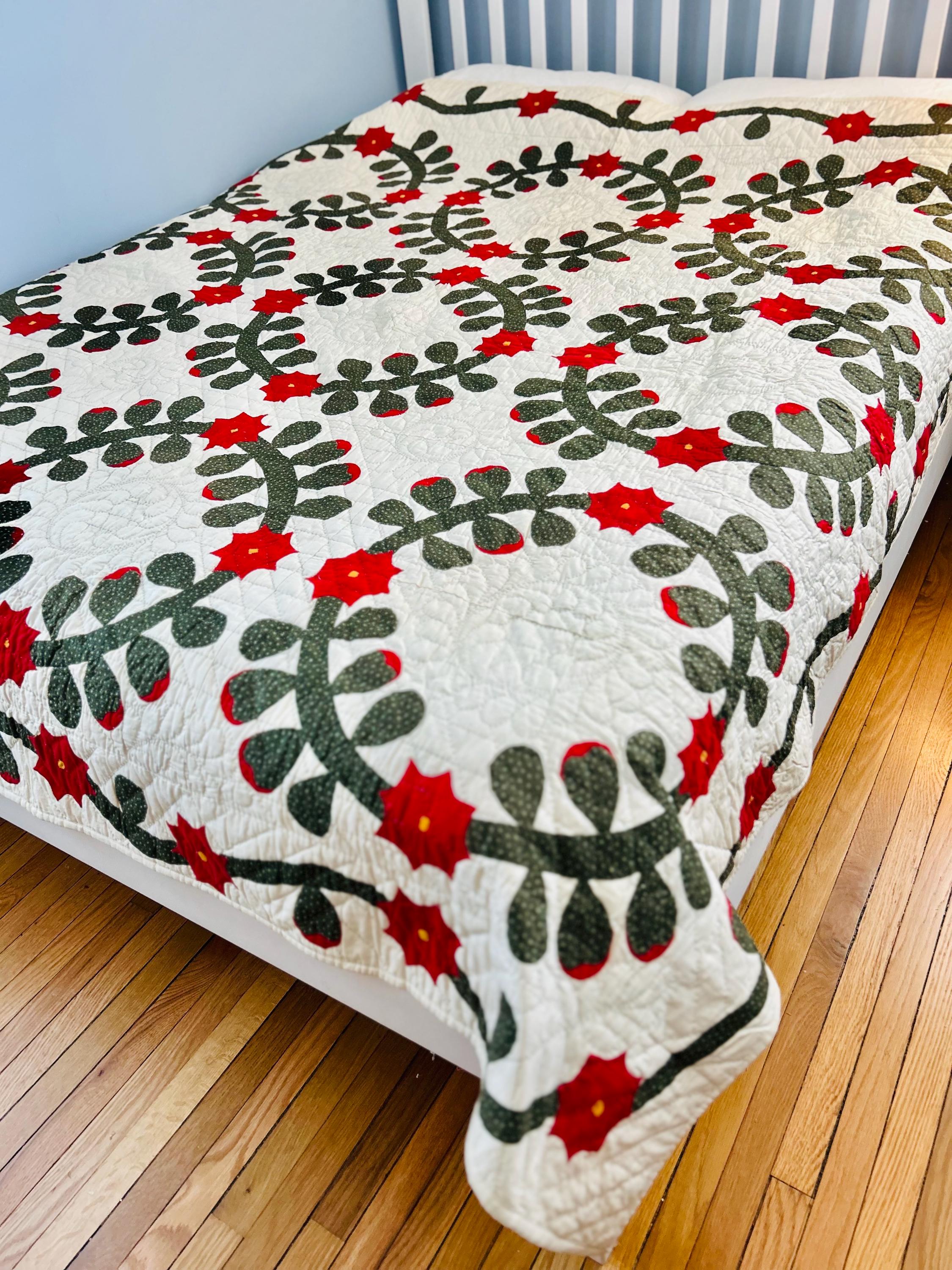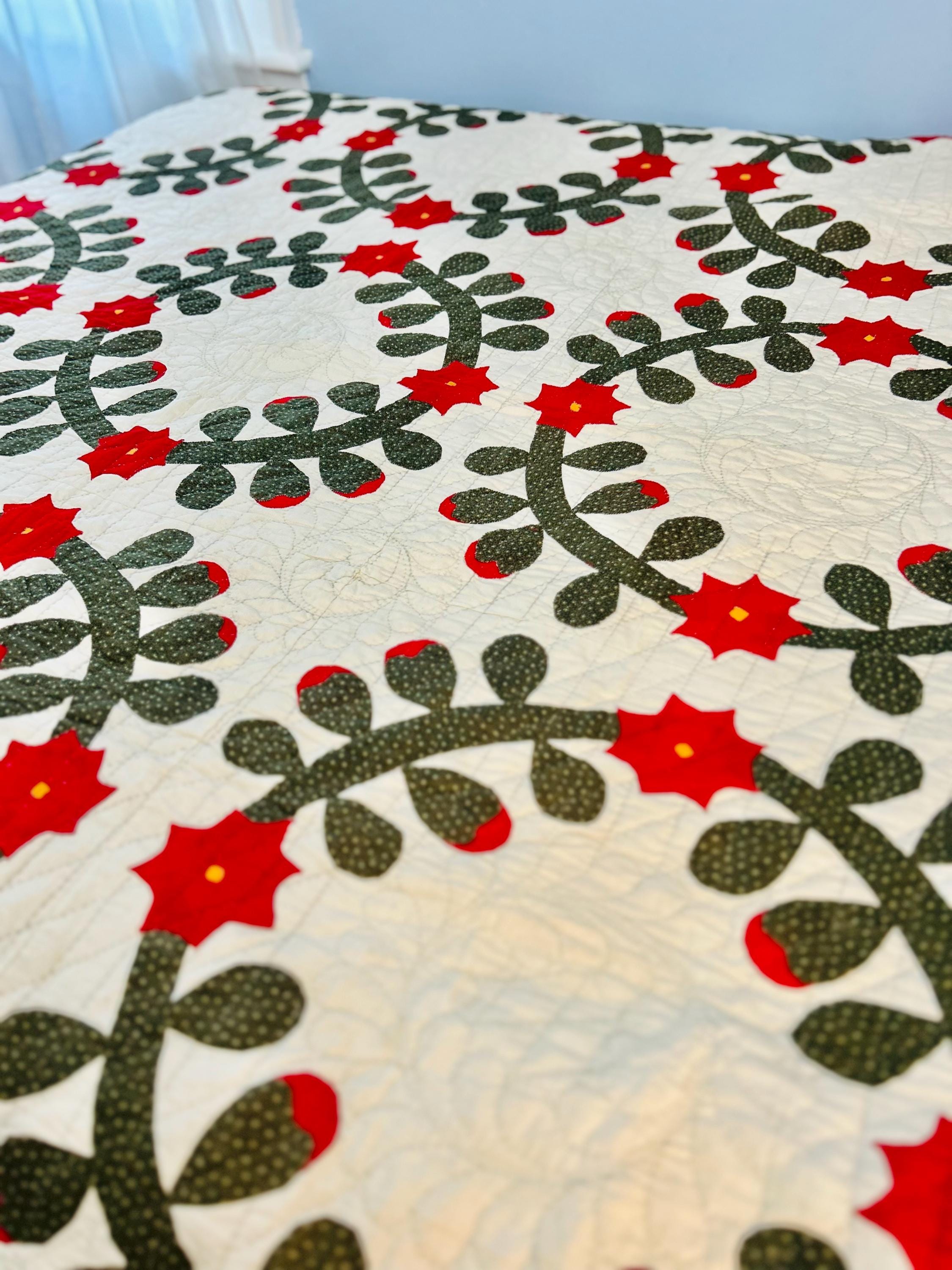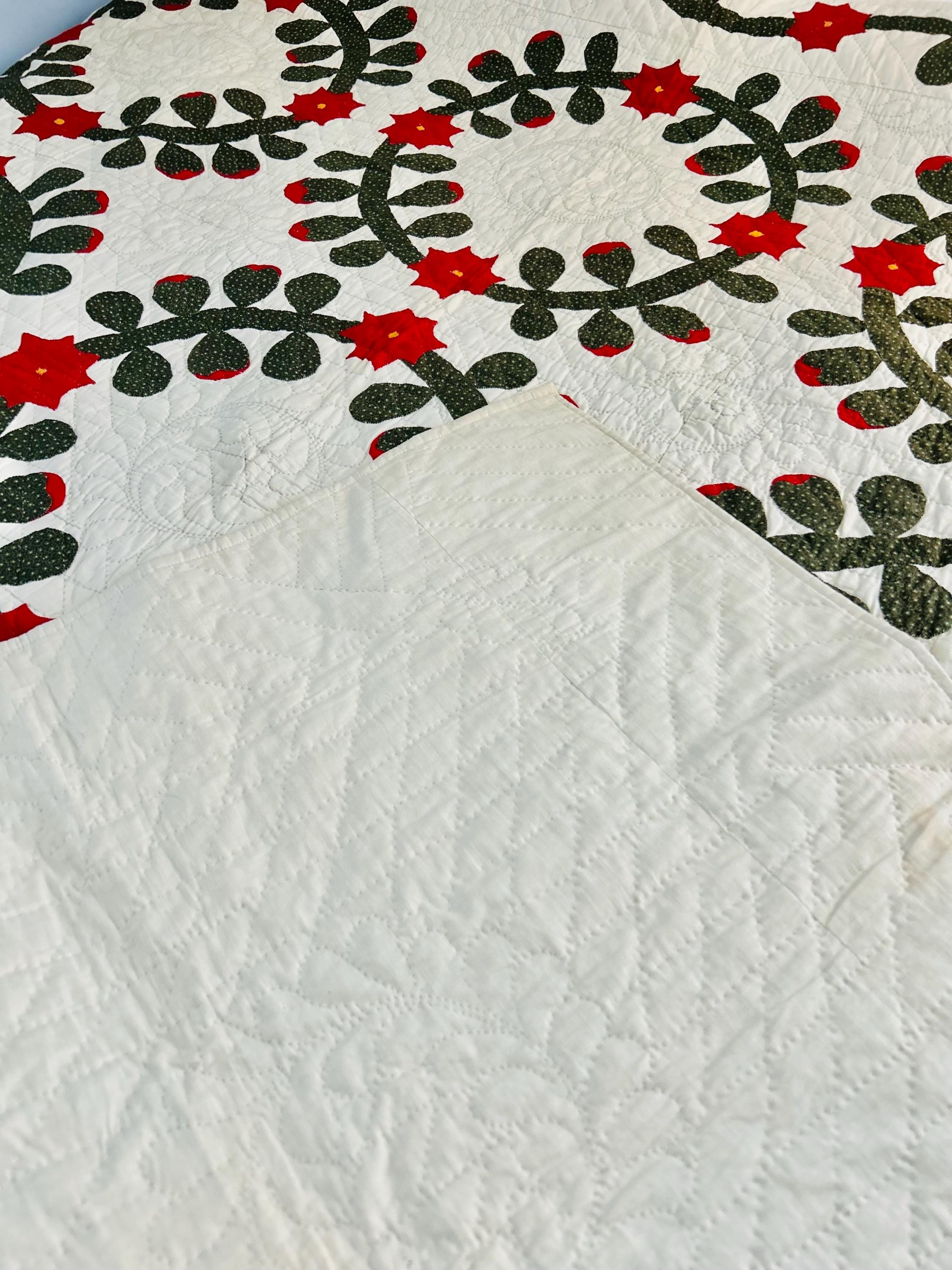This Rose Wreath Quilt with Feather Wreaths is circa 1920-1930s and has been finely hand-quilted and hand-appliqued in very tiny stitches. See photos.. The hand-quilting is in feather wreaths, diagonals and diamond patterns.