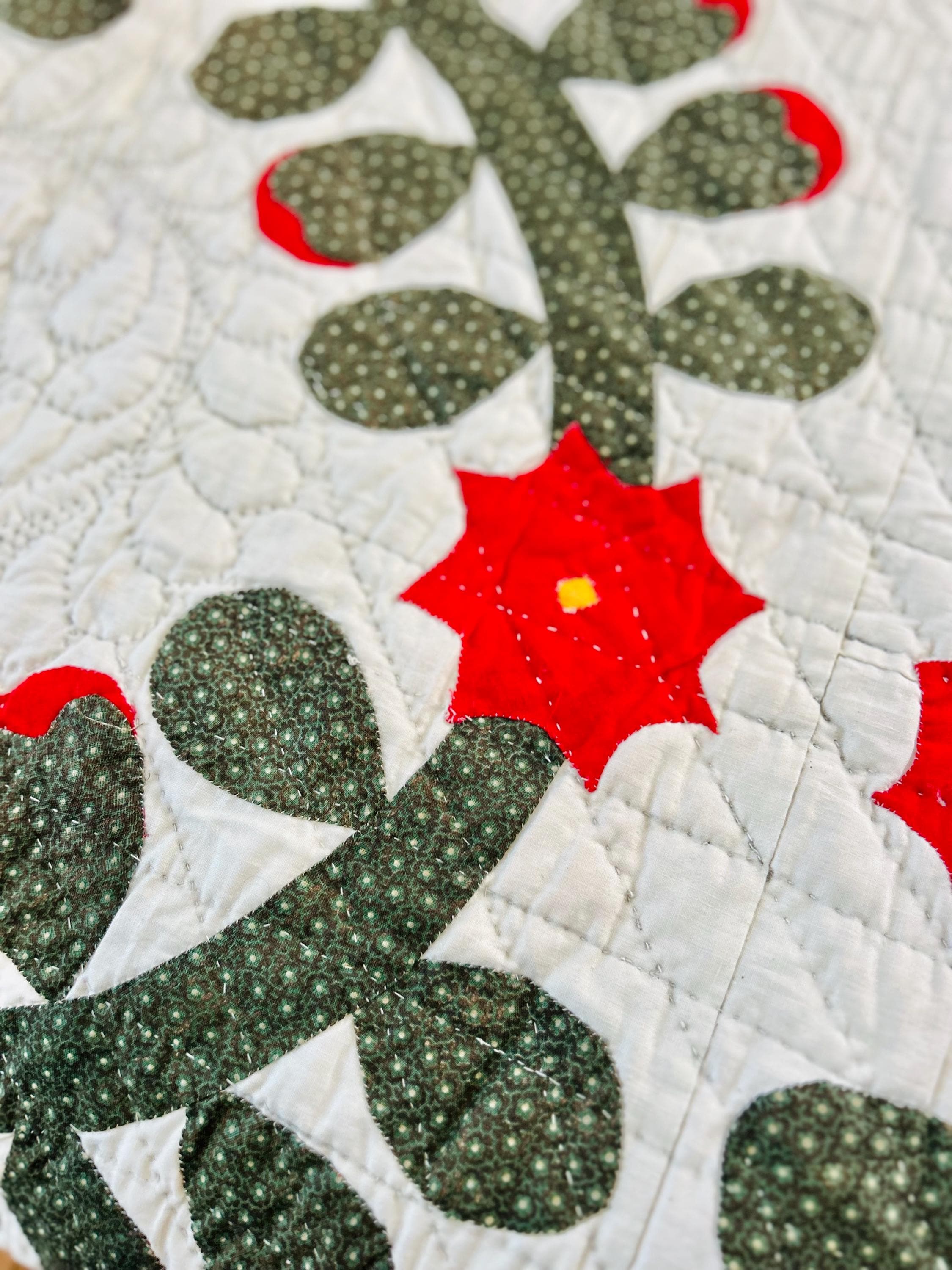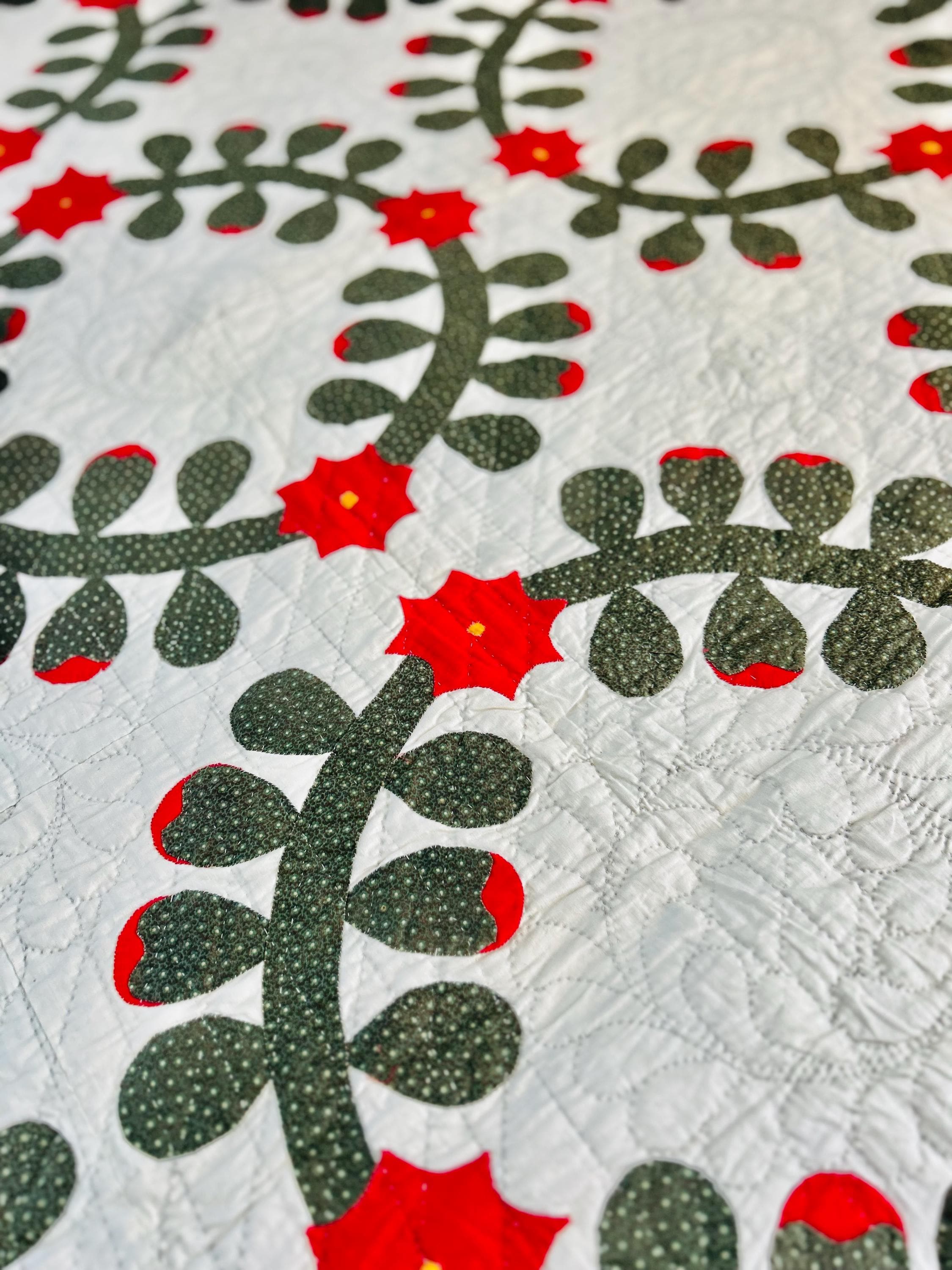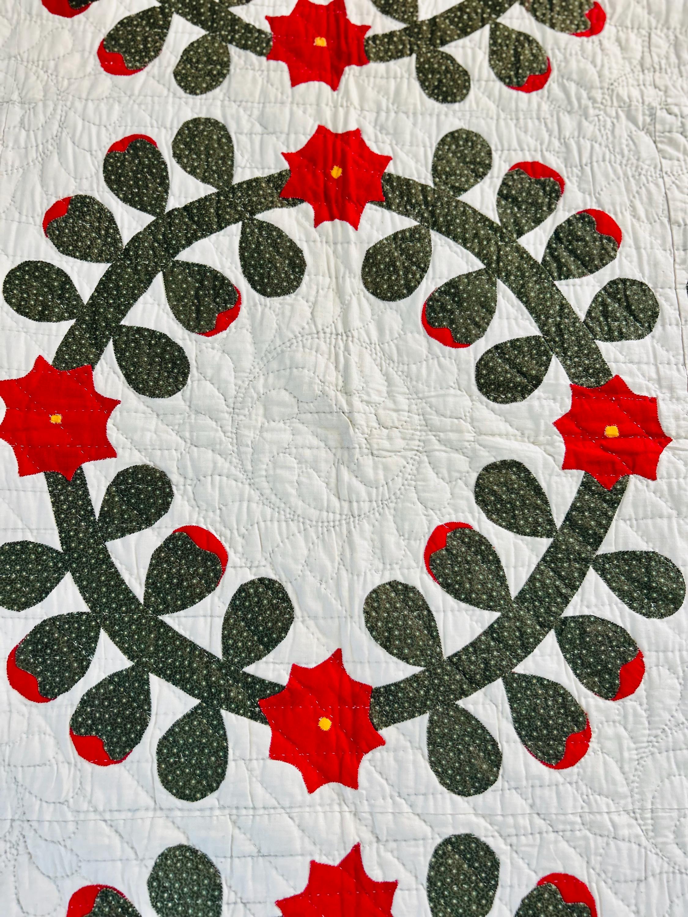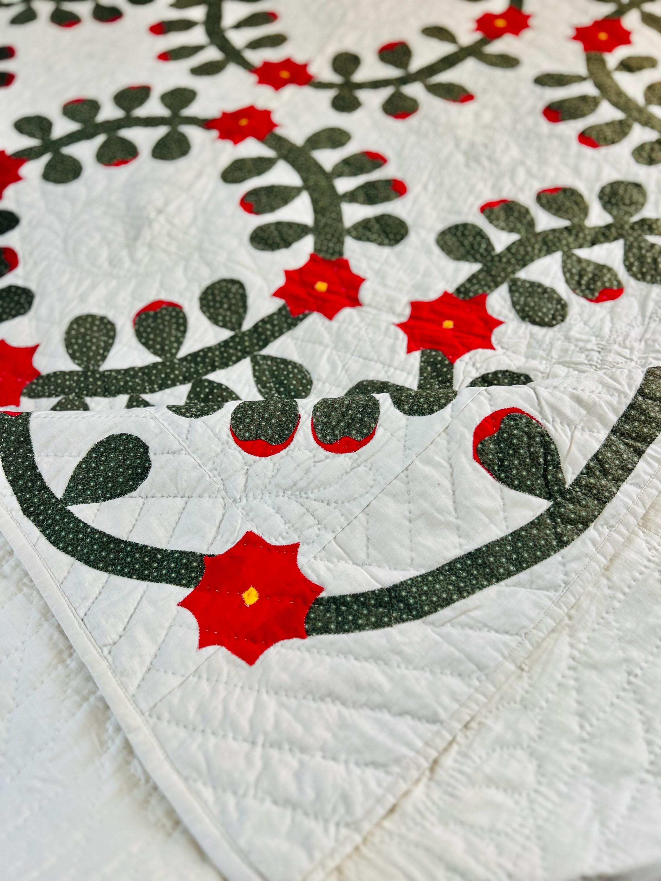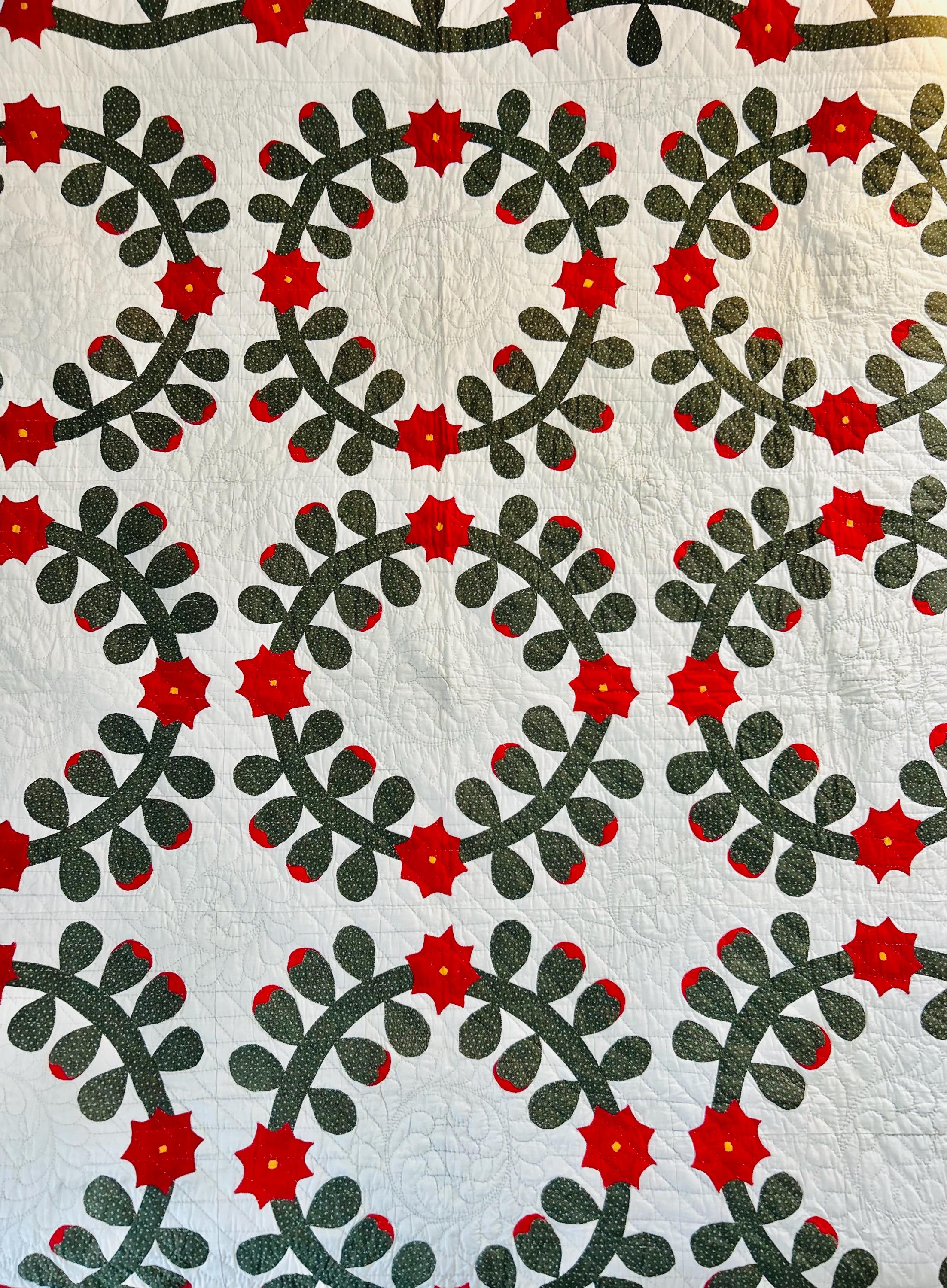 This Rose Wreath Quilt with Feather Wreaths is circa 1920-1930s and has been finely hand-quilted and hand-appliqued in very tiny stitches. See photos.. The hand-quilting is in feather wreaths, diagonals and diamond patterns.