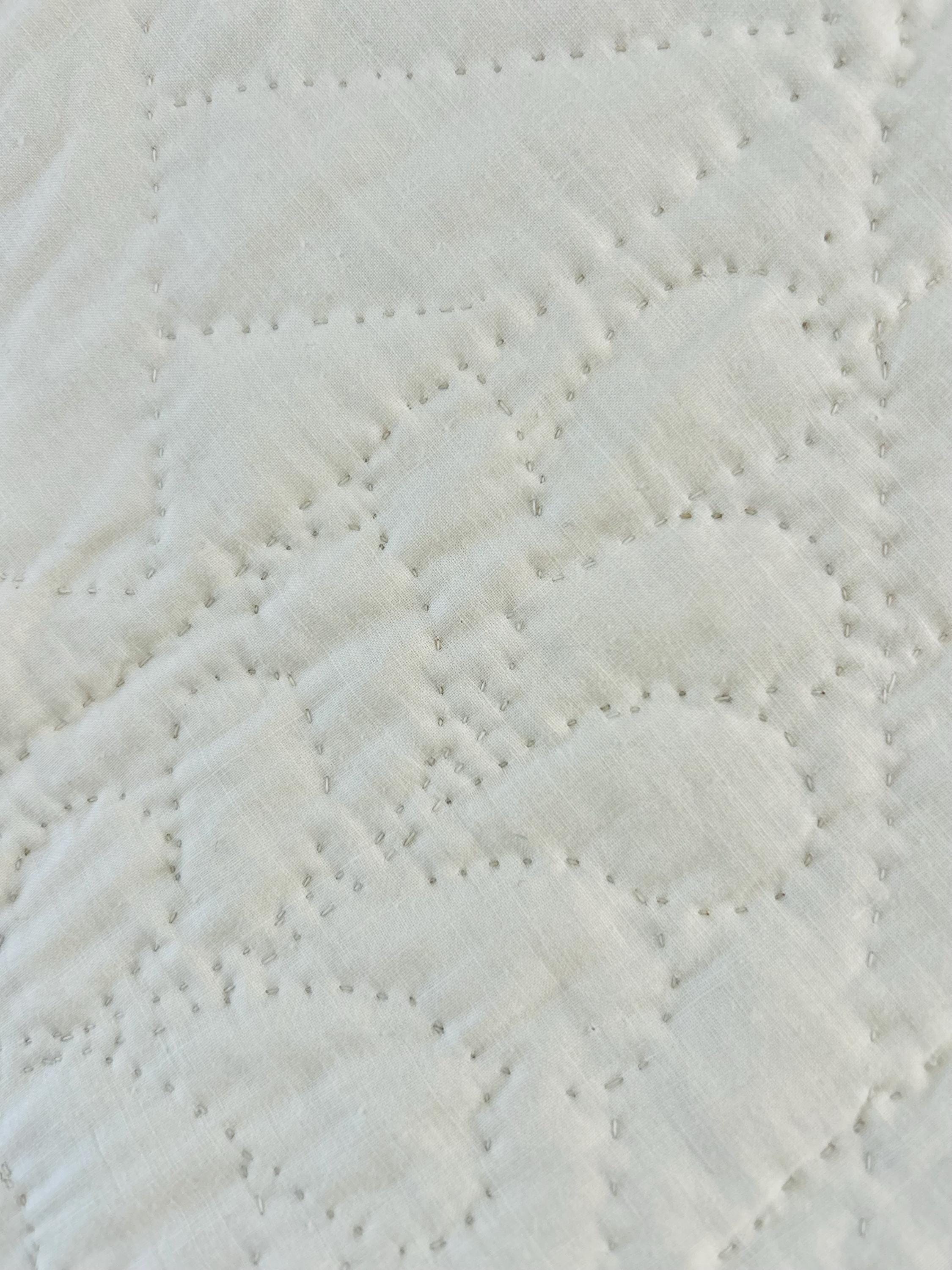The back is white cotton as is the binding that has been machine stitched to both sides. The cotton batting is lightweight.