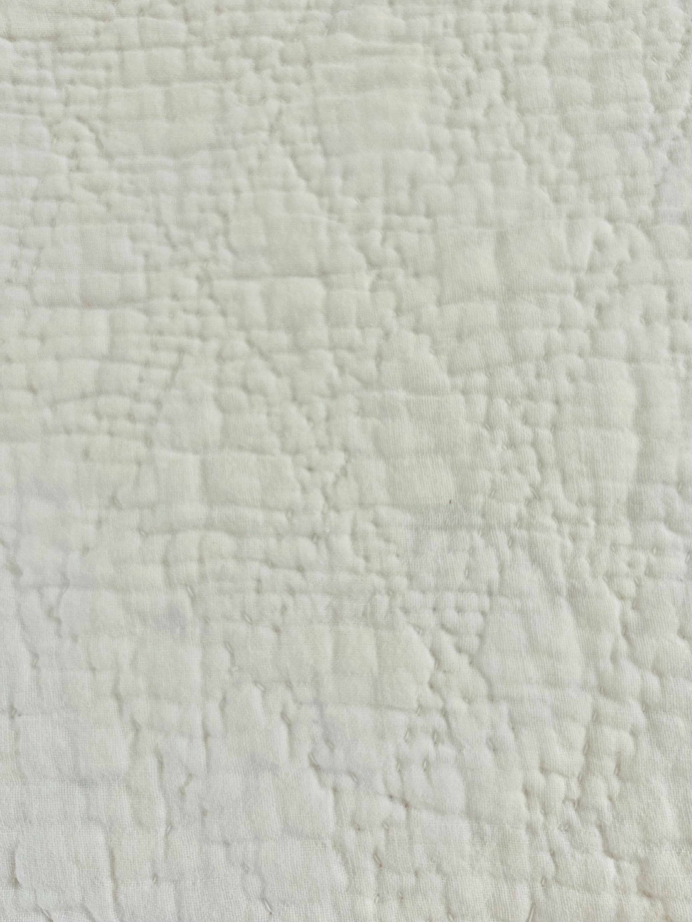 The back is white cotton that has been turned to the front and machine-stitched to form the binding. The cotton batting is unsized and lightweight.