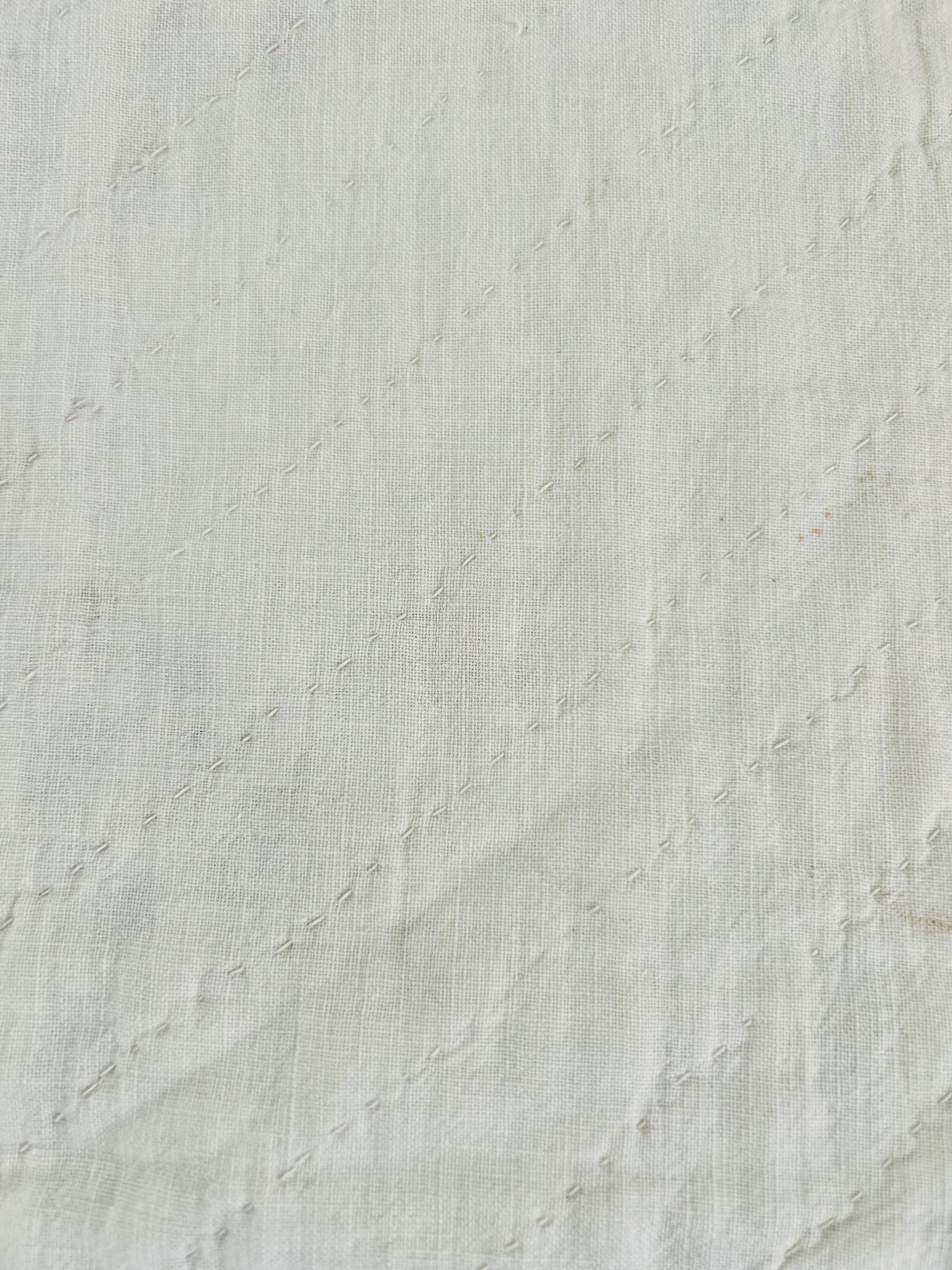 The back is off-white cotton while the binding has been removed - there is no binding. The cotton batting is very lightweight.