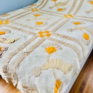 The quilt comes from a smoke-free, pet-free home and is pictured on a queen-size bed.
