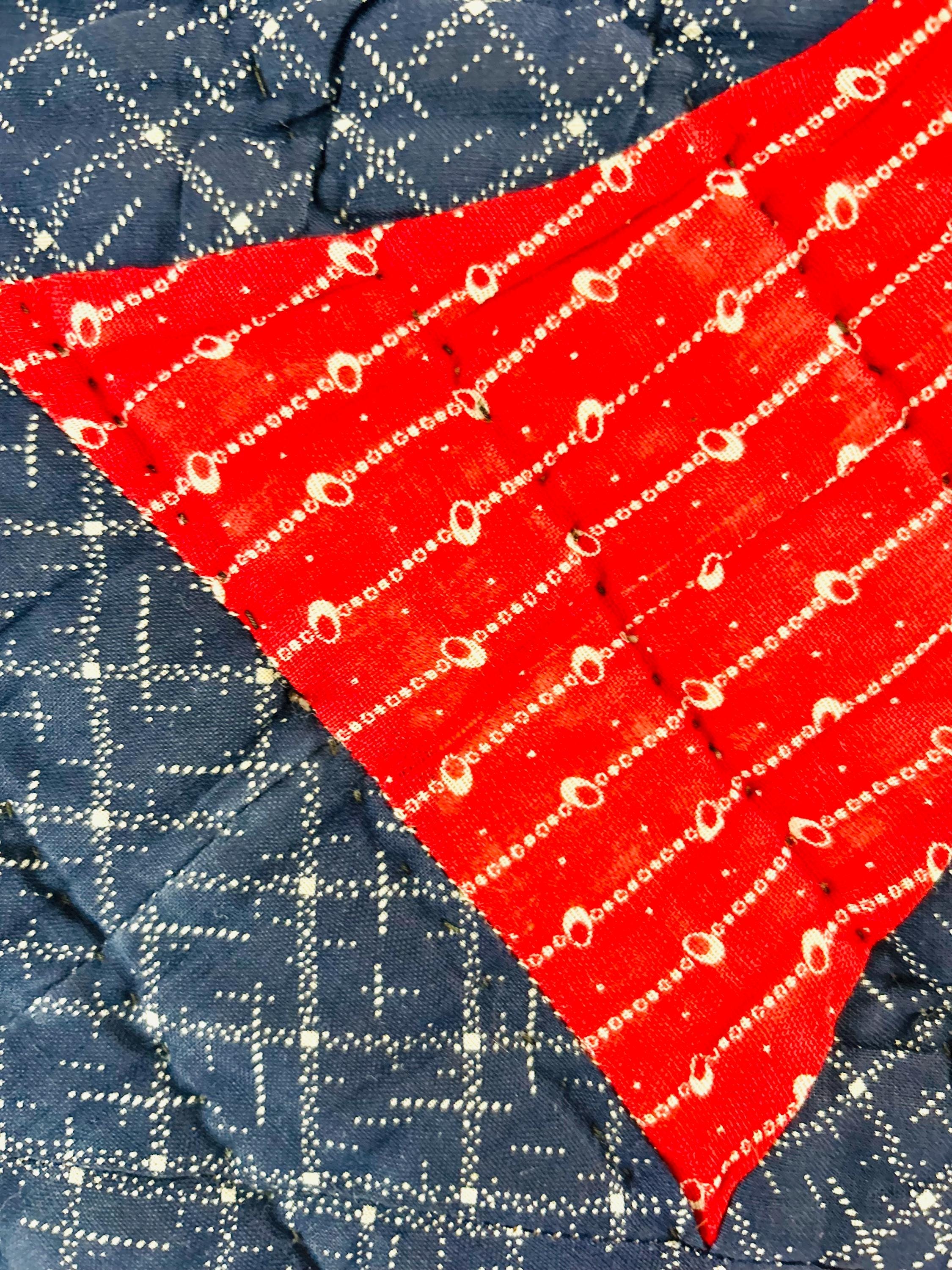 This is a stunning display quilt—perfect for collectors of antique American textiles, farmhouse décor lovers, or anyone looking for a dramatic pop of historic color.