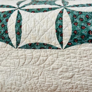 This quilt comes from a smoke-free, pet-free home and is pictured on a queen-size bed. HL045