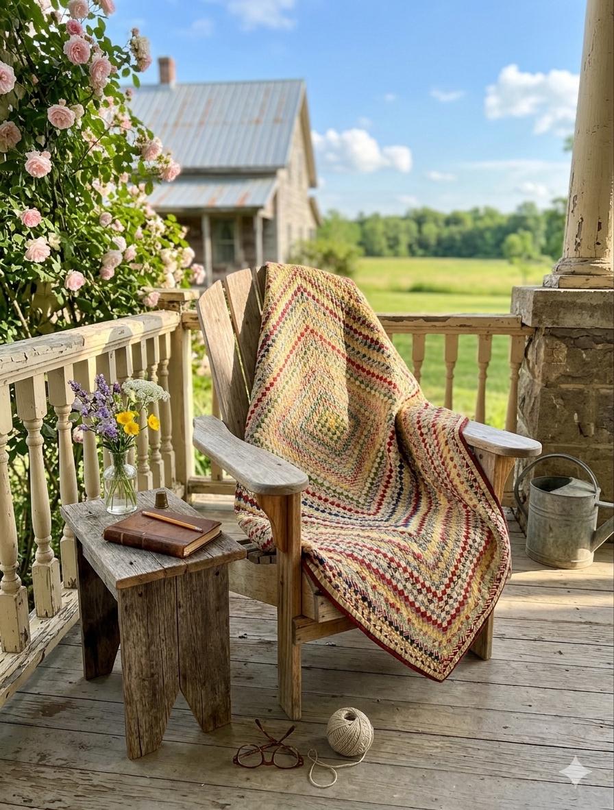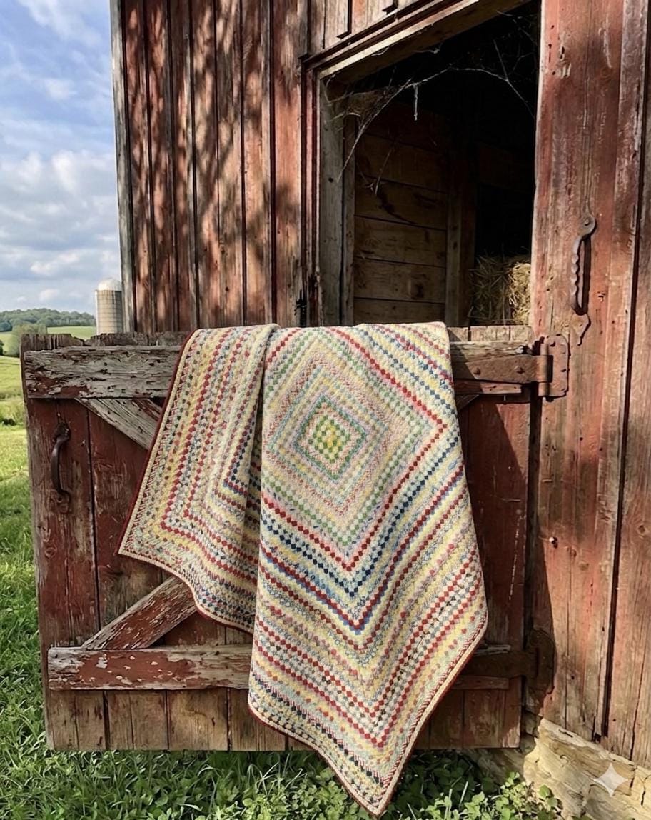 Details • Pattern: Around the World / Trip Around the World • Date: Circa 1890s • Construction: Hand-pieced & hand-quilted • Size: 58” x 68” • Materials: Antique cottons (no synthetics) • Backing: Plain woven cotton • Quilting: Hand-quilted diagonal lines • Binding: Narrow, hand-finished