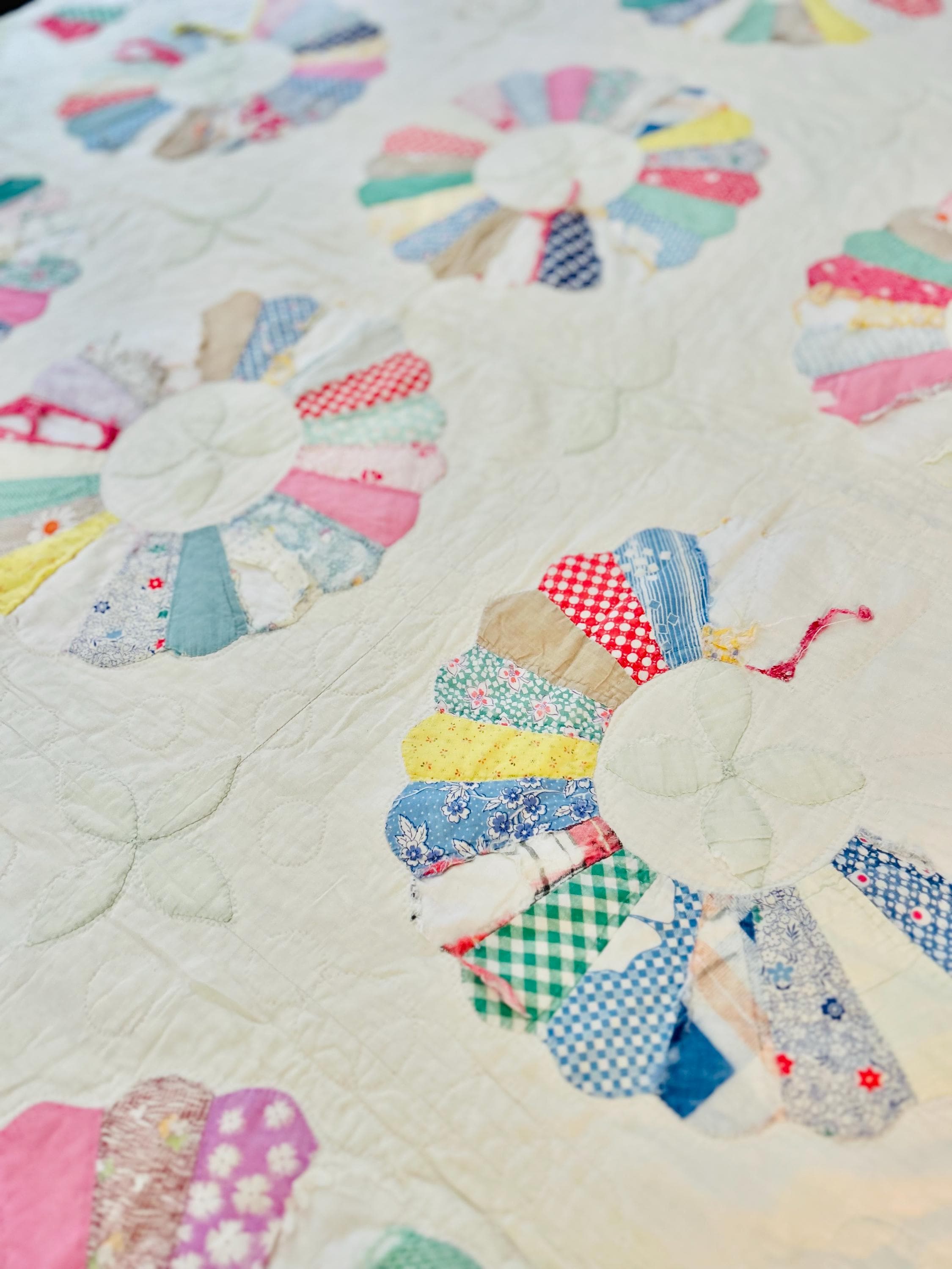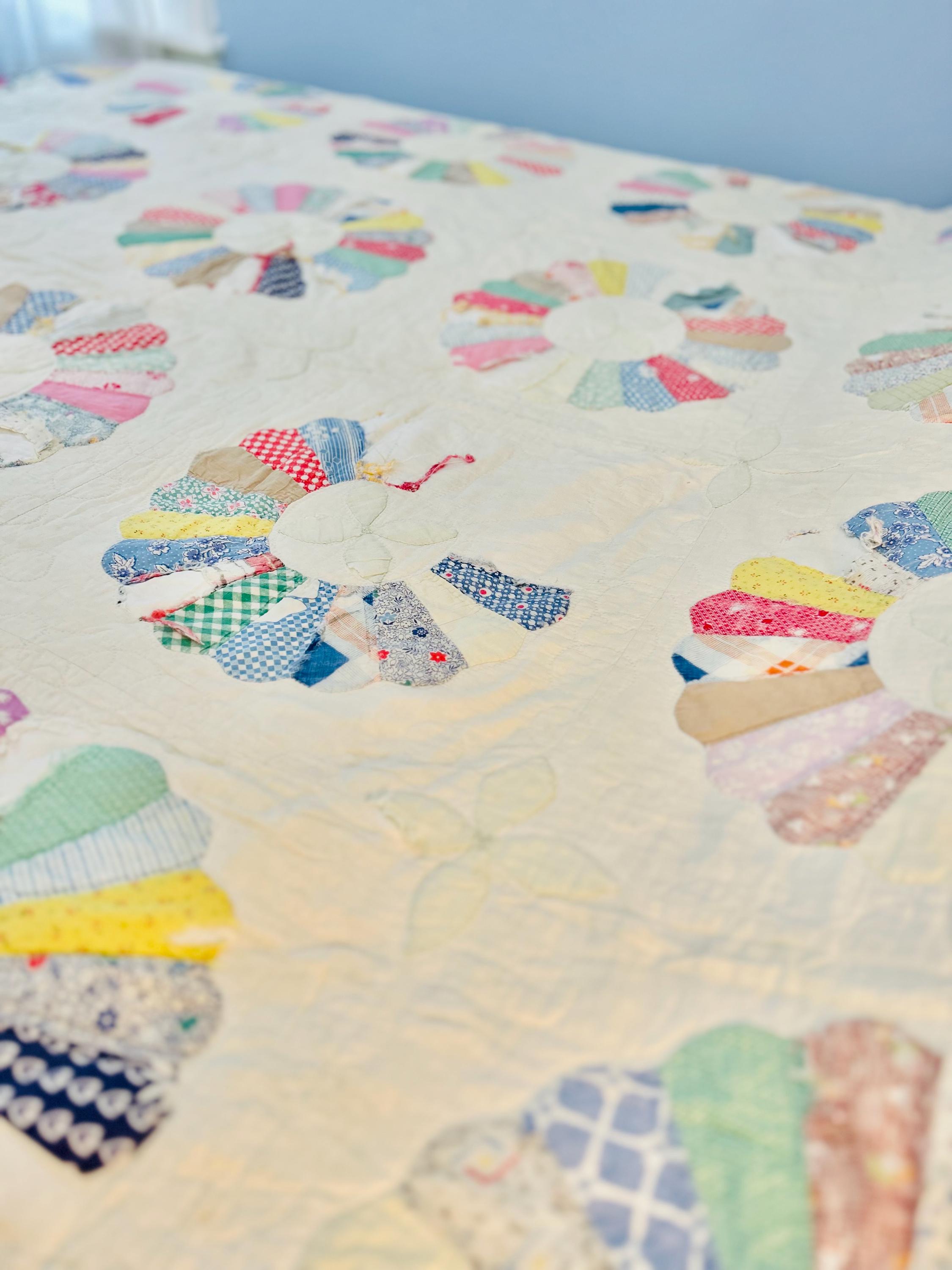 This is a genuine Depression-era quilt with beautiful character, soft wear, and true vintage charm.