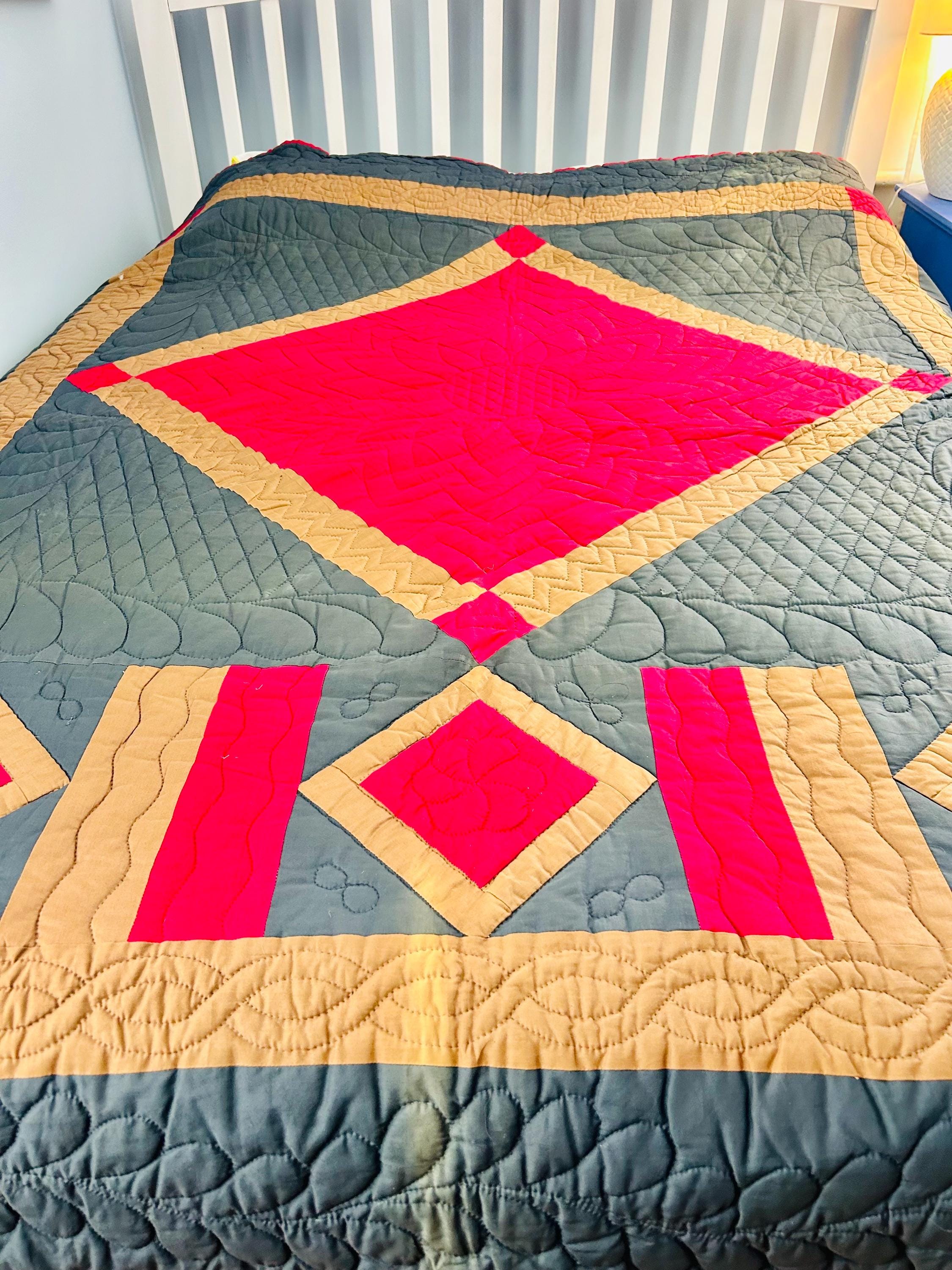 The quilt comes from a smoke-free and pet-free home and is shown on a queen-size bed.