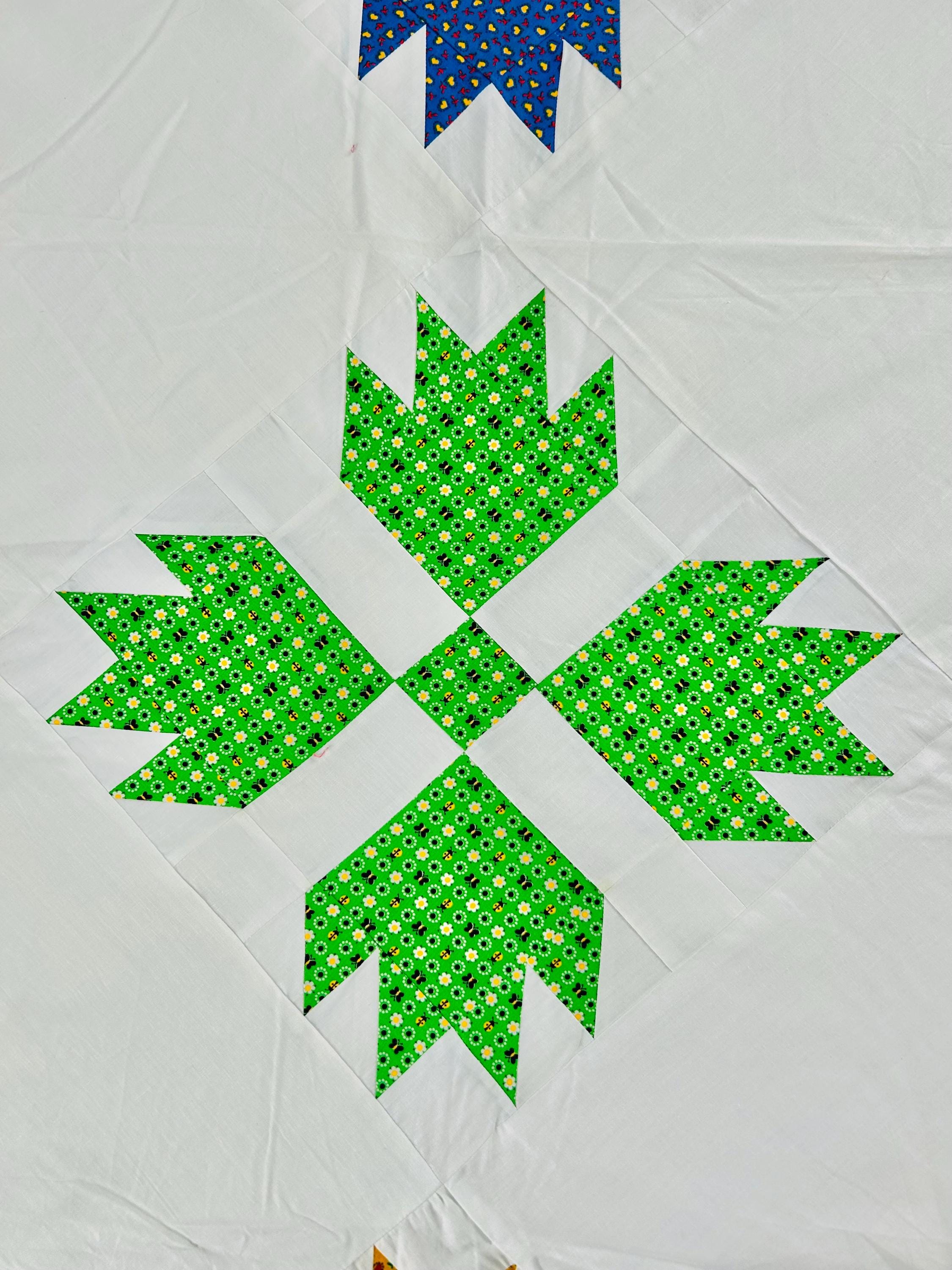 Details: • Quilt top only (unfinished) • Era: 1980s–1990s • Pattern: Autumn Leaf • Size: 73” x 90” • Materials: Cotton fabrics • No batting or backing included • Not quilted