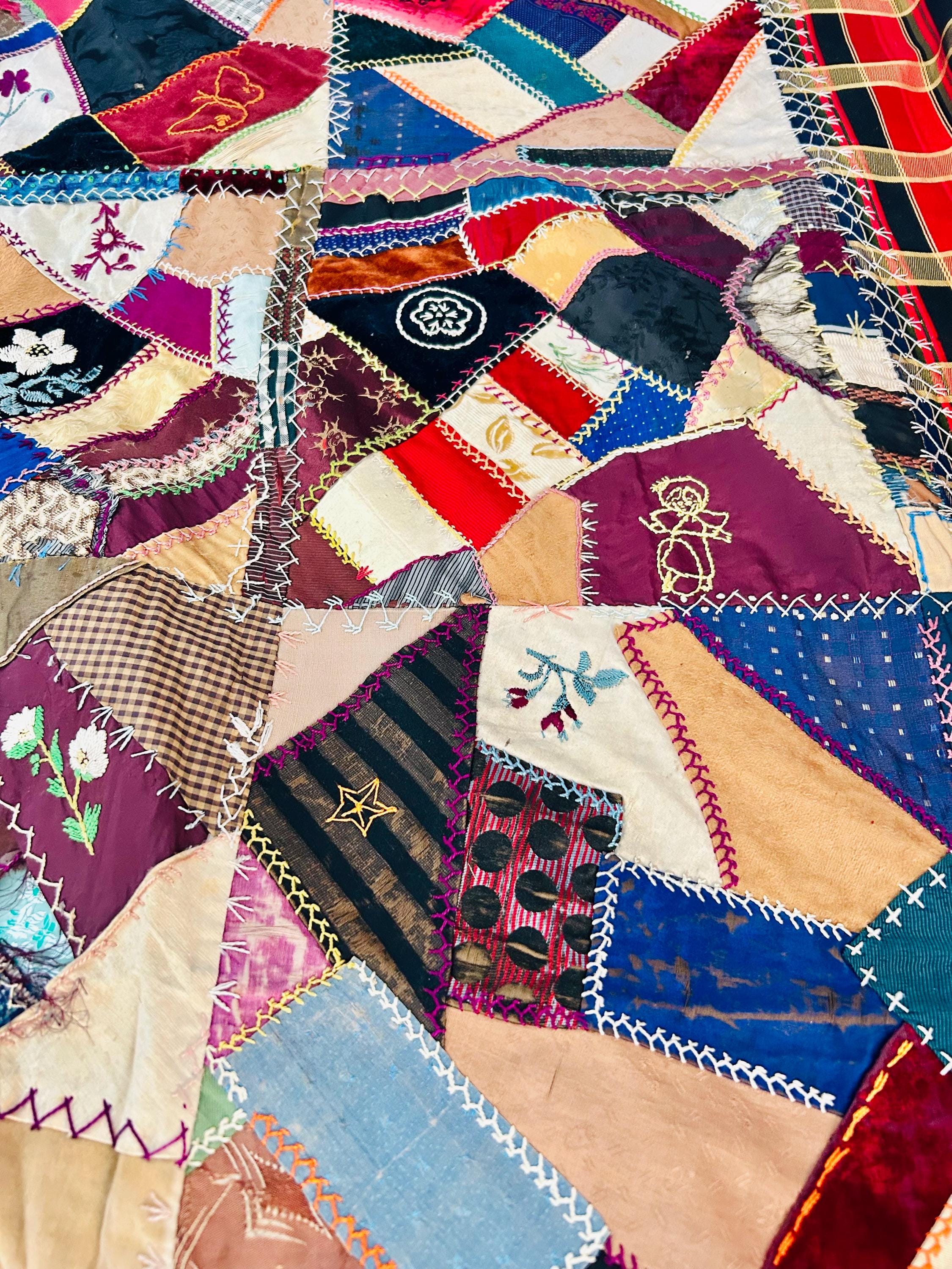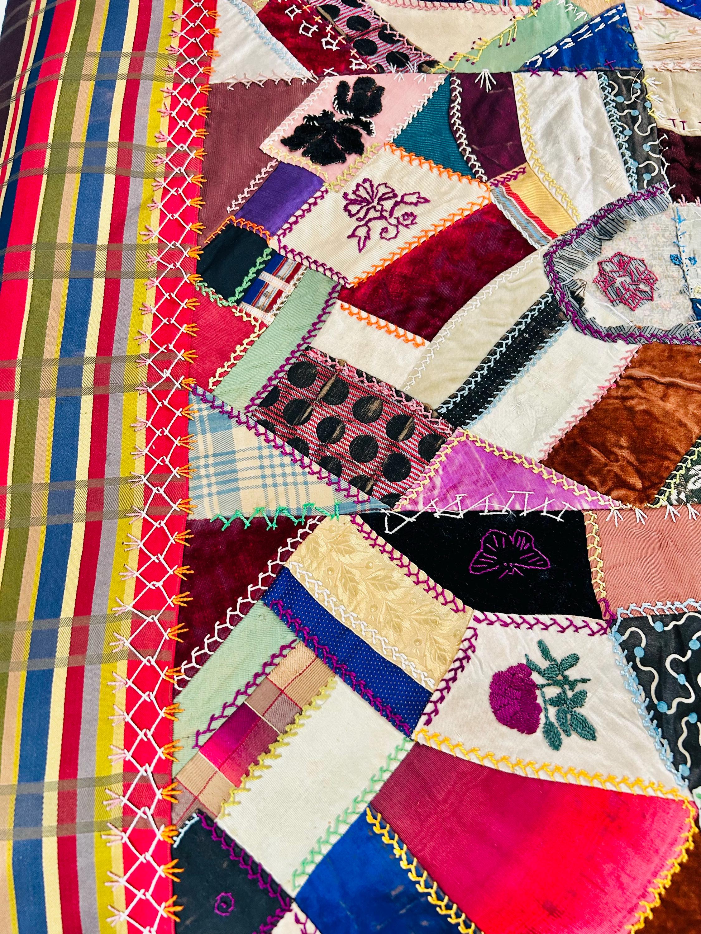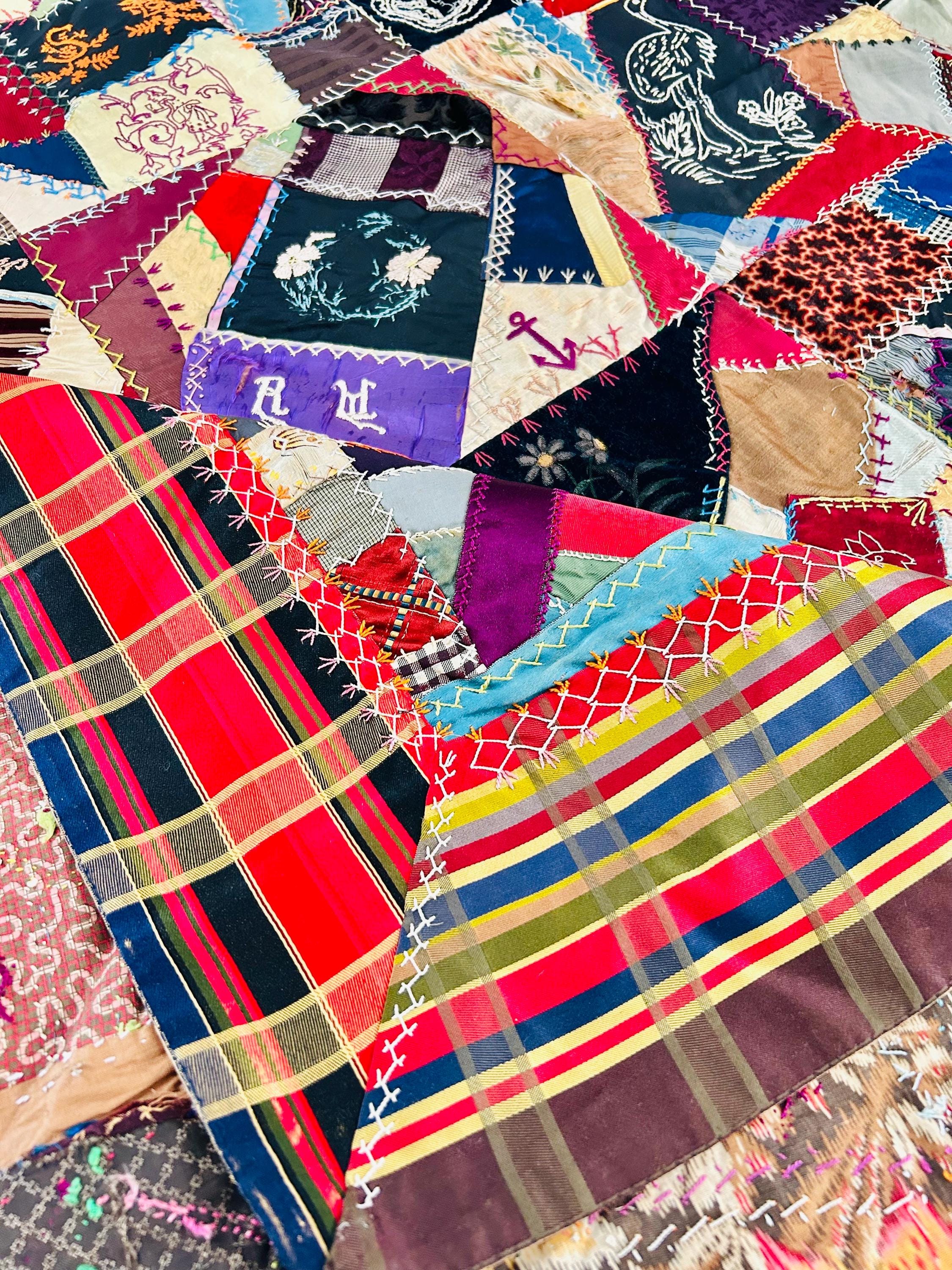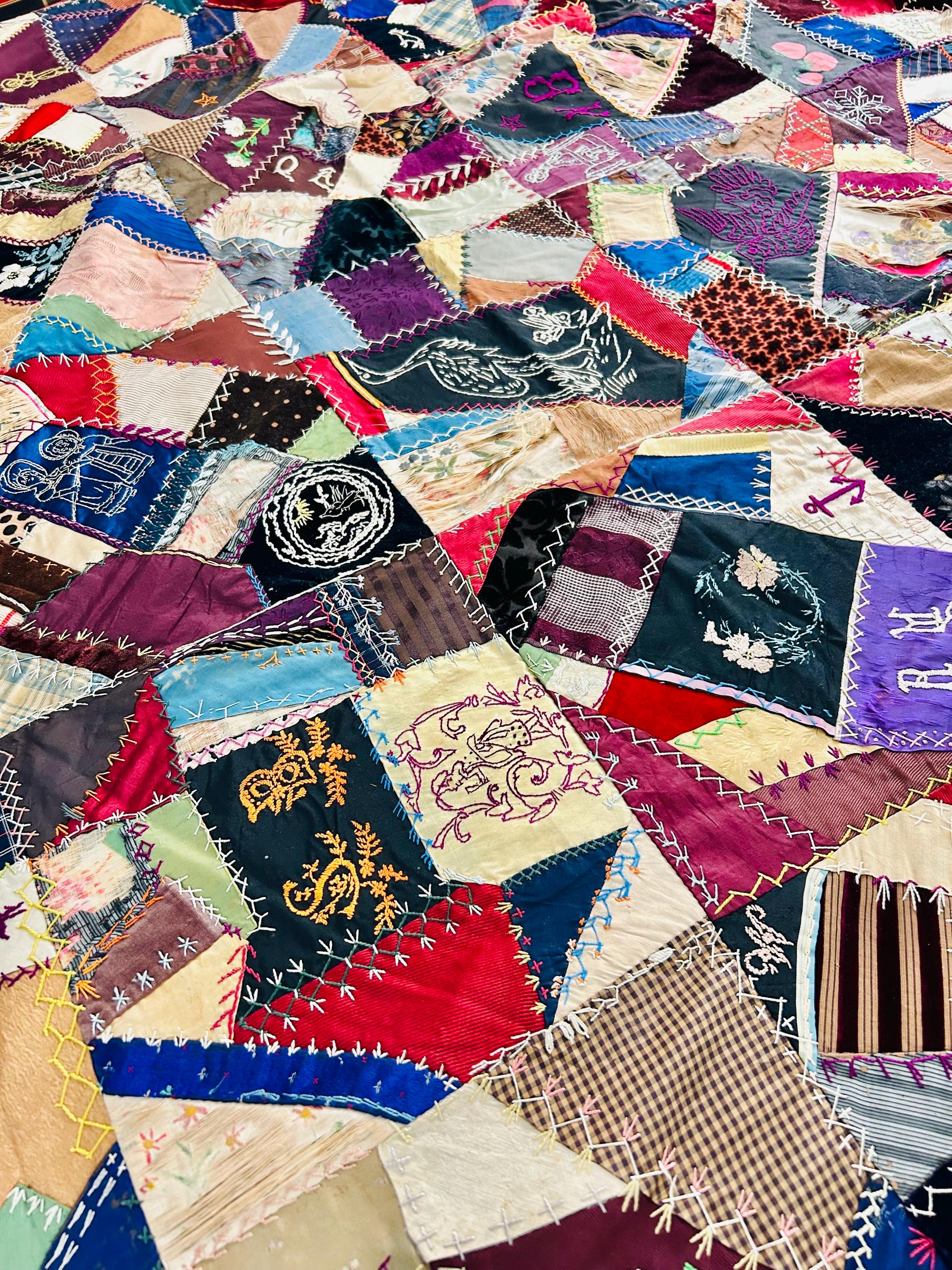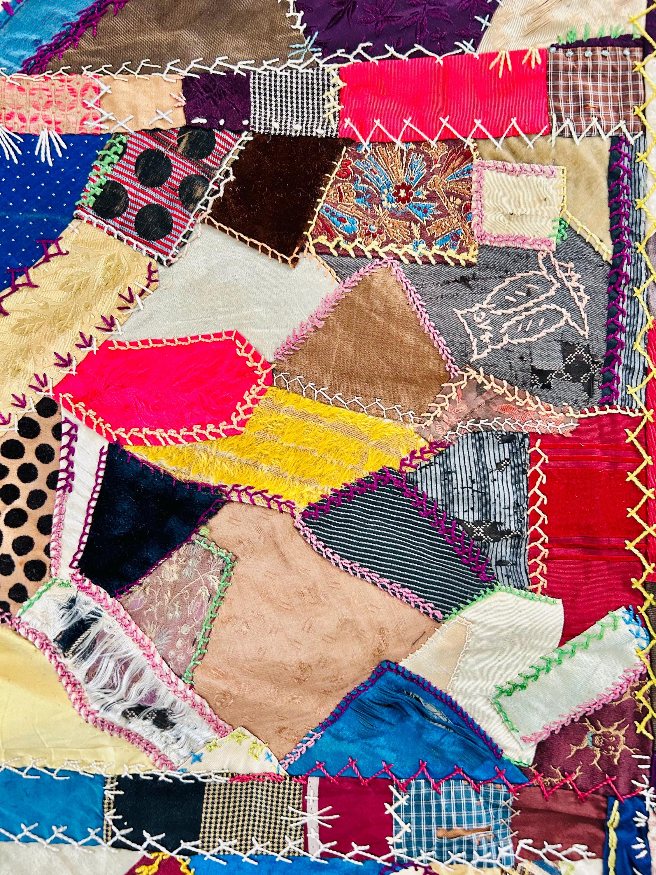A rare and authentic example of Victorian crazy quilting, the quilt is best suited for display, collection, or very gentle use due to its age.