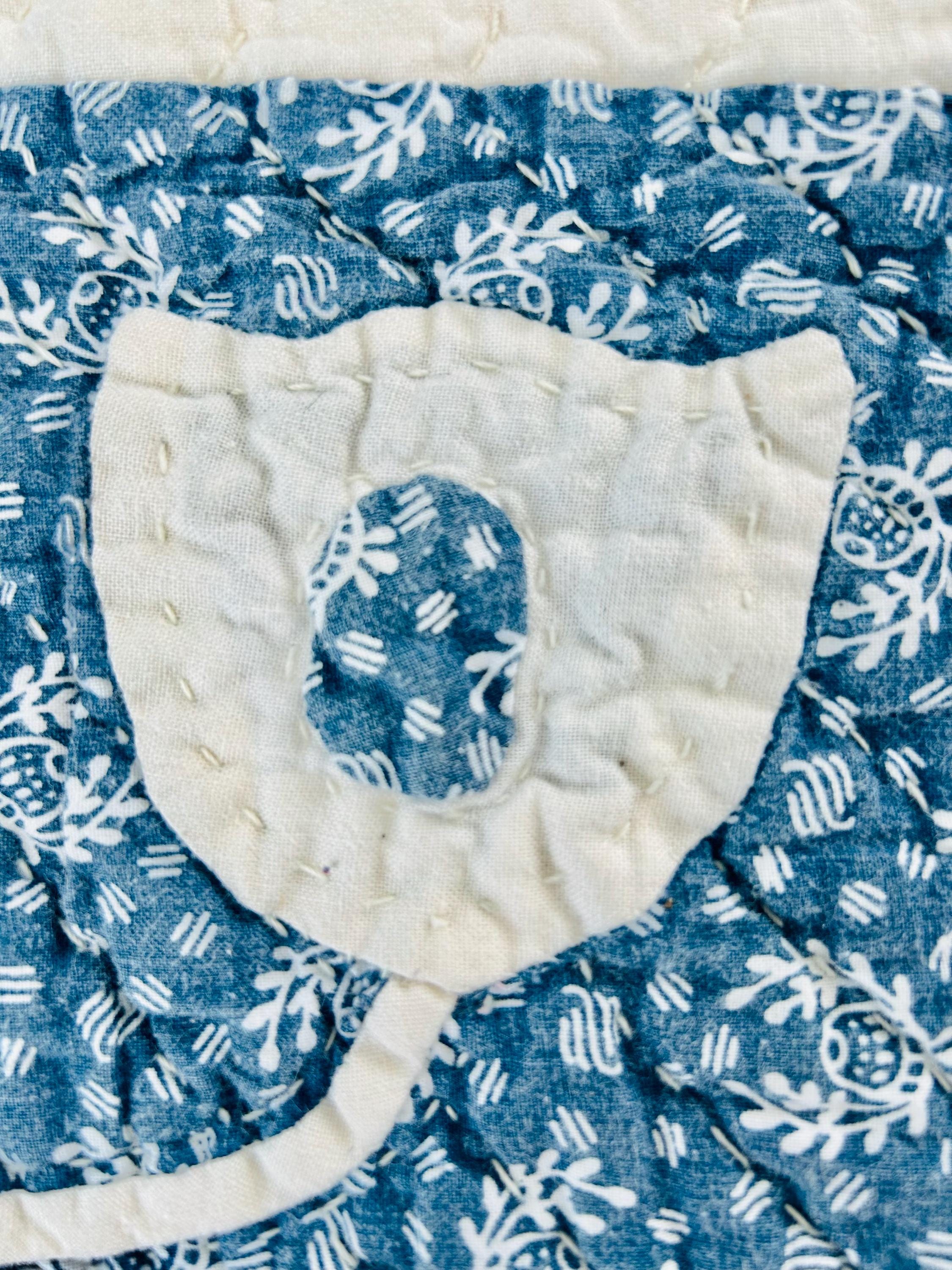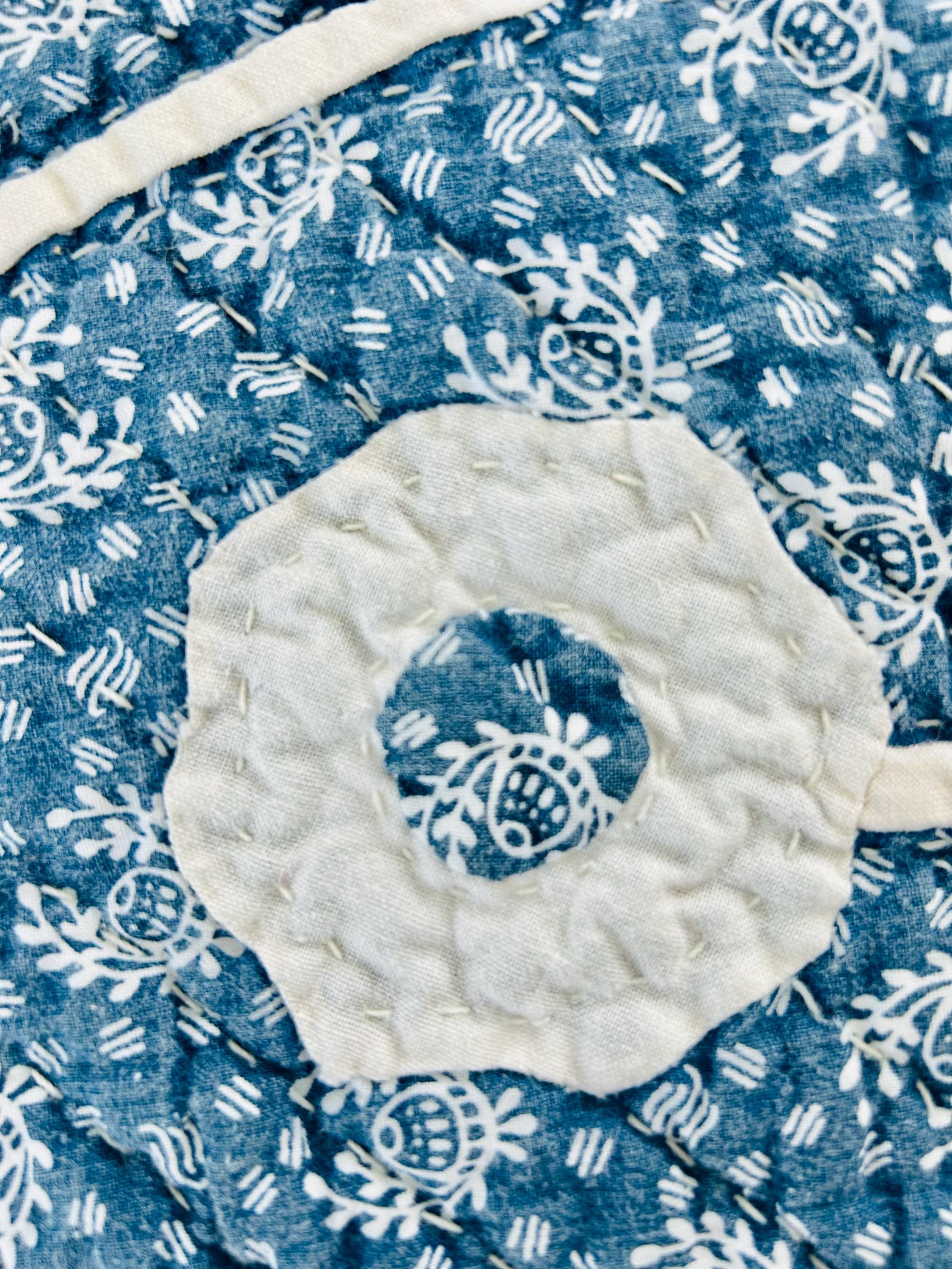 The back is white cotton with a knife-edge finish and lightweight batting.