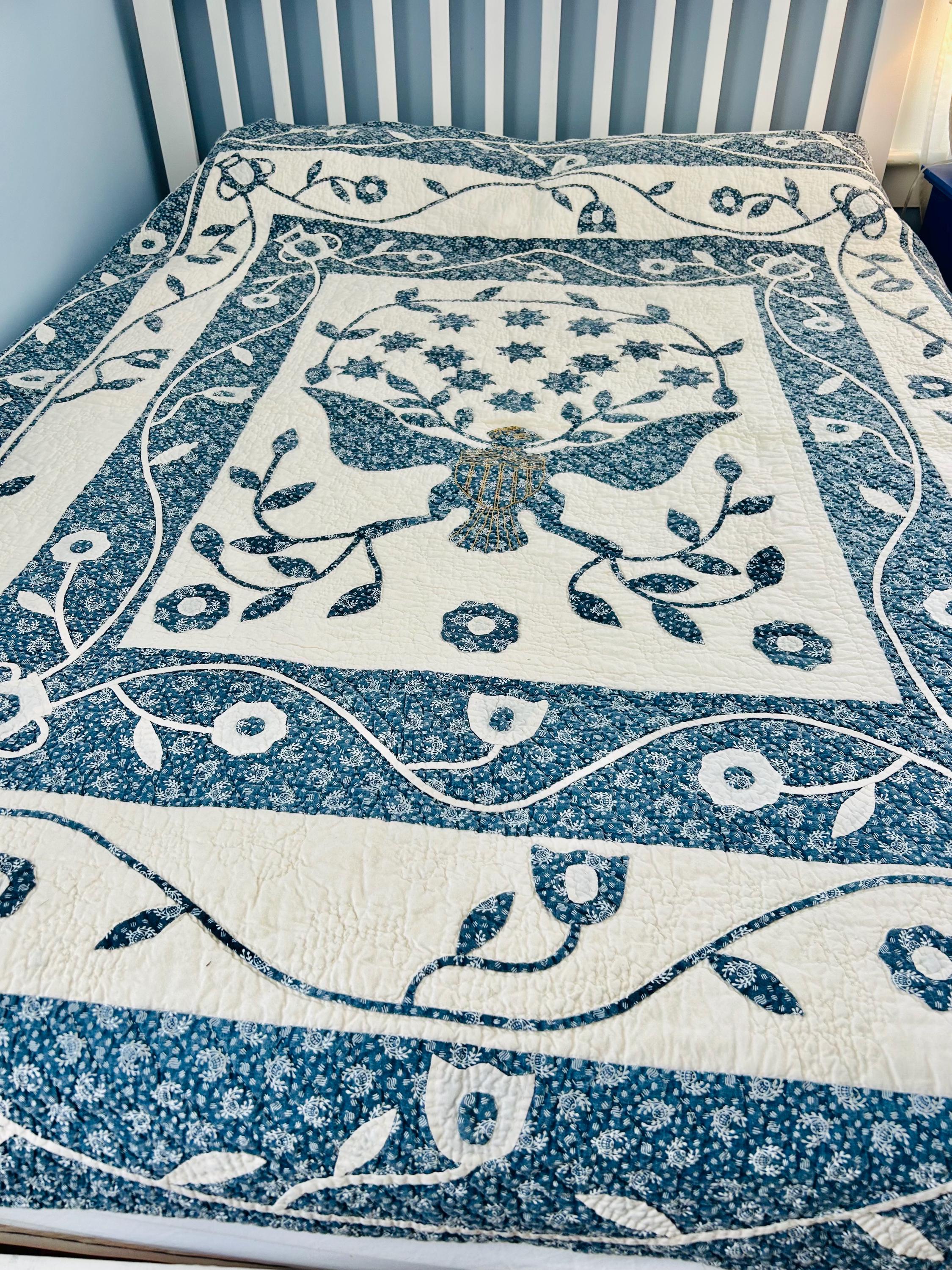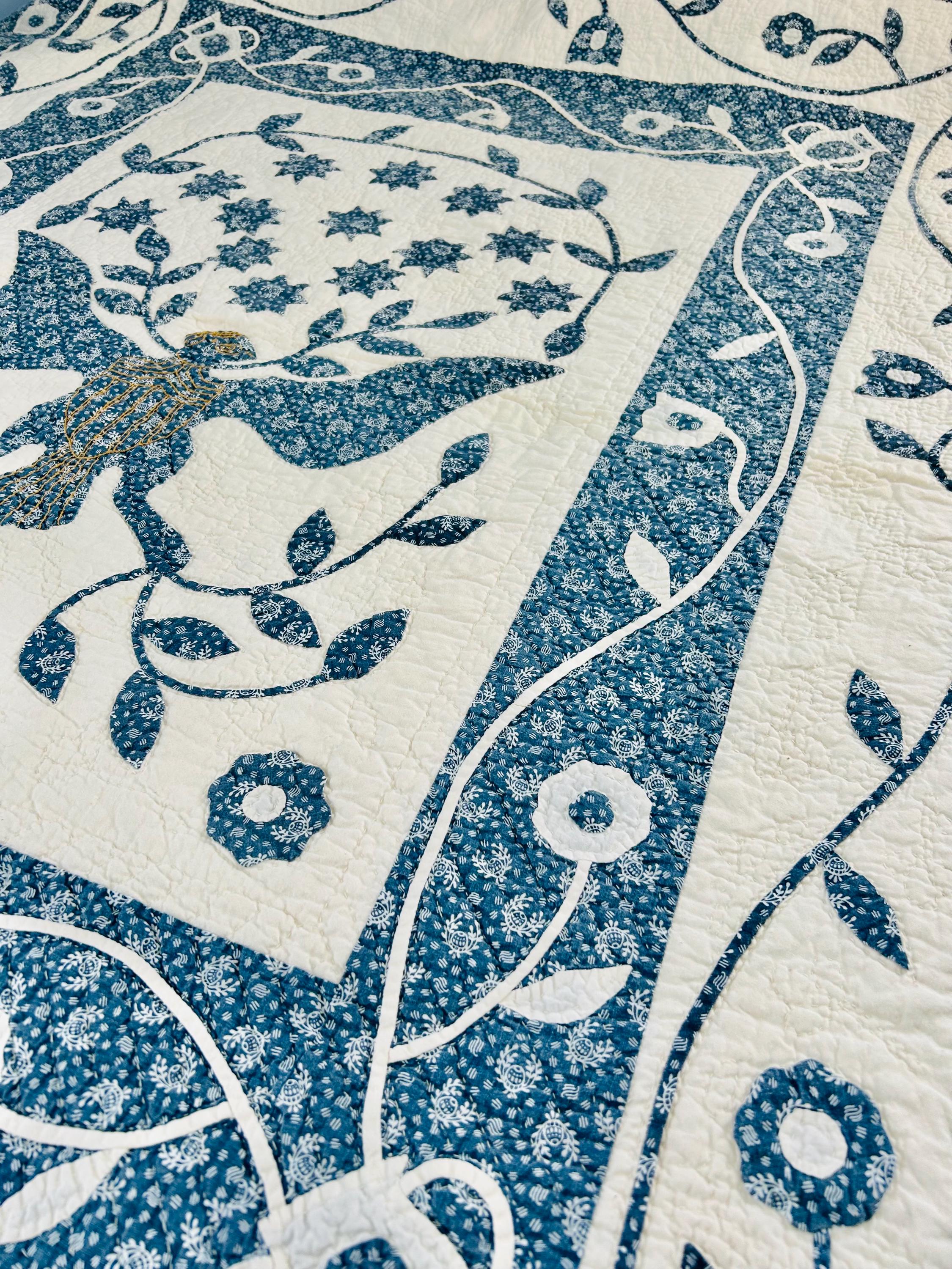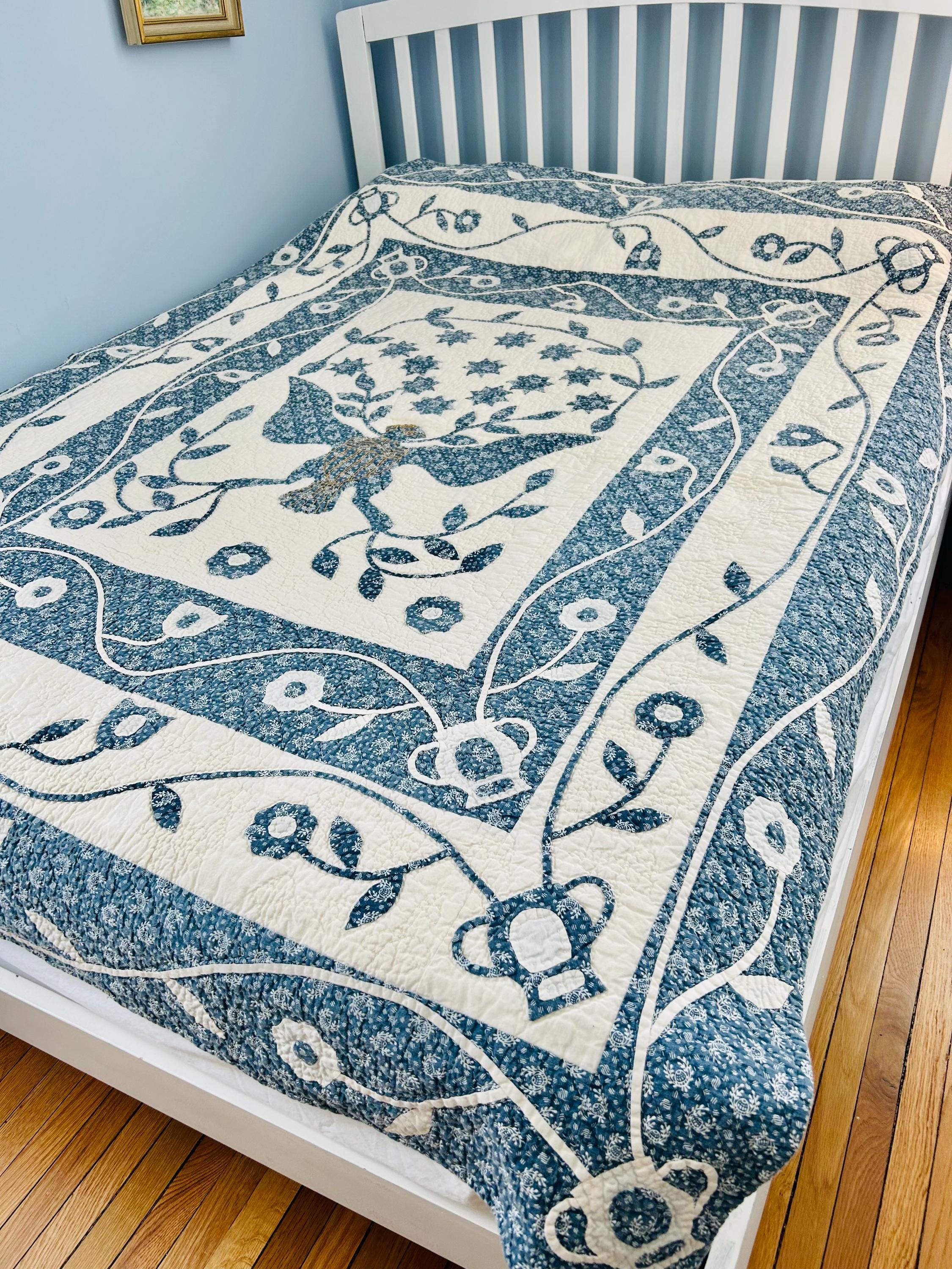 The quilt comes from a smoke-free, pet-free home and is pictured on a queen-size bed. CL0107