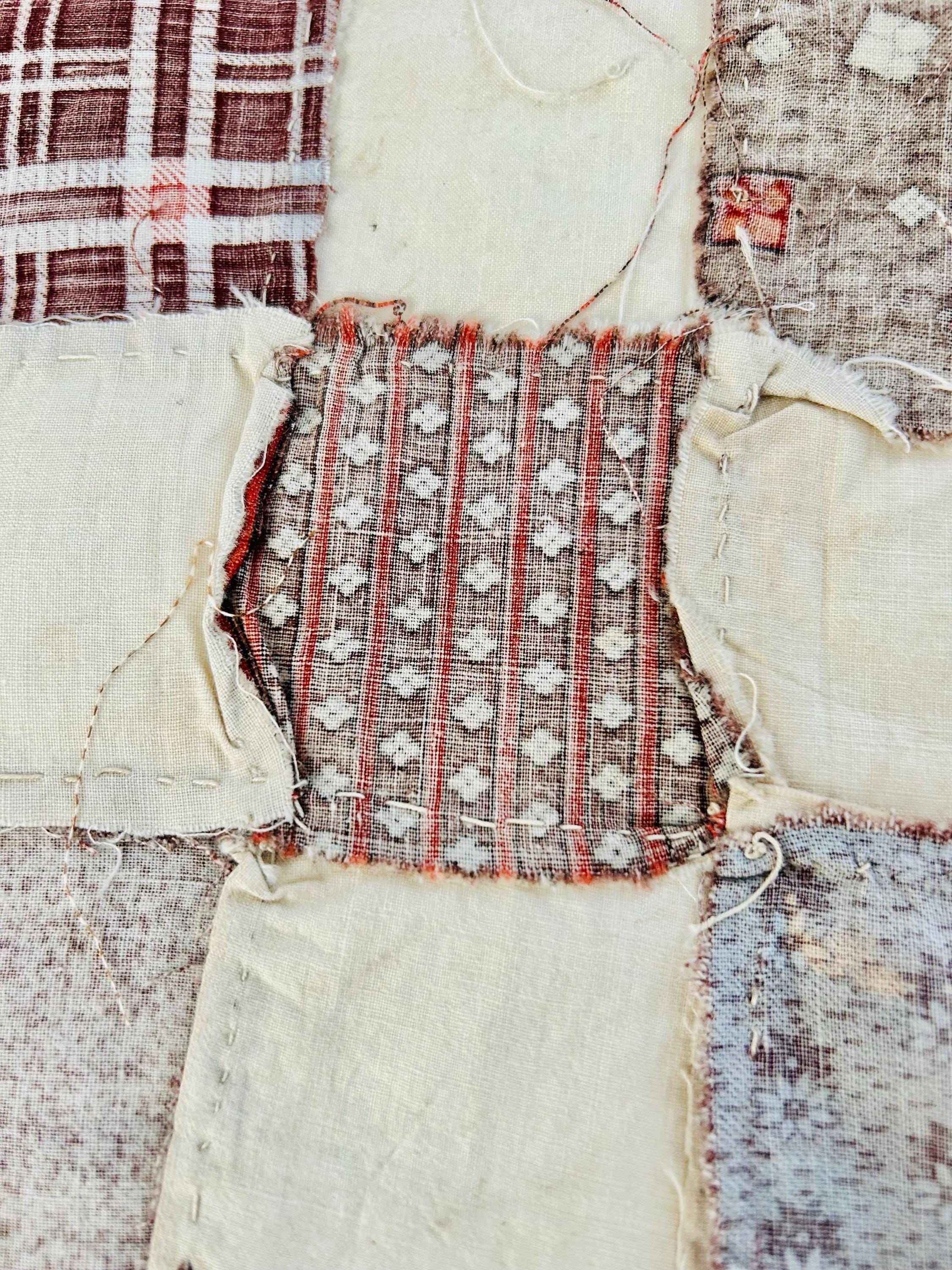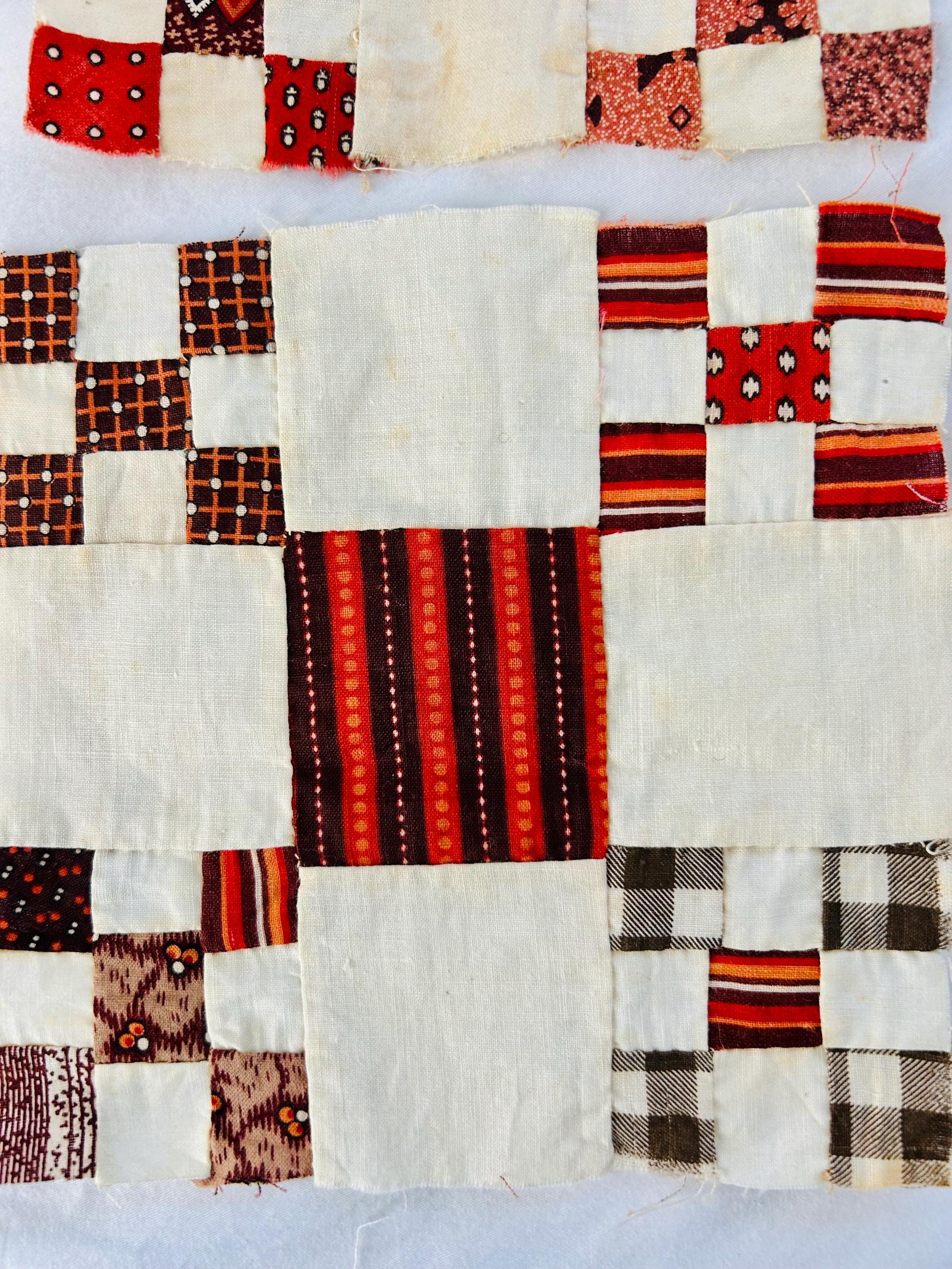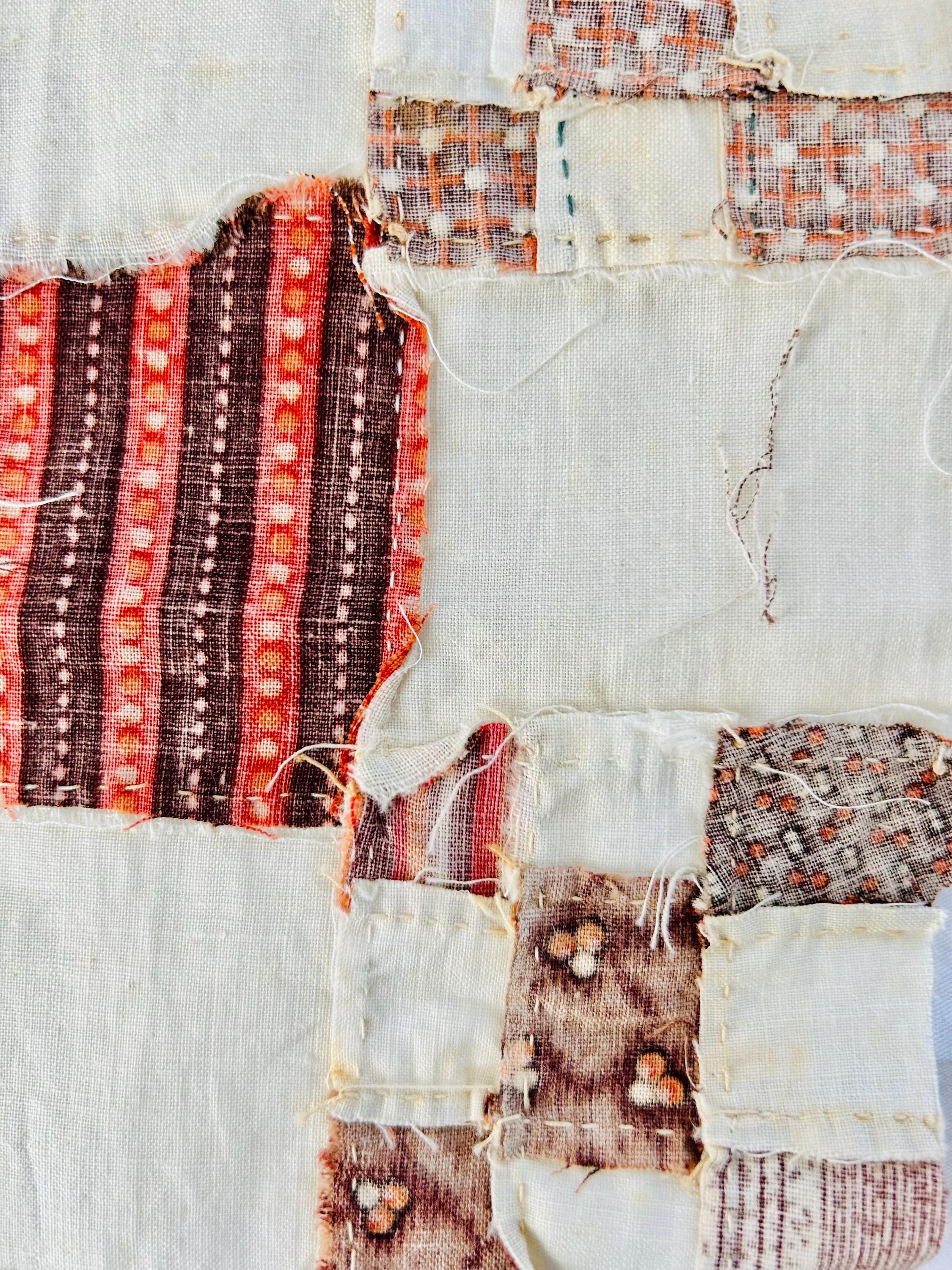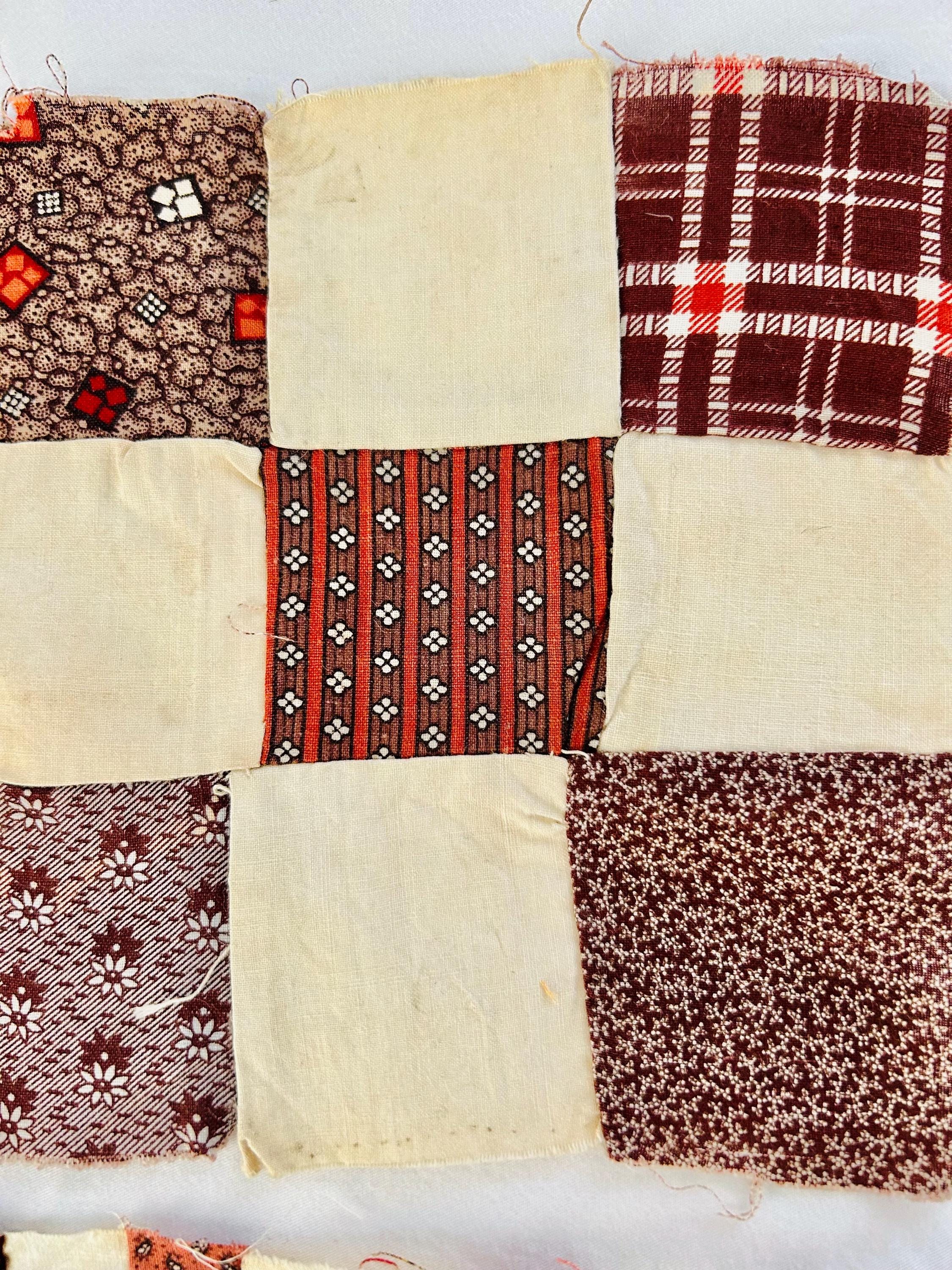 Construction is entirely consistent with the era: • hand pieced using a simple running stitch • uneven stitch length typical of early domestic sewing • soft, loosely woven cottons with natural oxidation • blocks were never quilted or assembled, likely intended for a larger project that was never completed