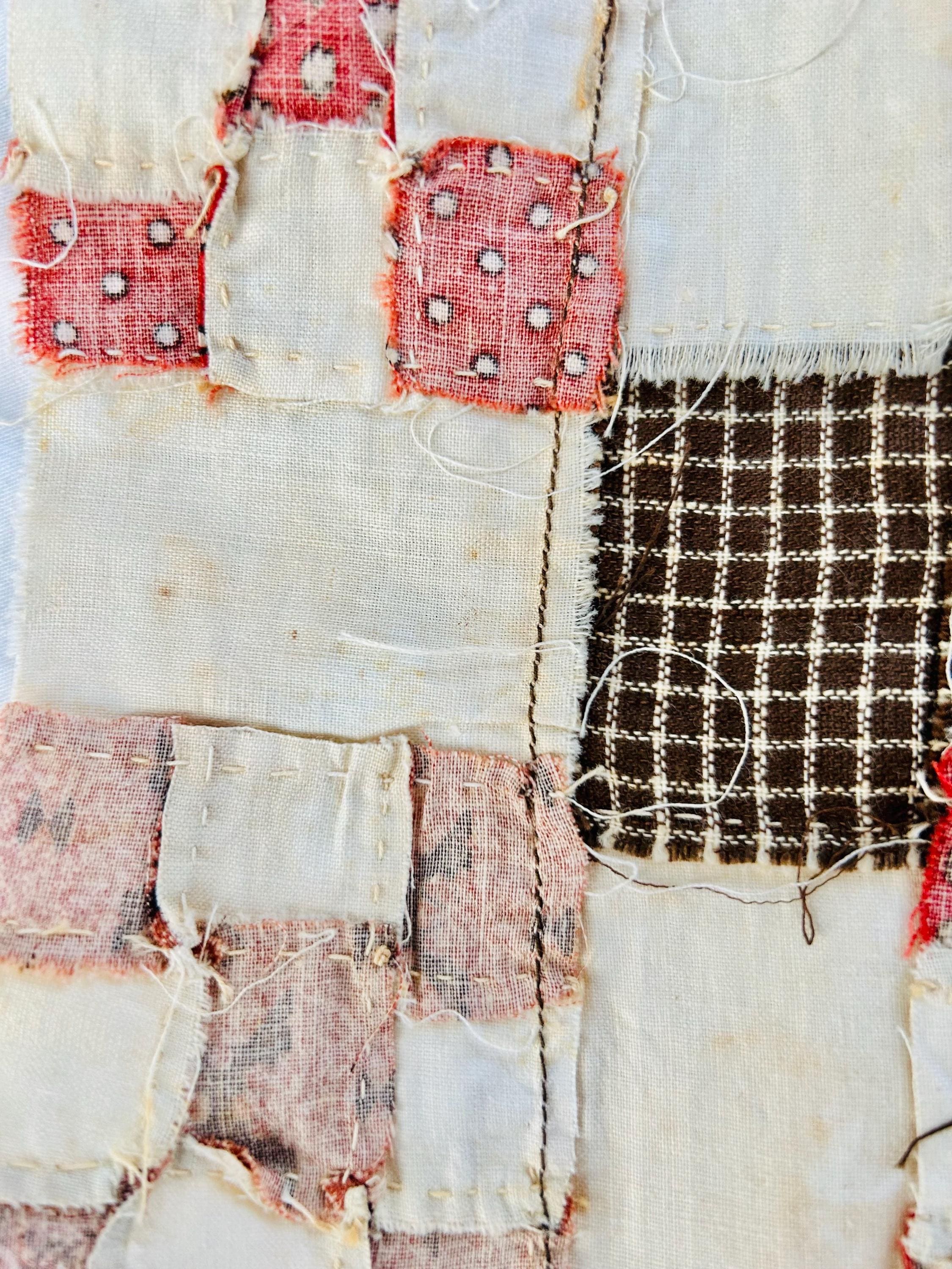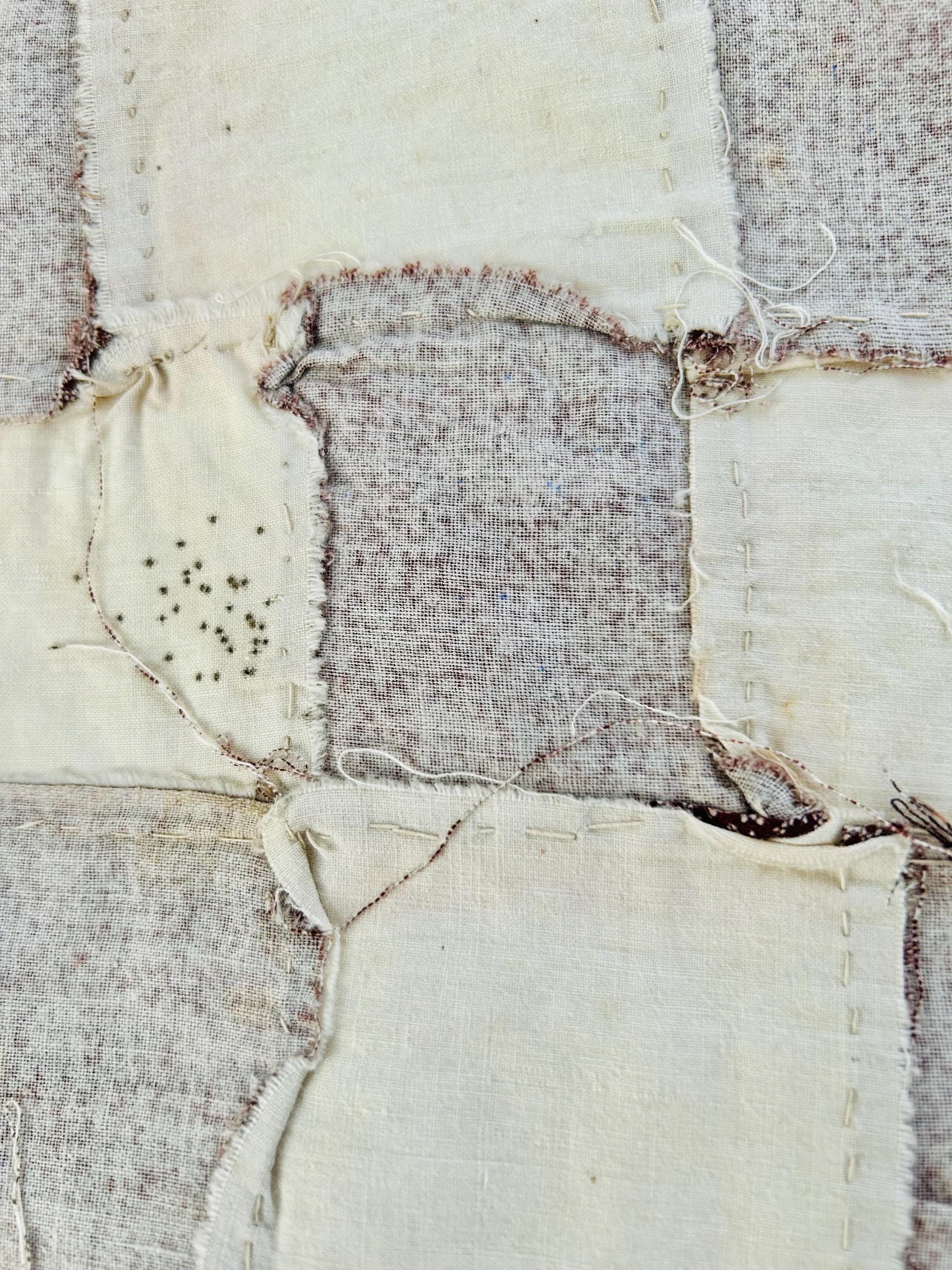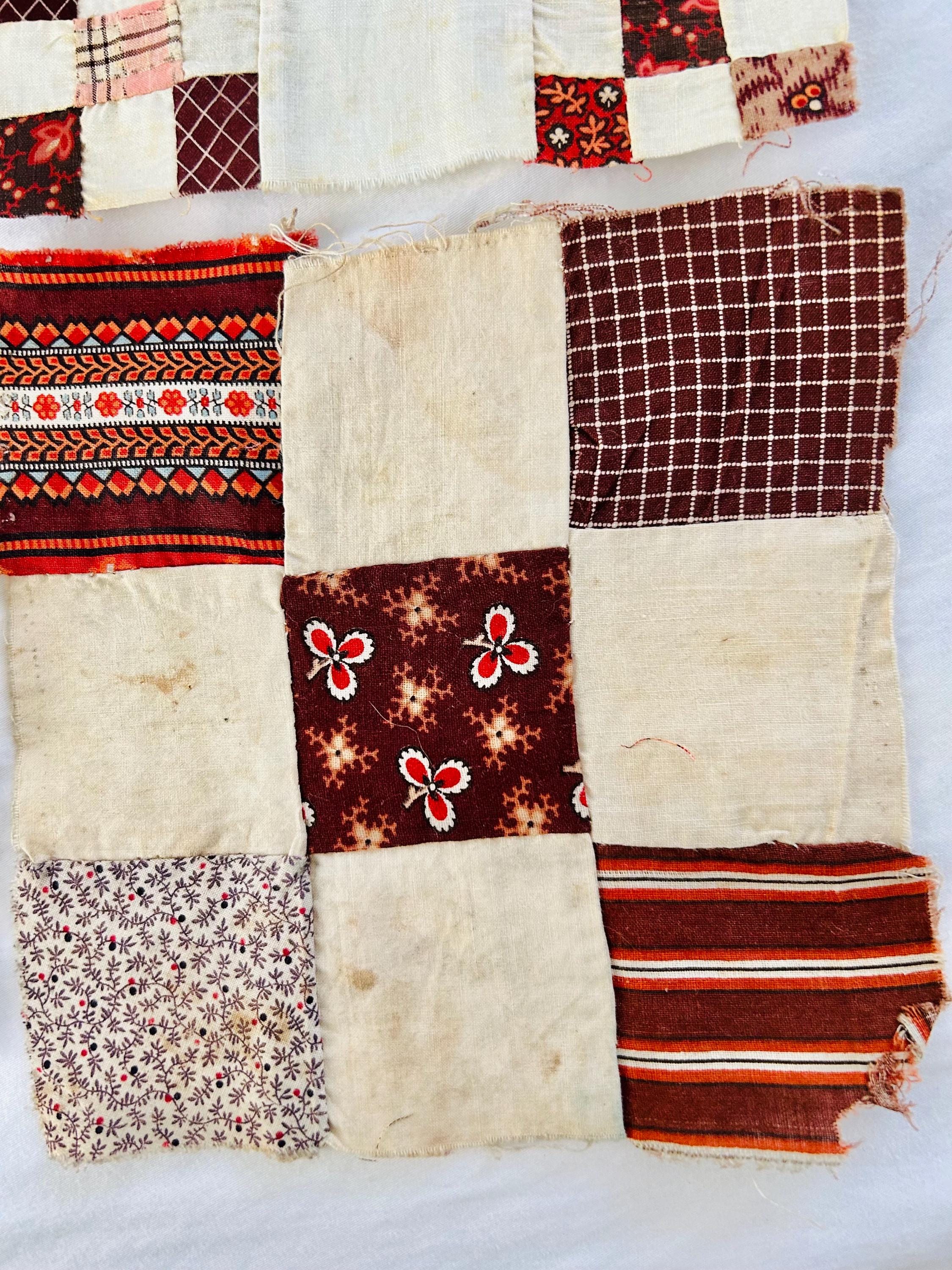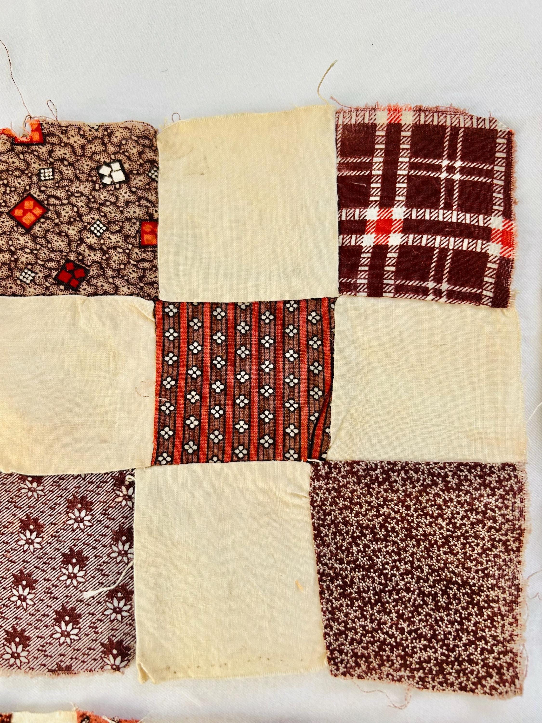 Construction is entirely consistent with the era: • hand pieced using a simple running stitch • uneven stitch length typical of early domestic sewing • soft, loosely woven cottons with natural oxidation • blocks were never quilted or assembled, likely intended for a larger project that was never completed