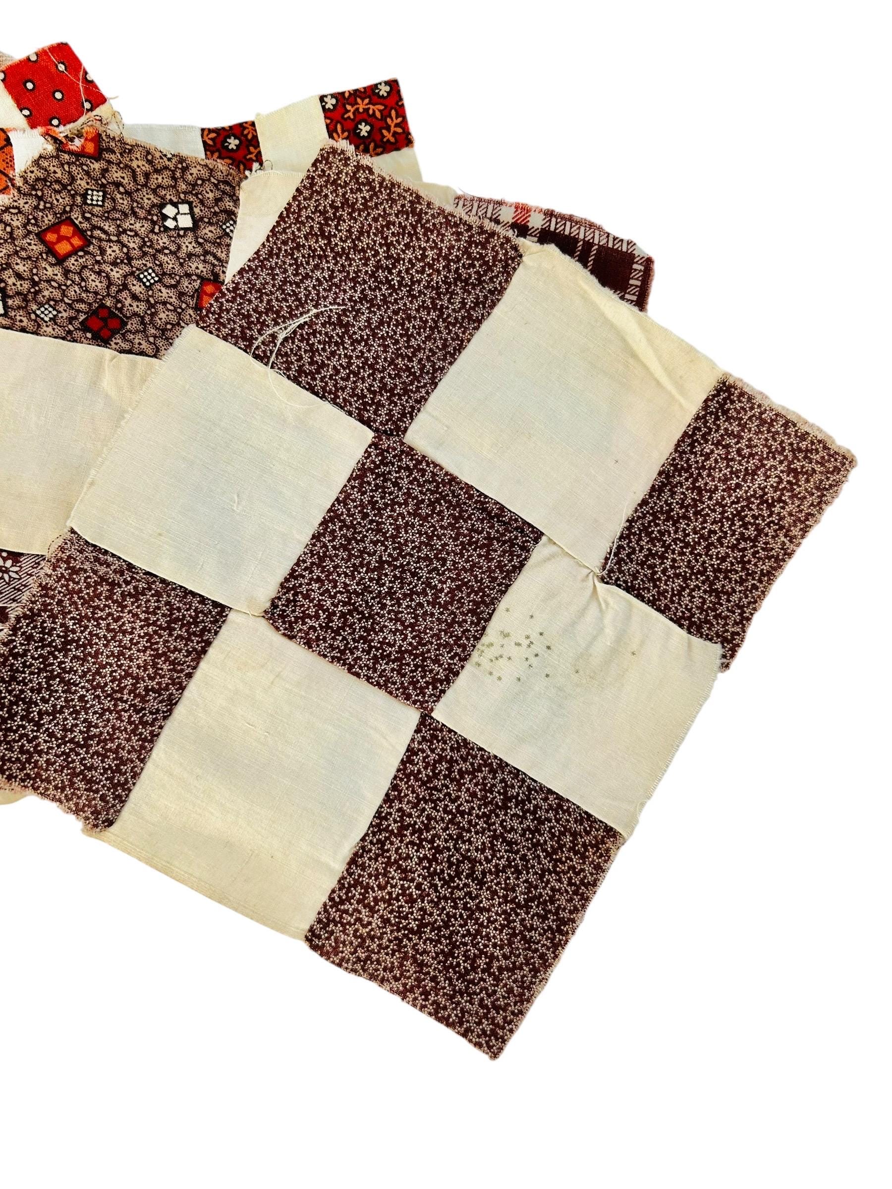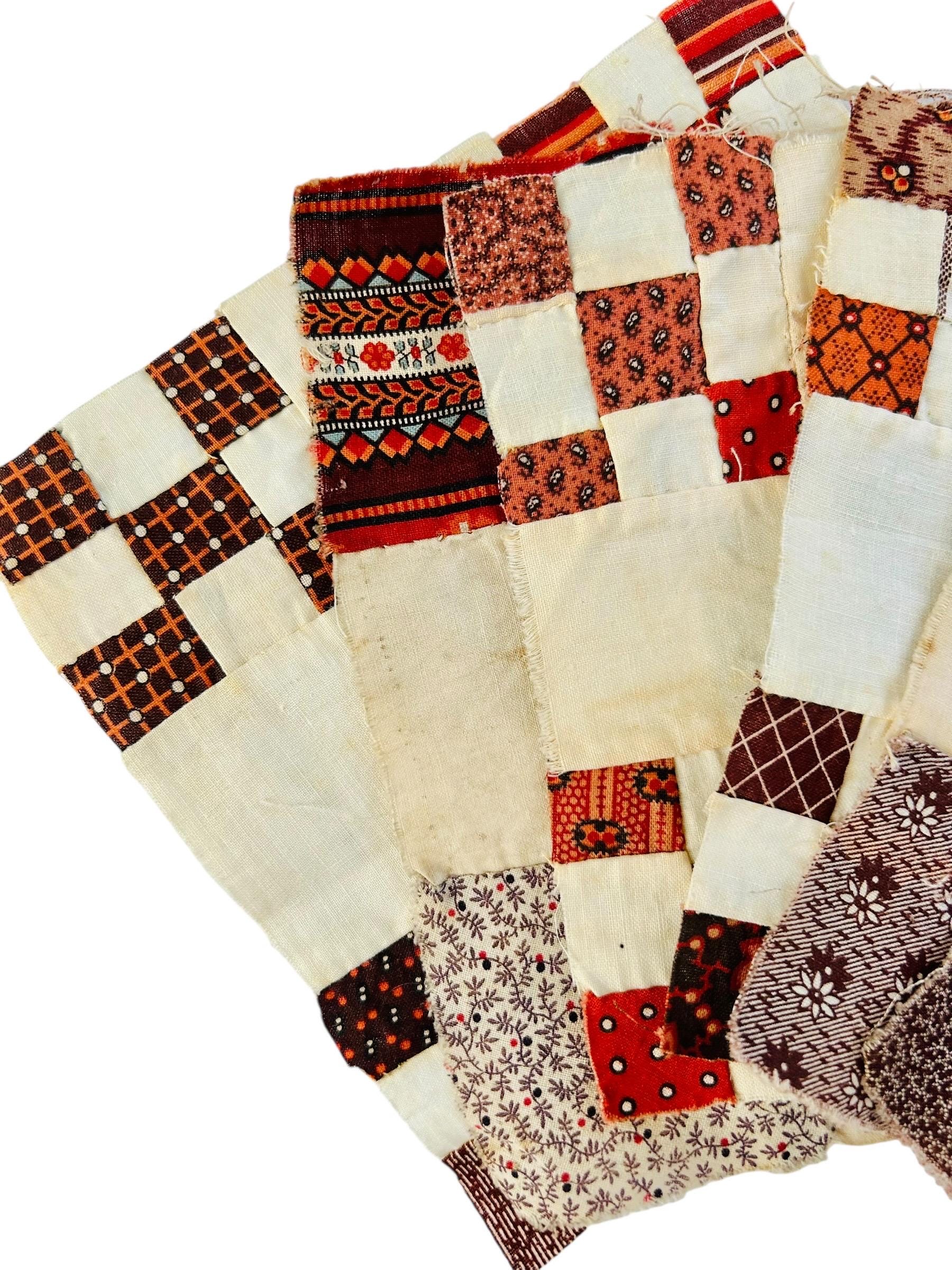 Details • Date: circa 1820–1835 • Origin: United States • Construction: Entirely hand pieced • Materials: Early printed cottons with cotton ground • Size: Each block measures 7” x 7” • Condition: • Honest age-appropriate wear • Light oxidation and small spots consistent with early 19th-century textiles • Fraying along some raw edges (expected and original) • No modern repairs or alterations