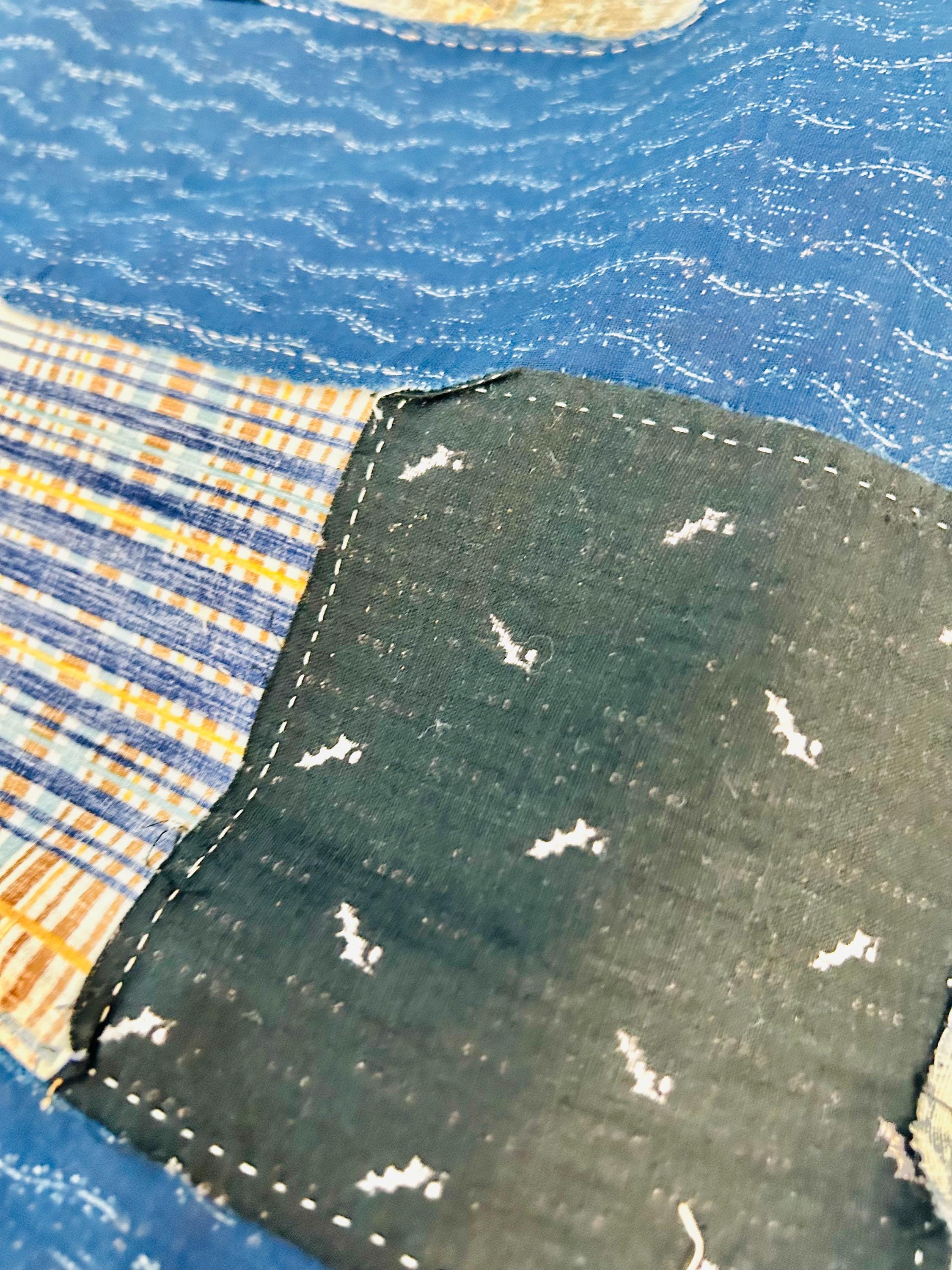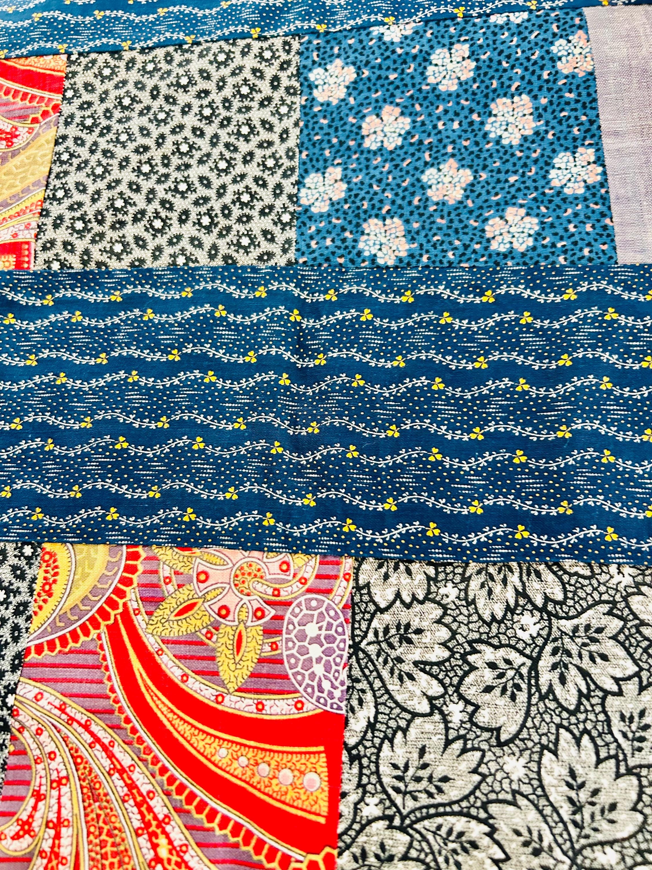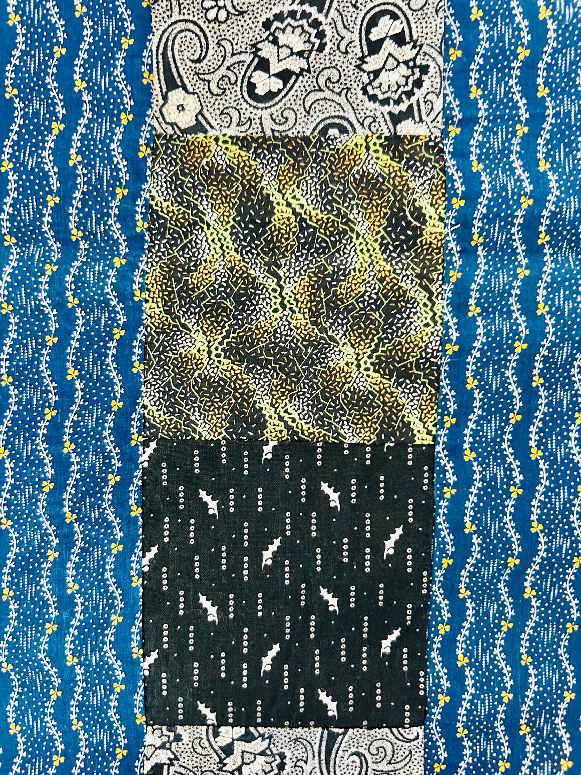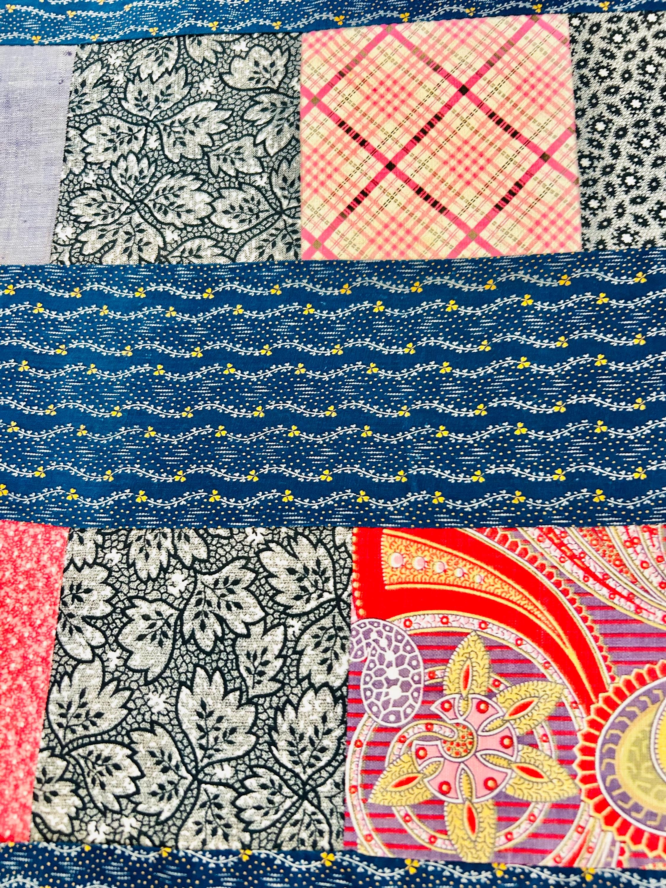 Details • Era: 1930s • Materials: Vintage cotton feed sack fabrics • Construction: Hand-pieced quilt top, no backing, no batting, no quilting • Size: 58” x 78” • Pattern: Vertical patchwork strip layout