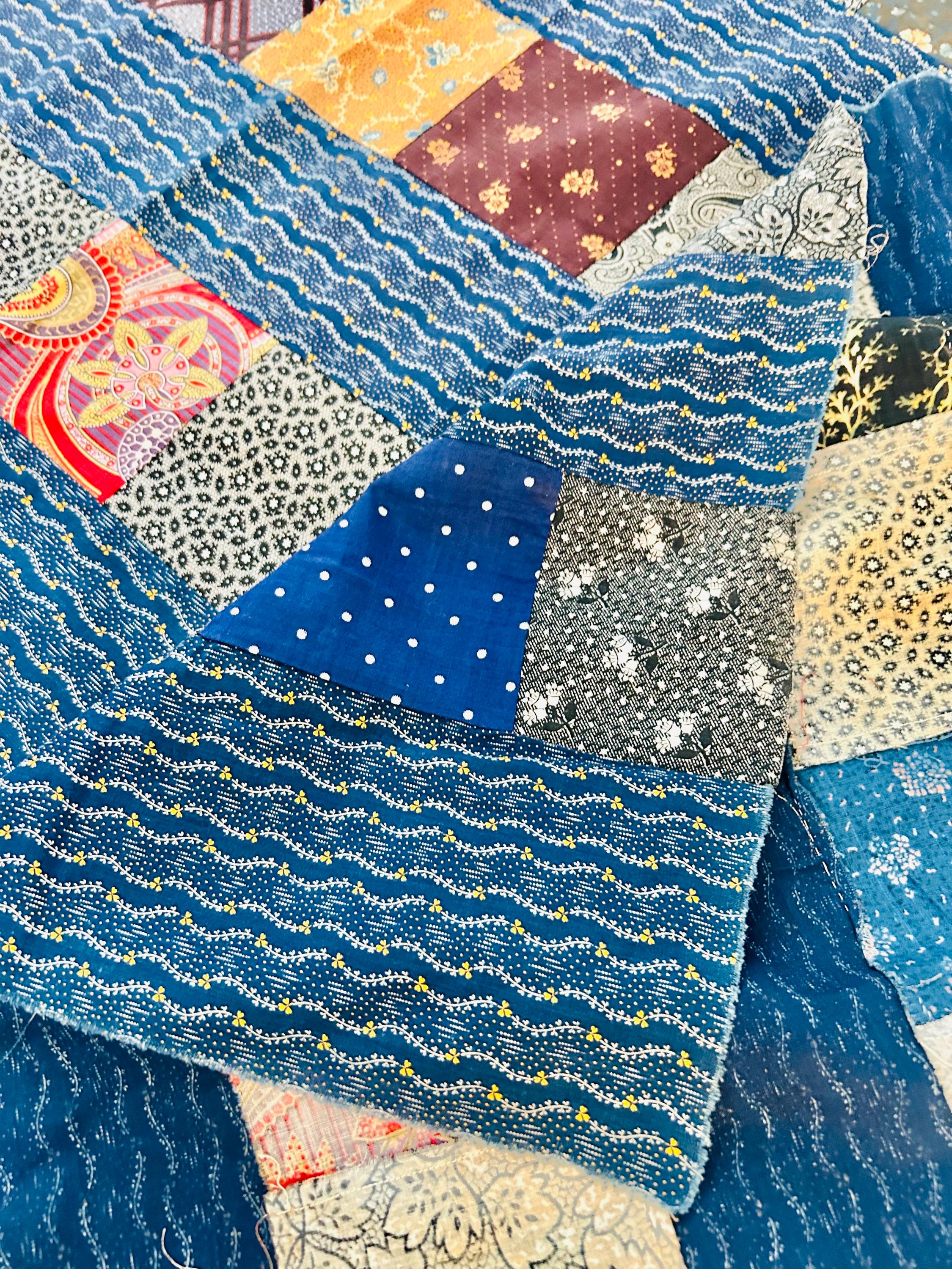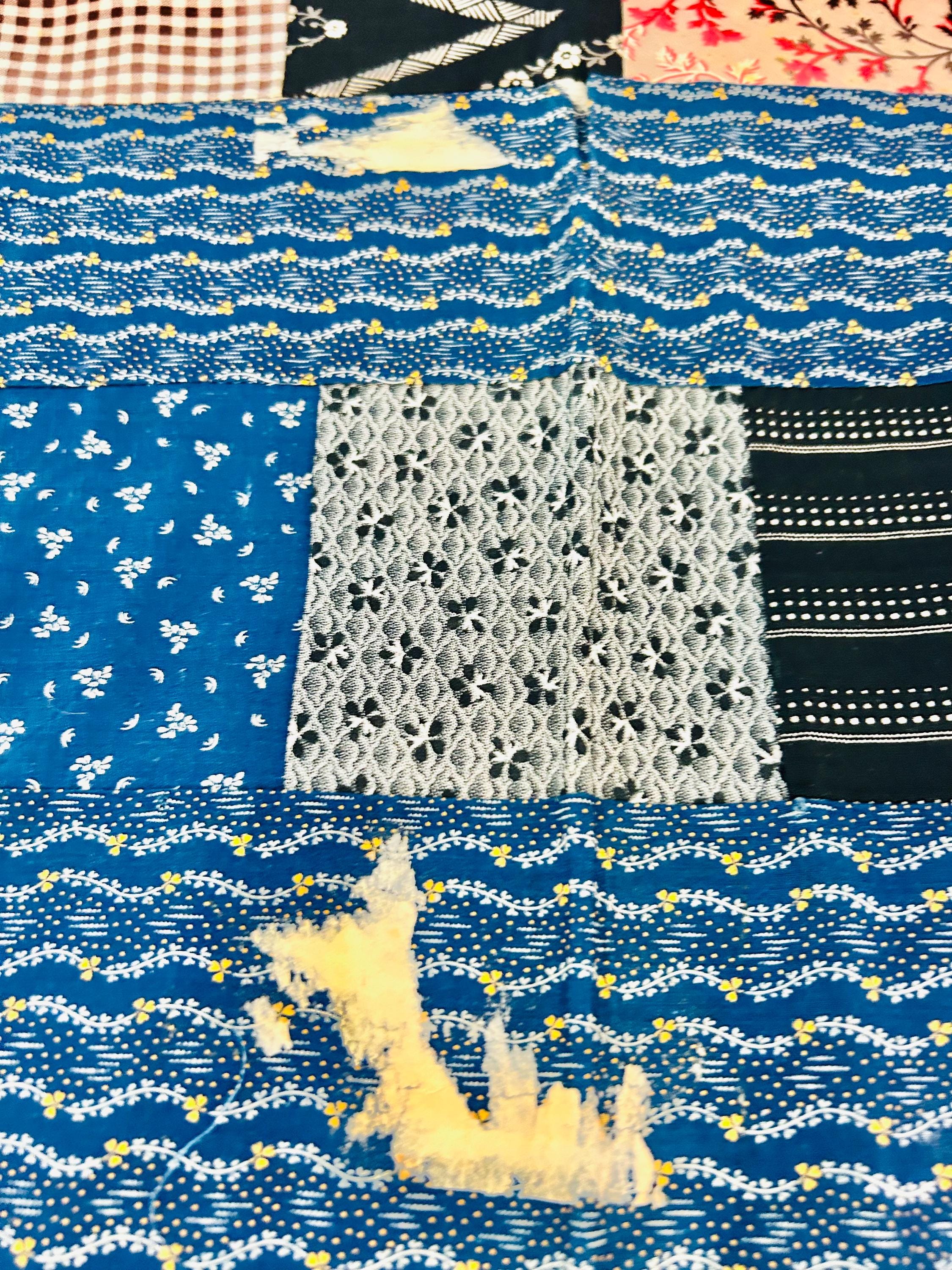 The fabrics visible throughout are classic 1930s feed sack prints, including: • Small-scale floral sprays • Ditsy and calico motifs • Geometric and dot patterns • Novelty feed sack designs typical of the era • Soft, slightly textured cottons consistent with Depression-era sack cloth