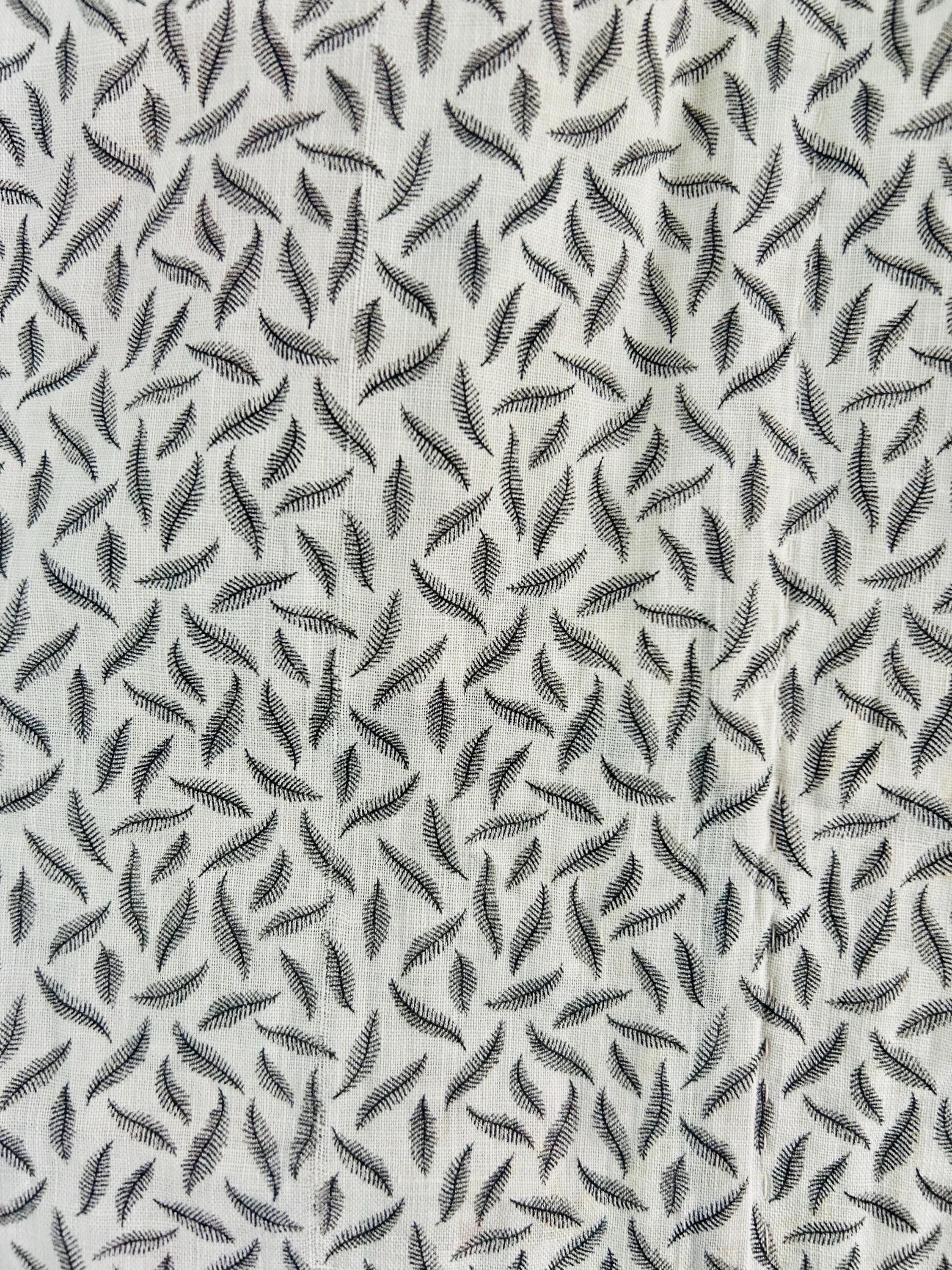 Several pieces likely date to the 1870s–1880s, with the quilt most likely assembled circa 1890–1910. The back is a lovely, delicate feather print in shades of tan. The cotton batting is very lightweight.