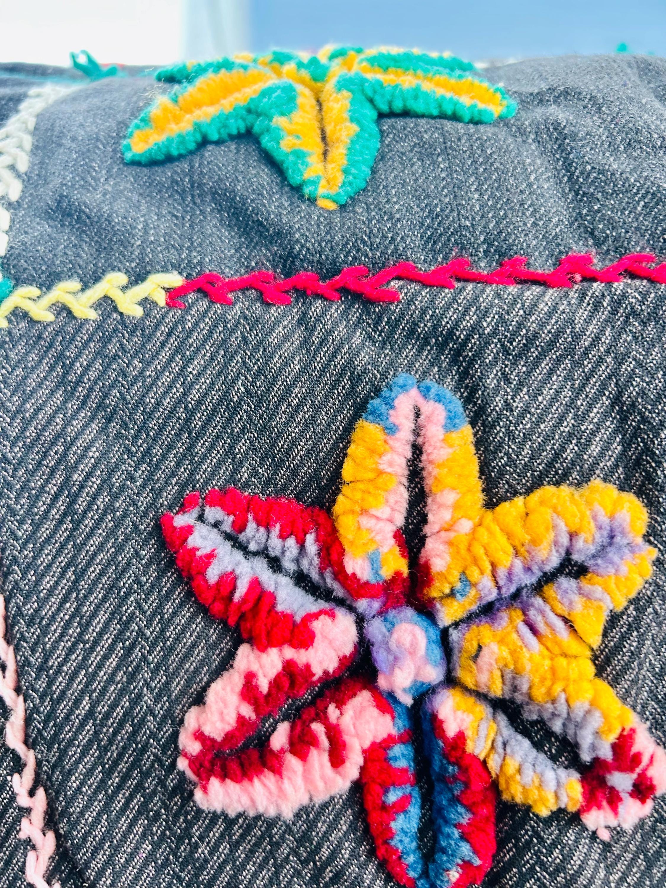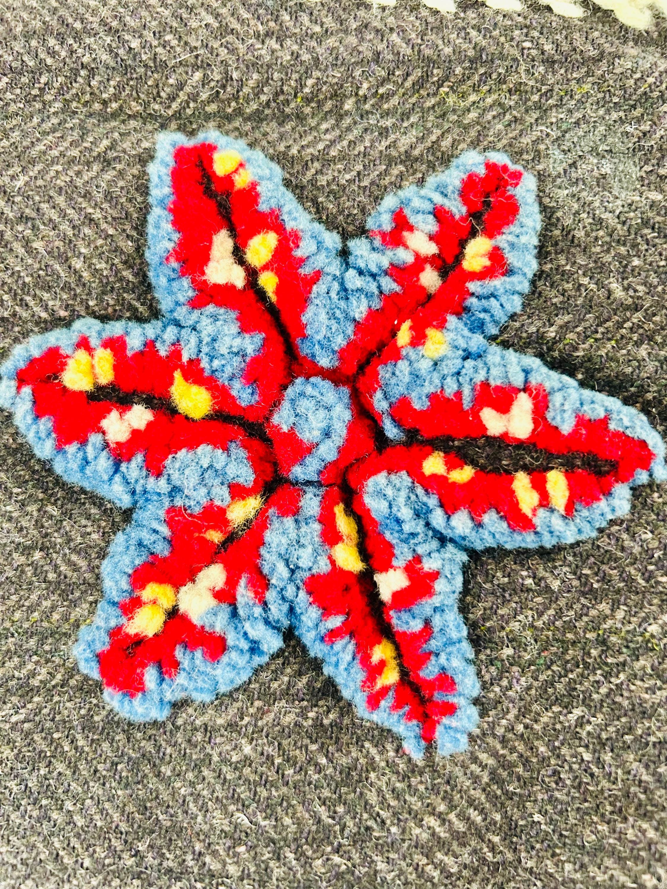 Details: • Dimensions: 68 inches x 70 inches • Materials: Wool, Cotton, Variegated Yarns • Weight: Substantial/Heavy (reflecting the density of the punch needle work) • The Technique: This is a rare, full-scale execution of Punch Needle Embroidery (Ignea). Each of the 110 stars is handcrafted with a dense, looped pile that creates a striking 3D topographical effect. FA010 - GQ