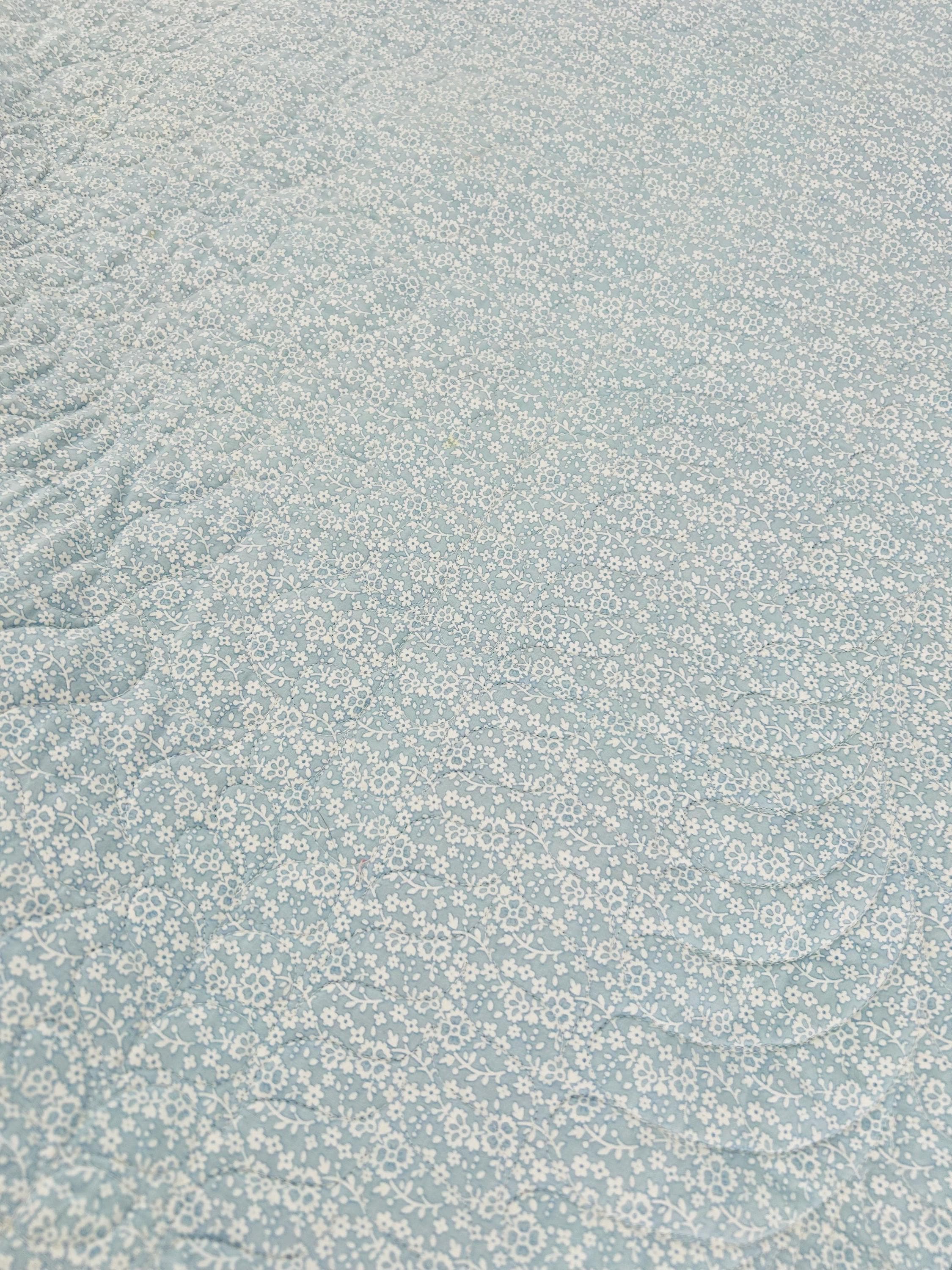 The back is a Robin's Egg blue floral and the batting is lightweight.