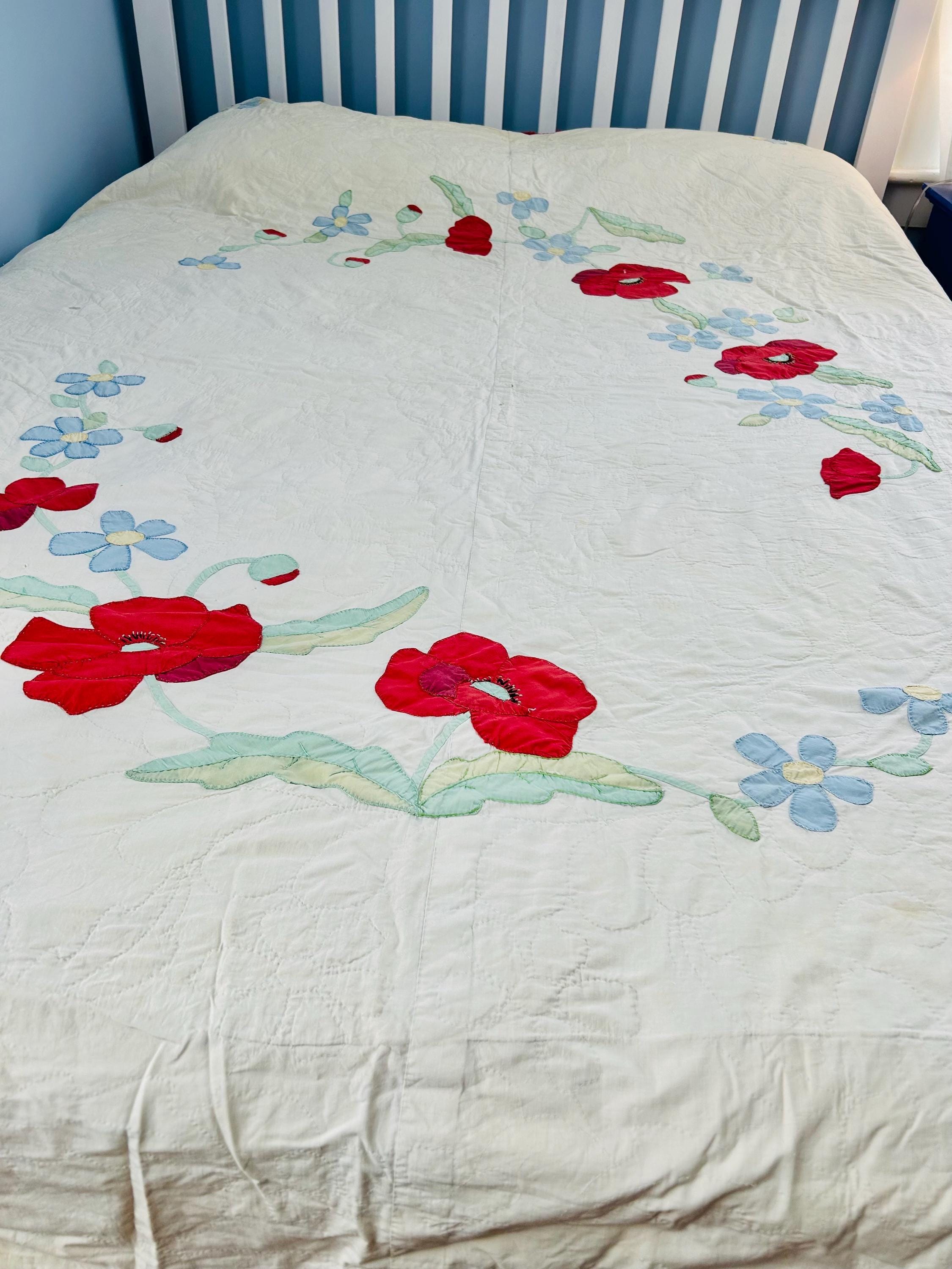 The quilt/coverlet comes from a smoke-free, pet-free home and is pictured on a queen-size bed.