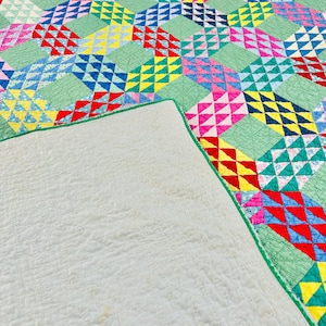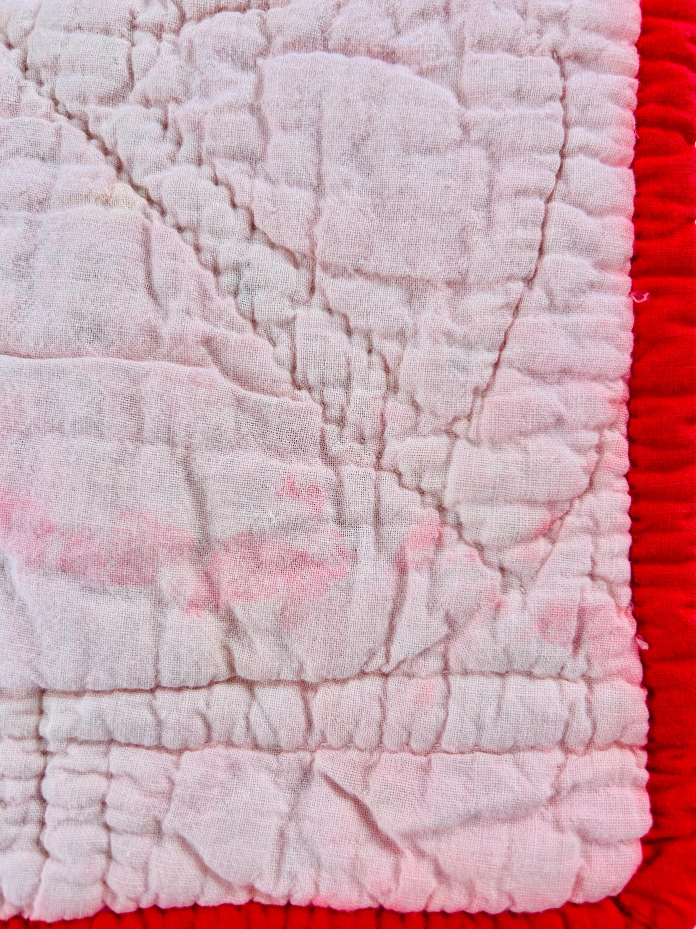 The quilt is in excellent vintage condition with visible pink dye transfer (likely from the red binding some time ago). See photos.