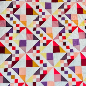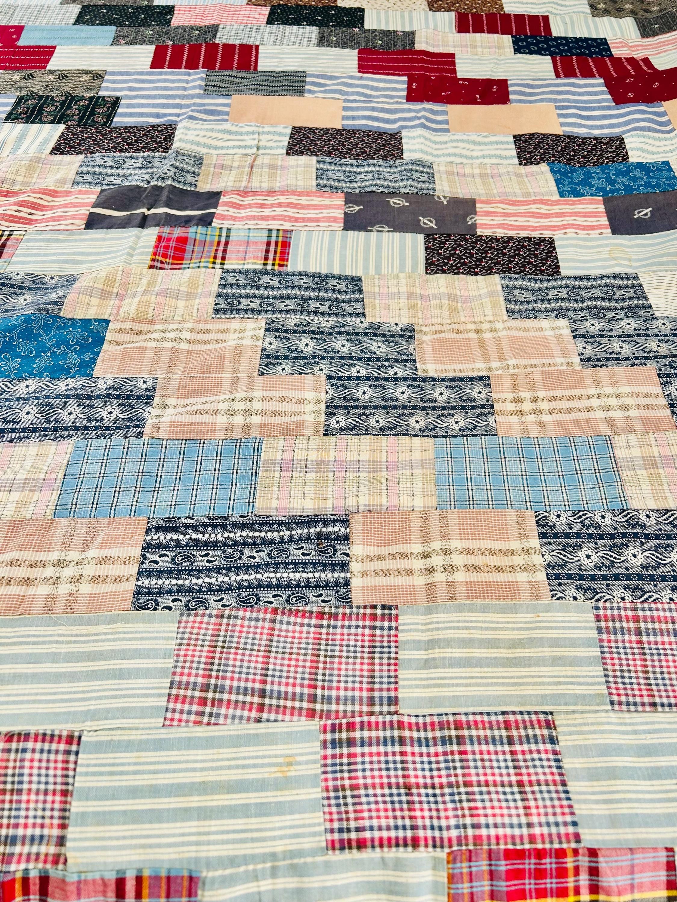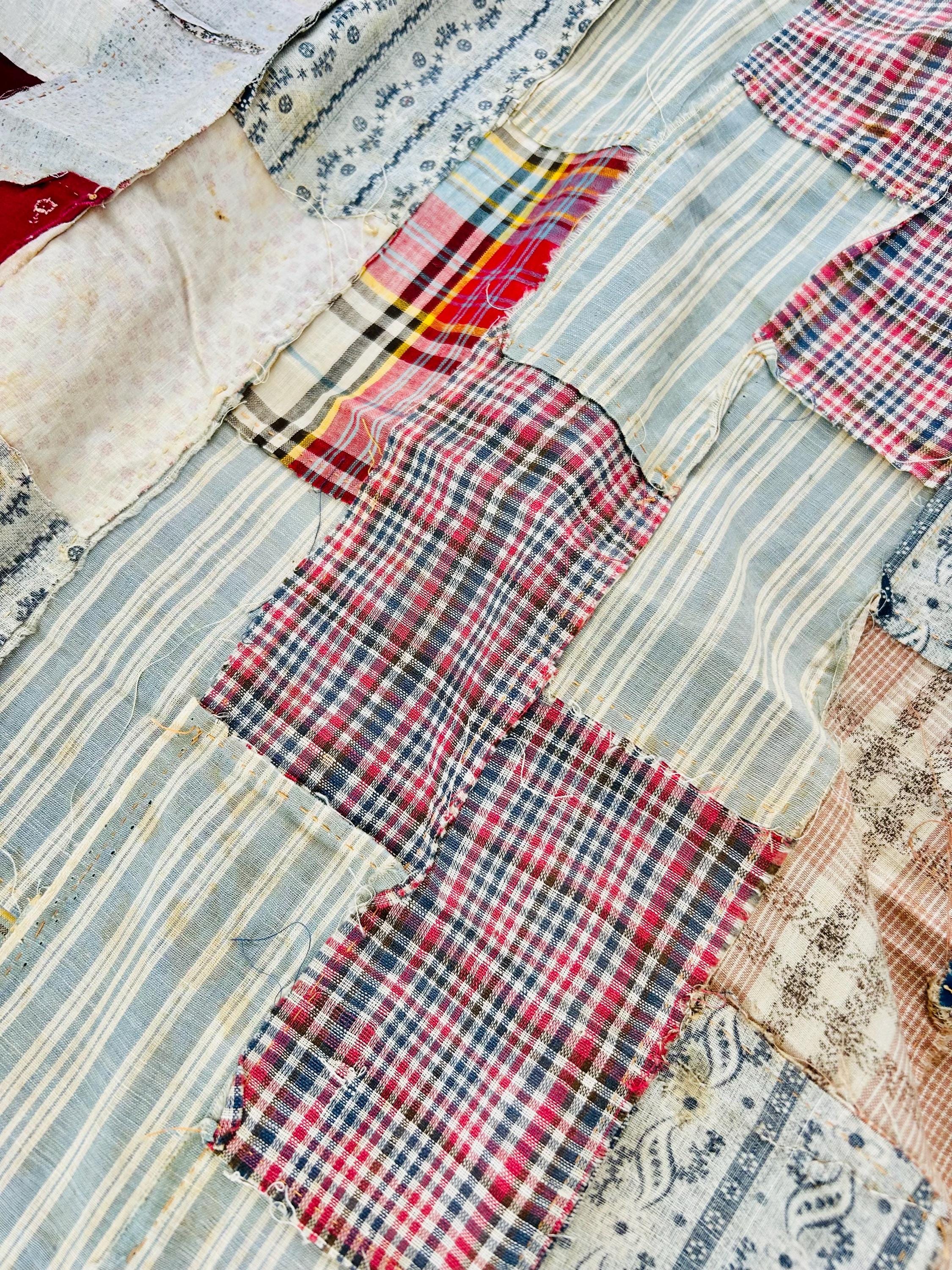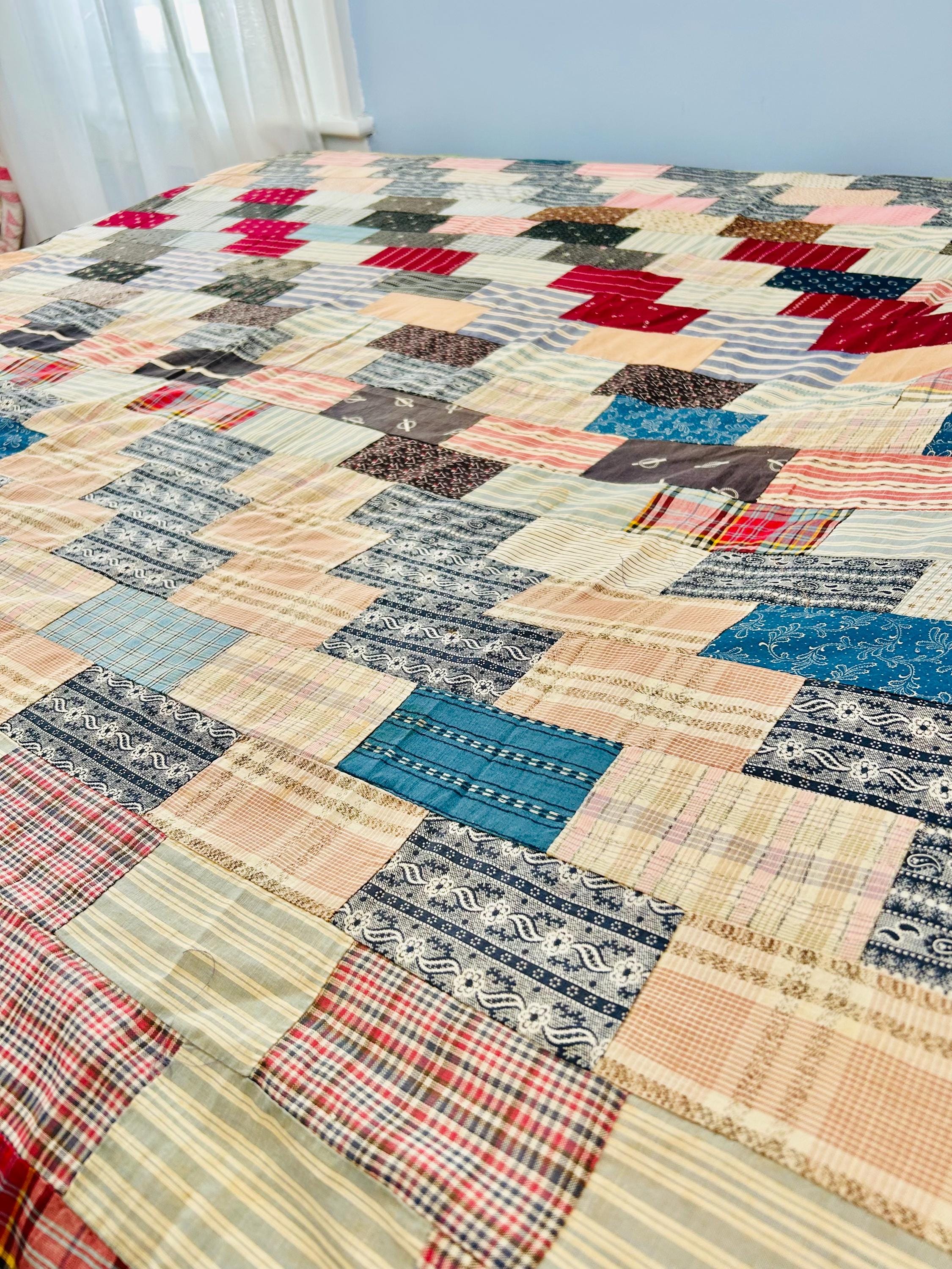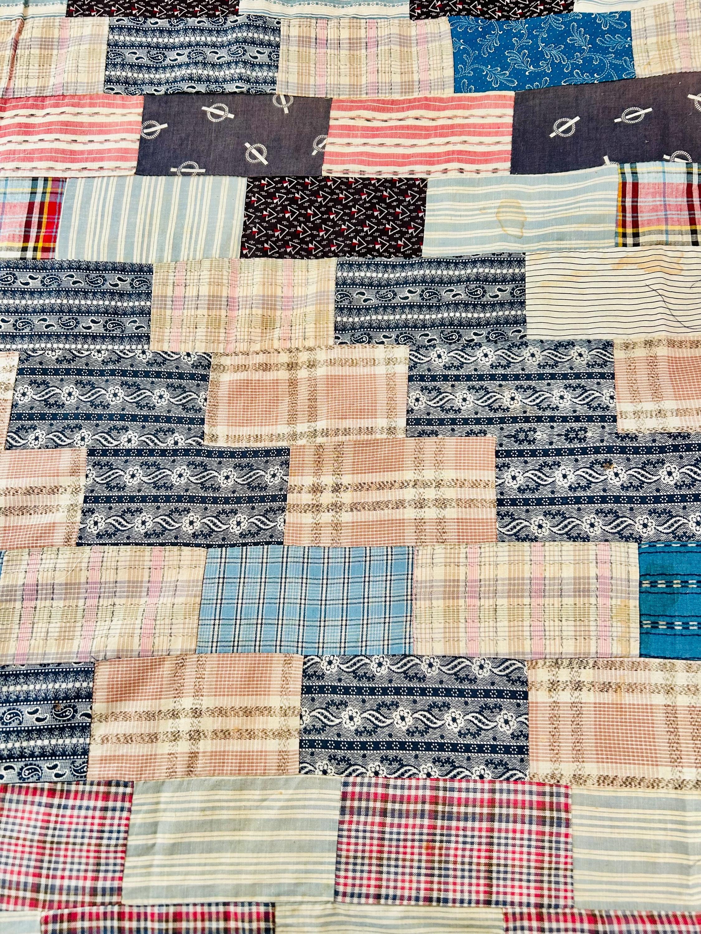 Details: • Entirely hand pieced • Visible hand basting stitches remain in places • Unquilted (quilt top only – no batting, no backing) • Cotton fabrics • Size: 80” x 100”