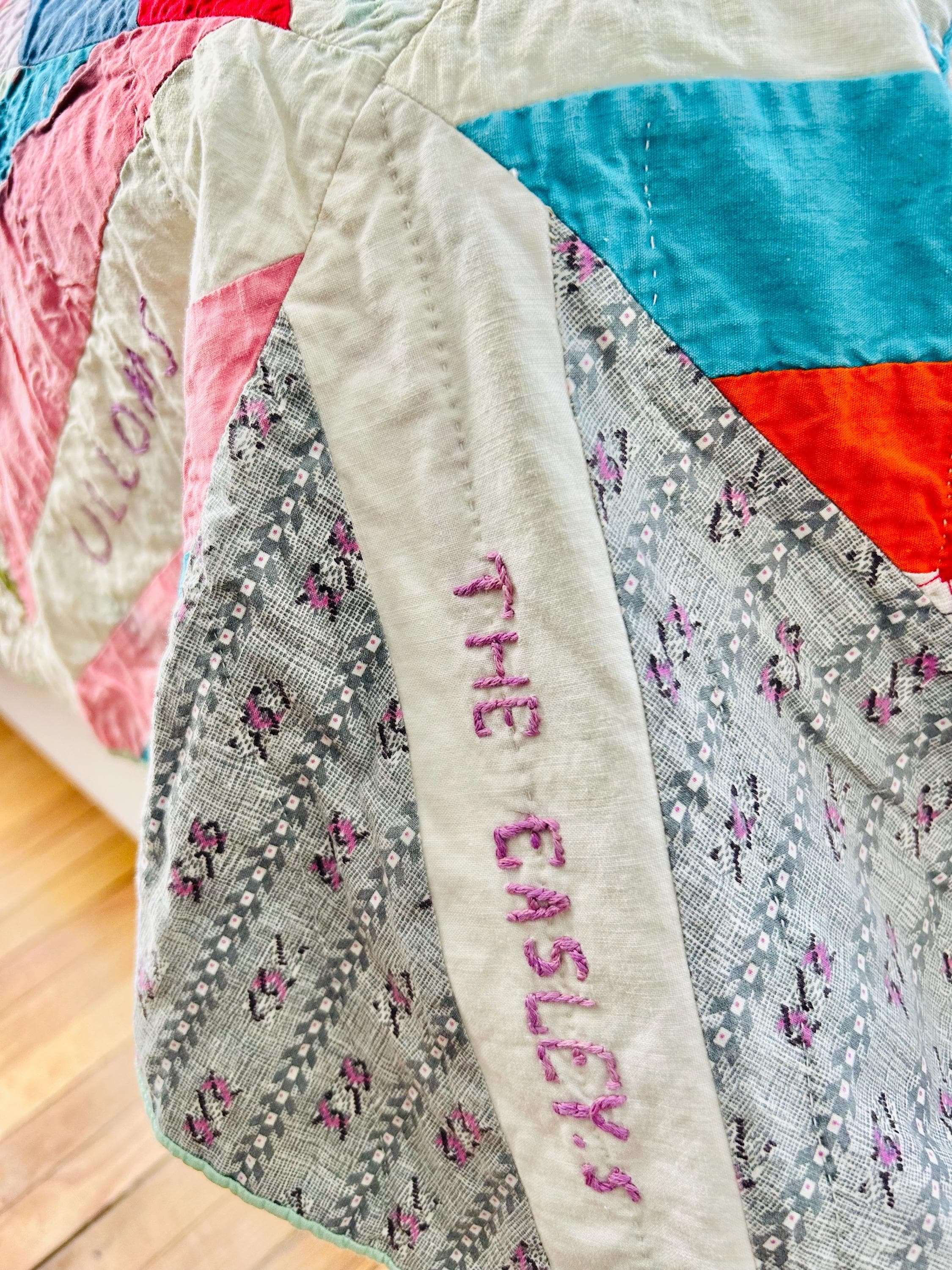 The quilt is in excellent vintage condition with bright colors and no condition issues noted. Please note that several of the names have been written but never embroidered. See photos.
