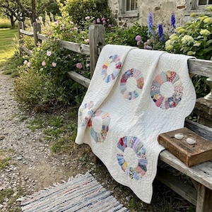 The back is white cotton that has been turned to the front and machine stitched to form the binding. The cotton batting is lightweight.