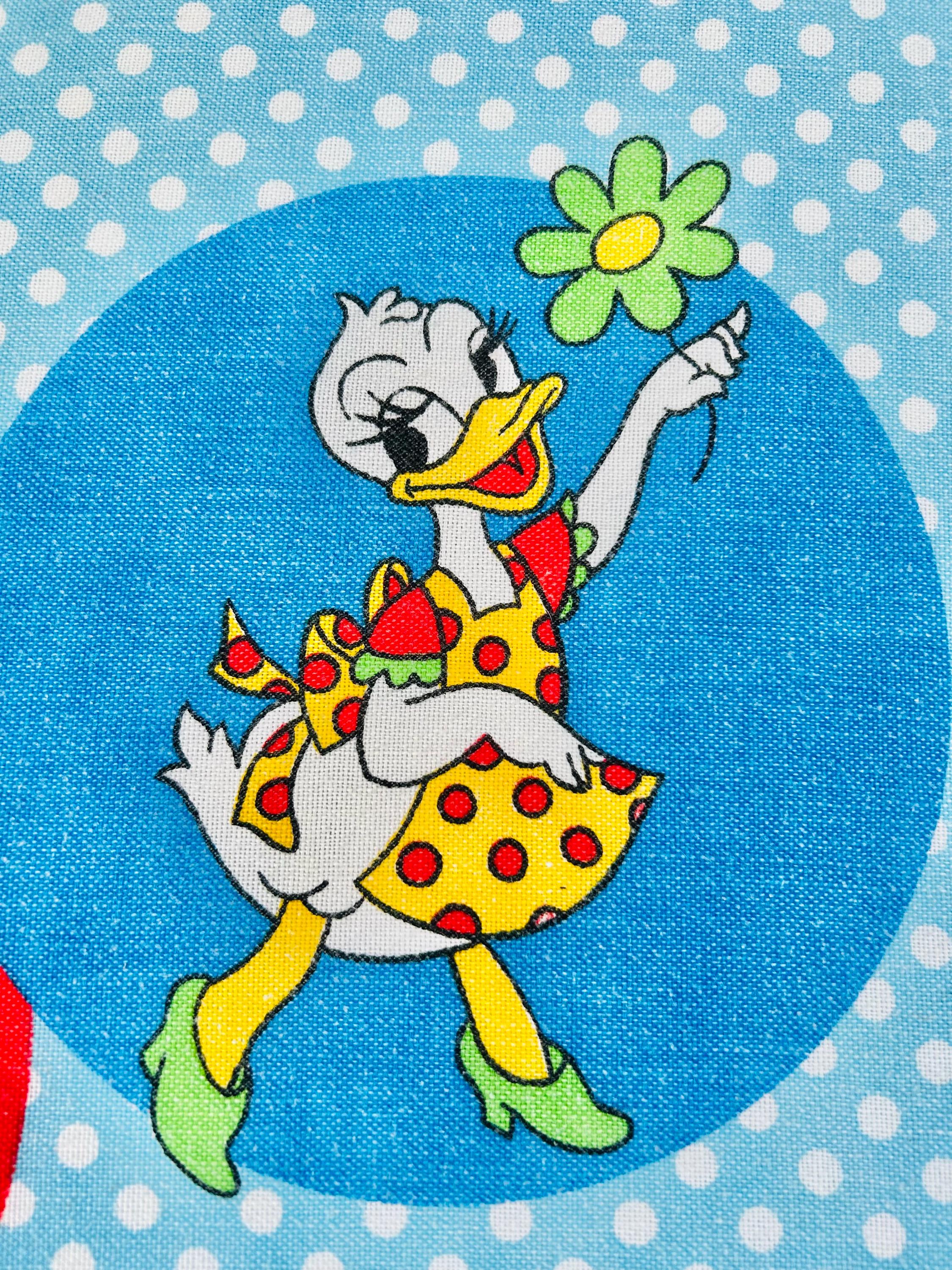 Made from a 50% polyester / 50% cotton blend, it was designed as a no-iron fashion spread, typical of the easy-care textiles popular in the 1970s. It is lightweight and perfect for use as a bedspread, wall hanging, playroom décor, or collectible Disney textile.