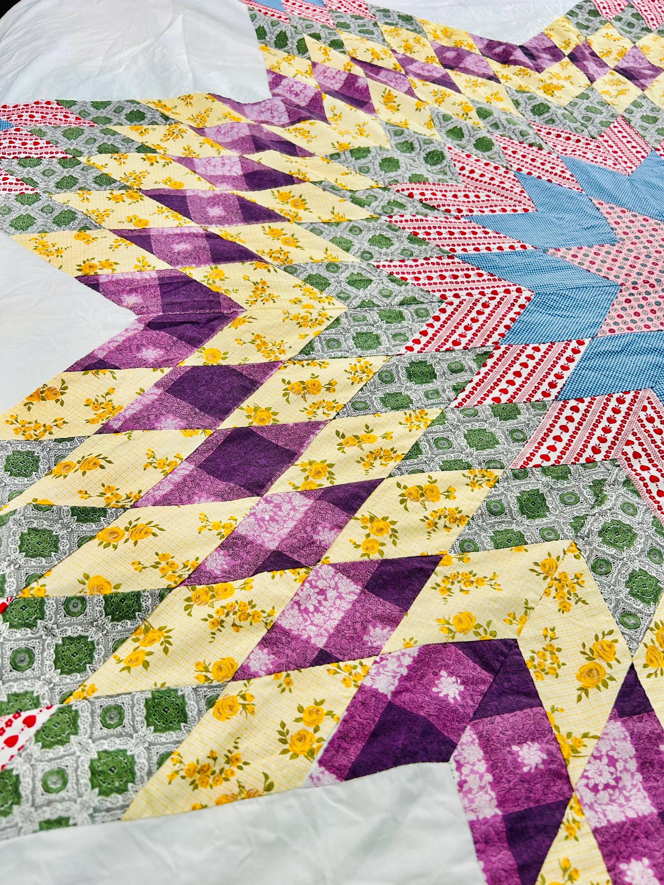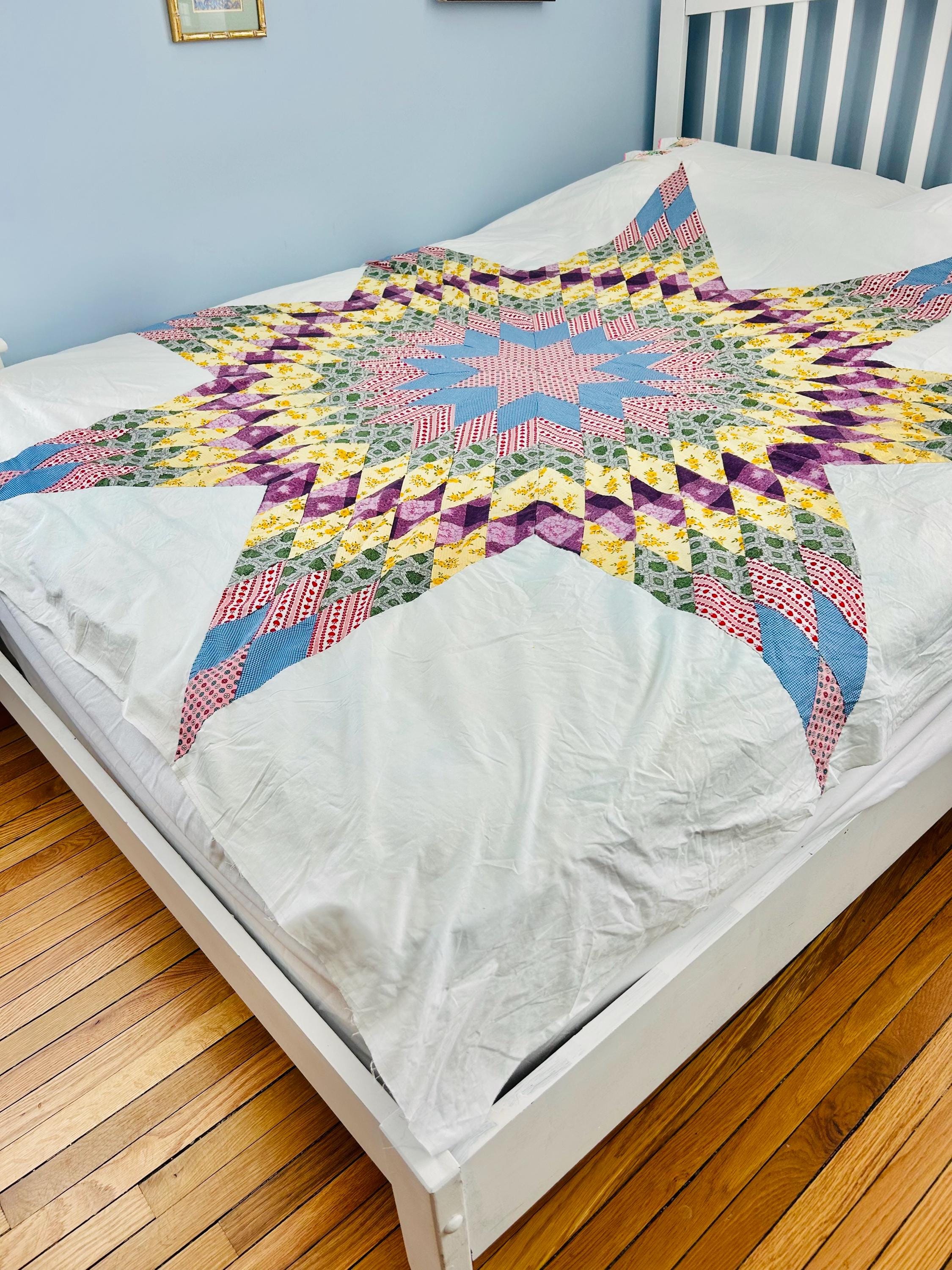The quilt is from a smoke-free, pet-free home and is pictured on a queen-size bed.