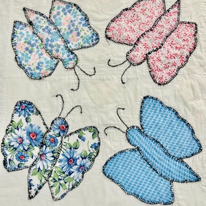 The quilt is from a smoke-free, pet-free home and is pictured on a queen-size bed.