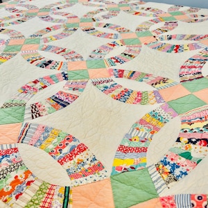 CONDITION: The quilt is in excellent vintage condition and is structurally sound with some age-related overall fading. PLEASE NOTE: streaks that may be seen in the photos are from sunlight streaming in the window - not a condition issue.