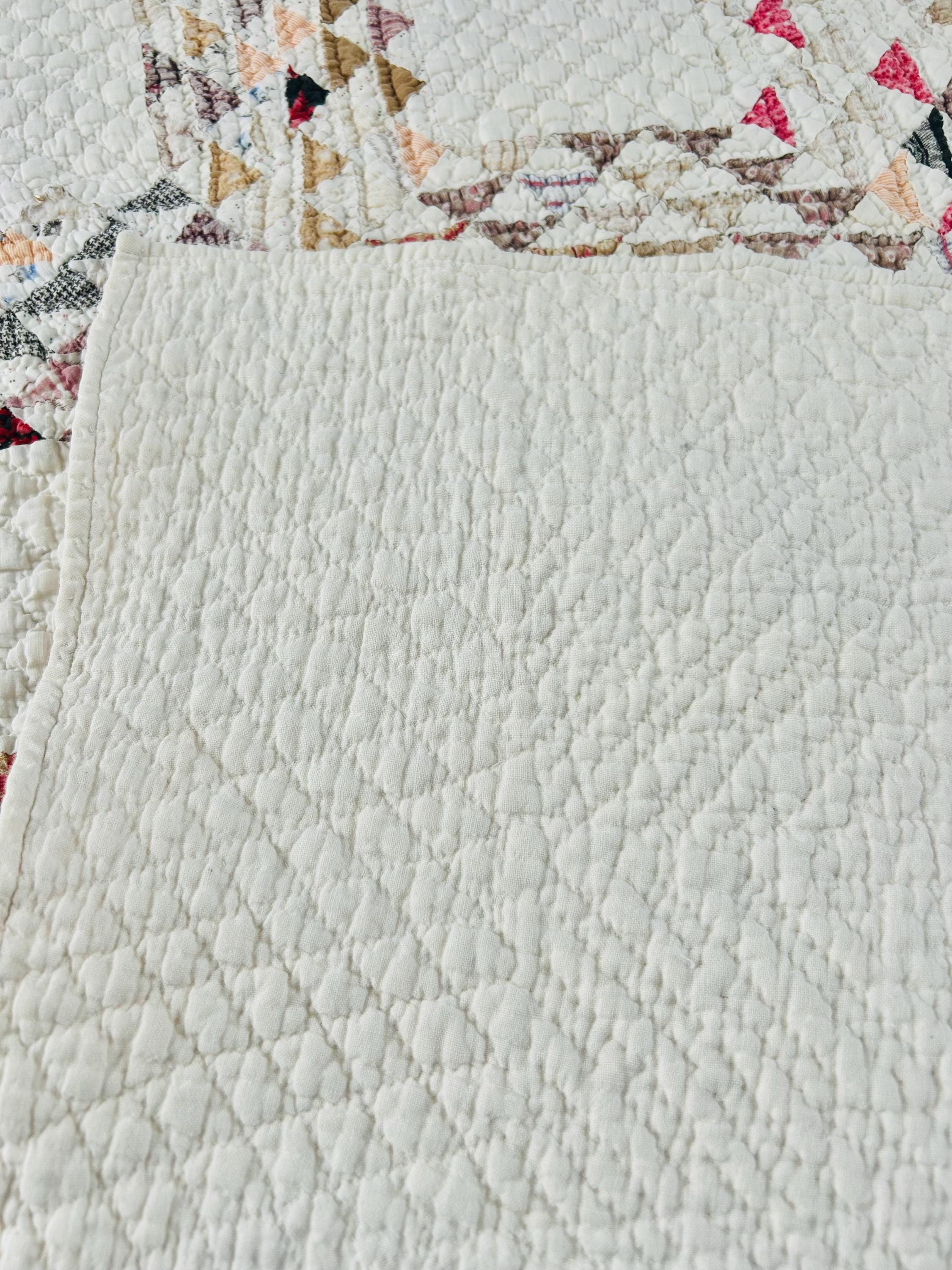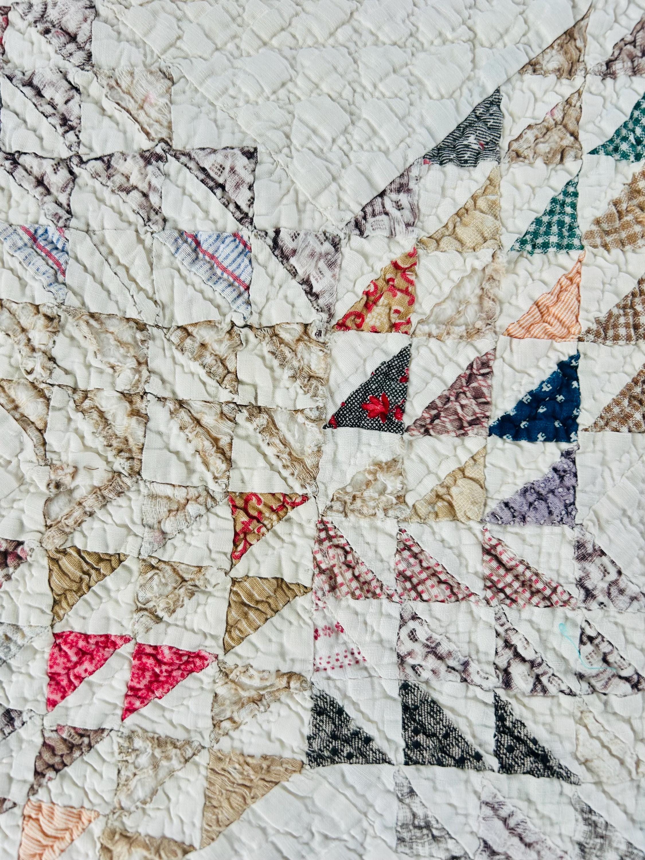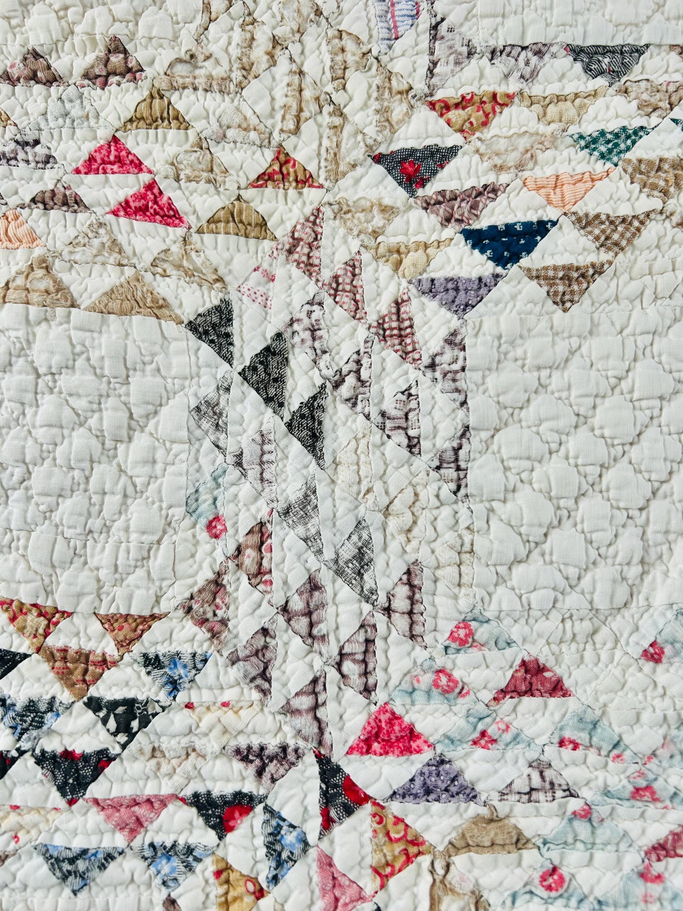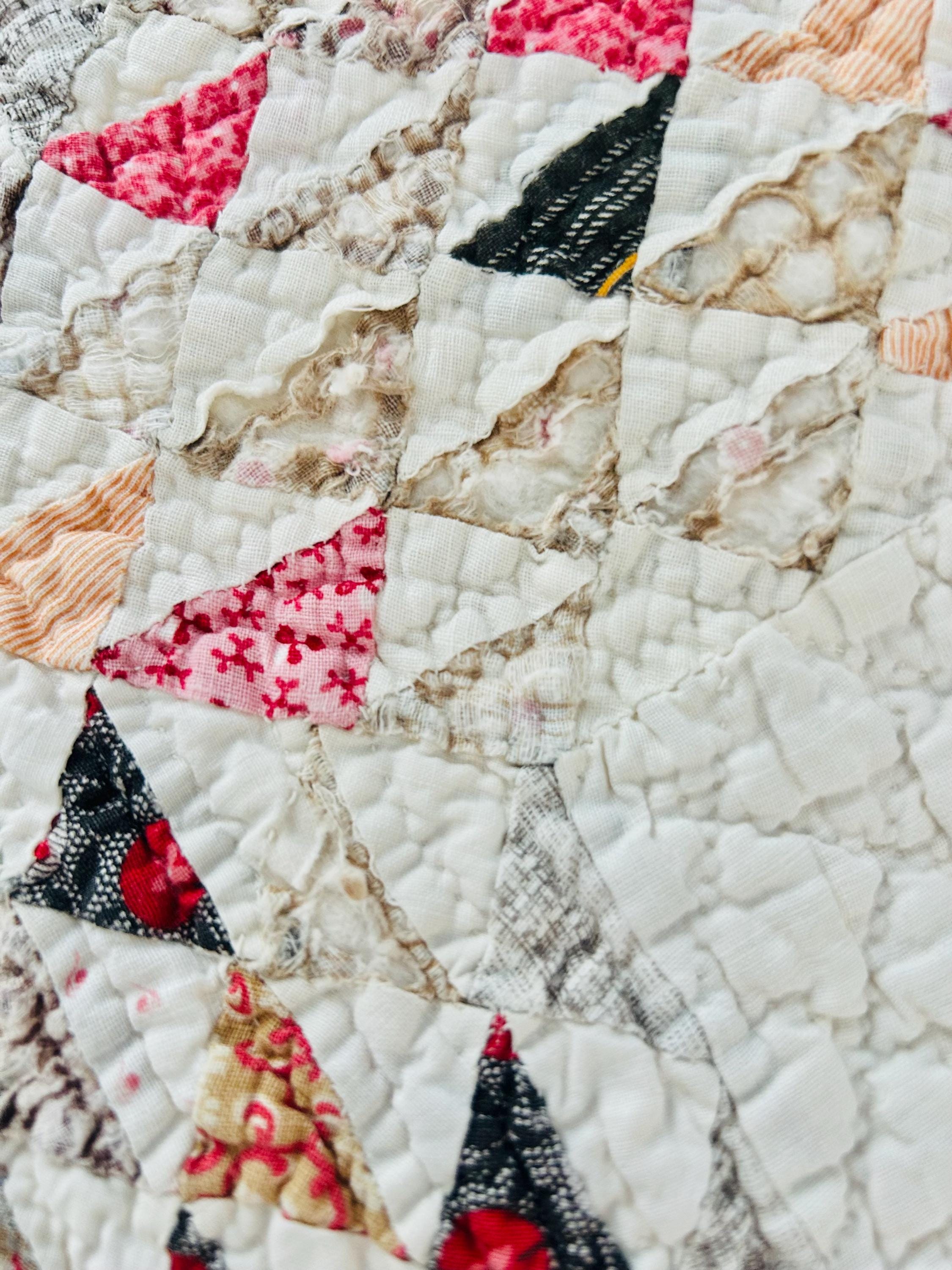 CONDITION: The quilt is in excellent antique condition with some fabric loss in some of the triangles (see photos) and some all-over age-related fading.