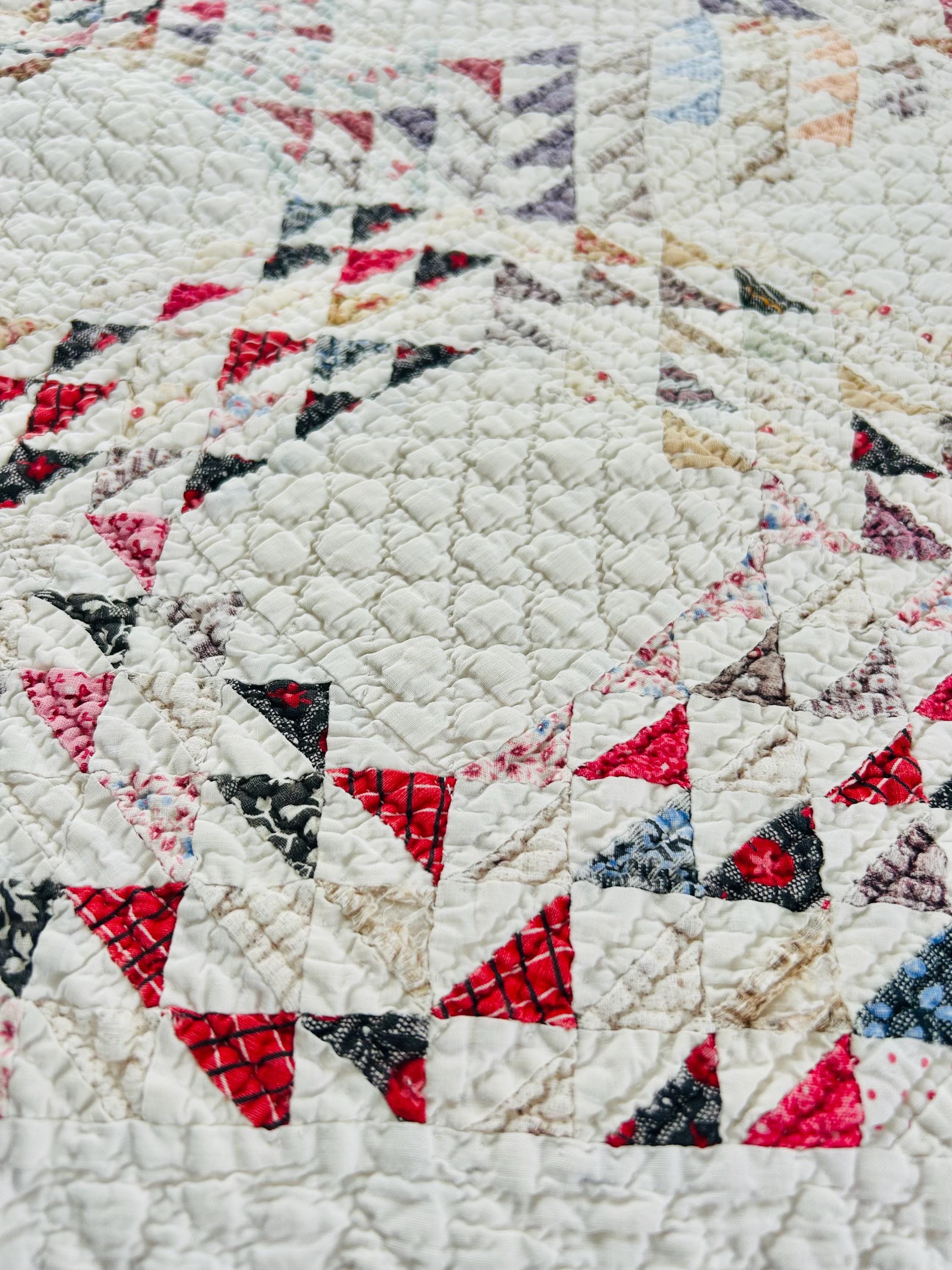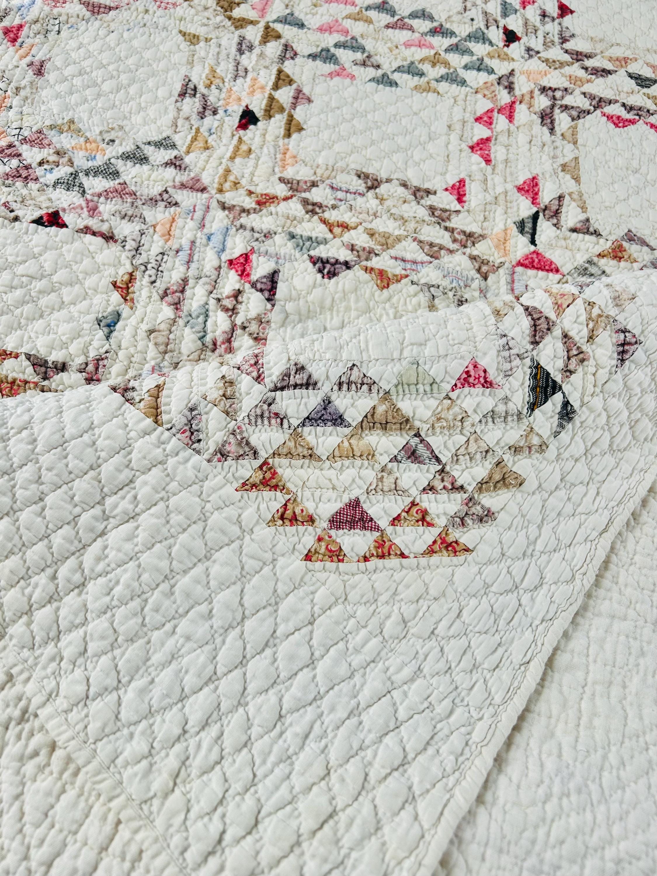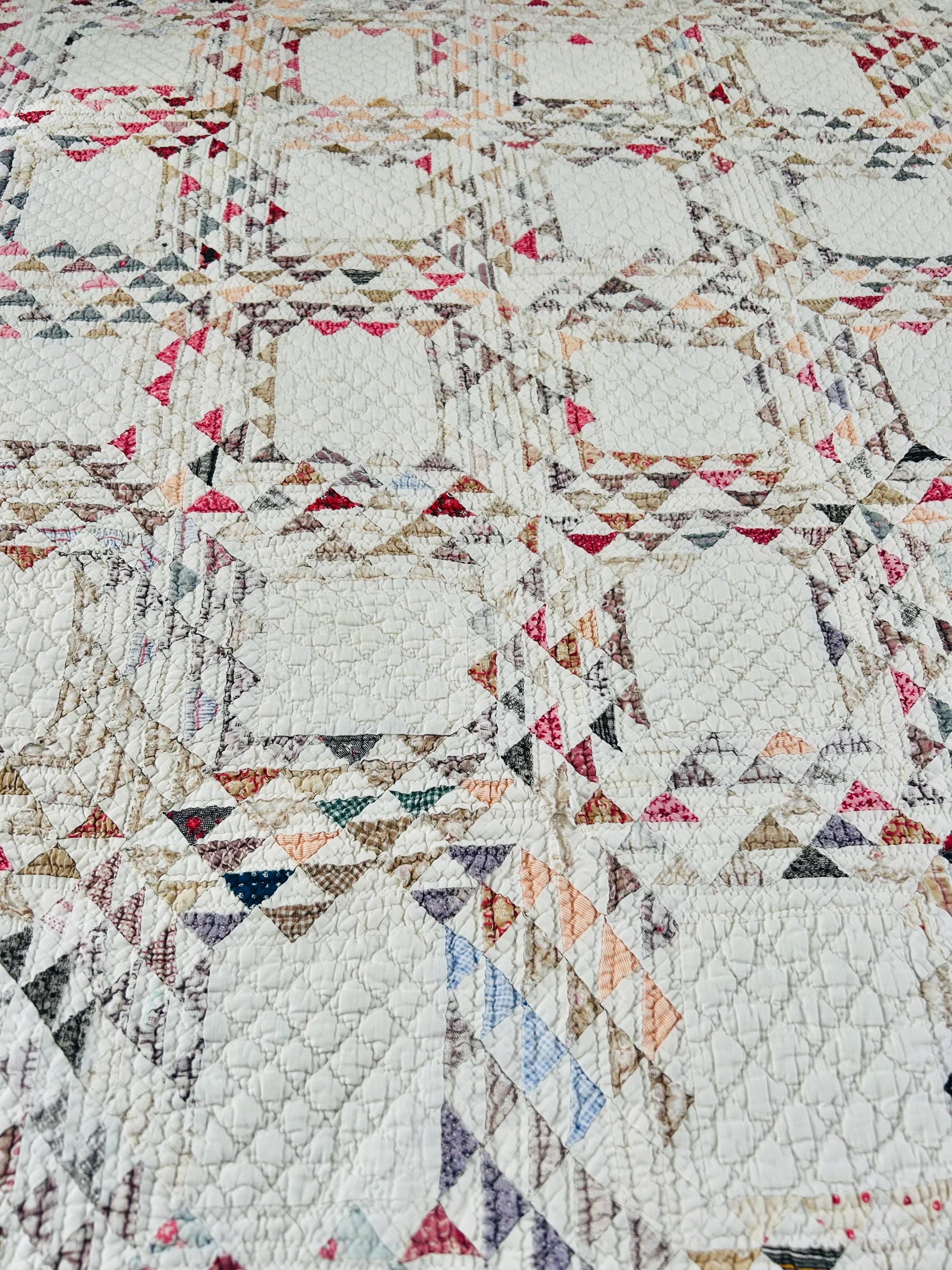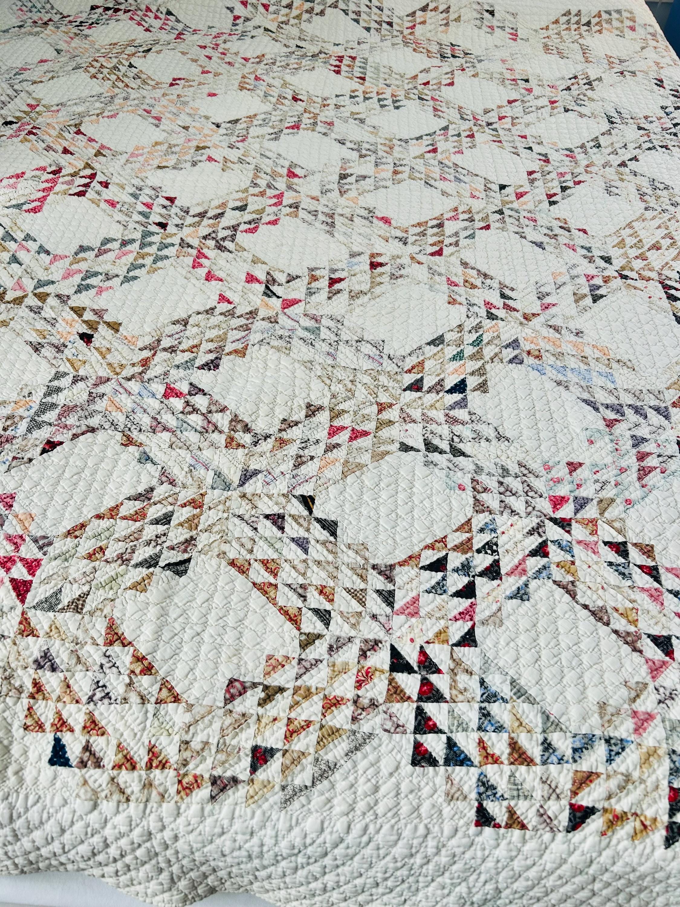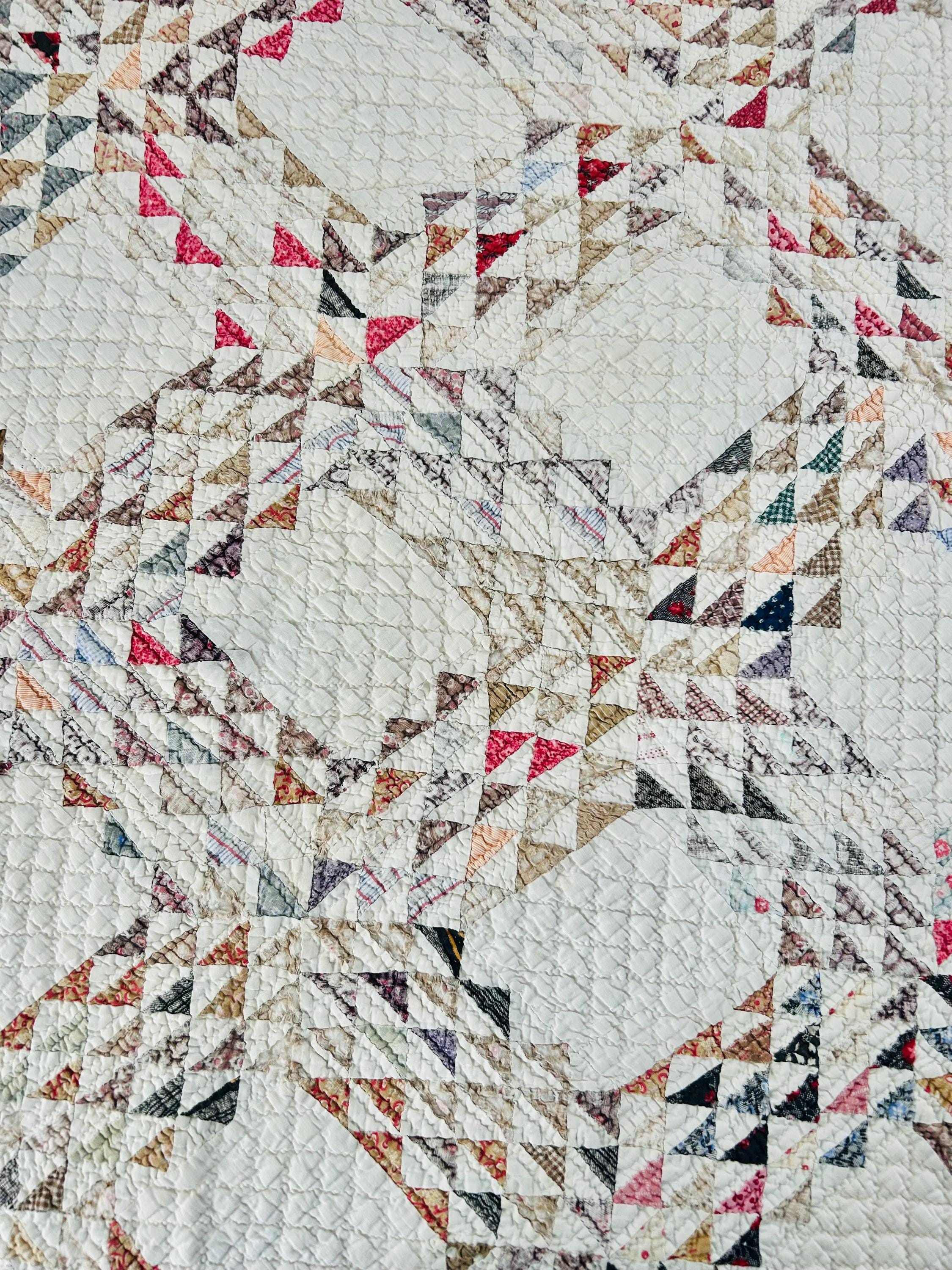 CONDITION: The quilt is in excellent antique condition with some fabric loss in some of the triangles (see photos) and some all-over age-related fading.