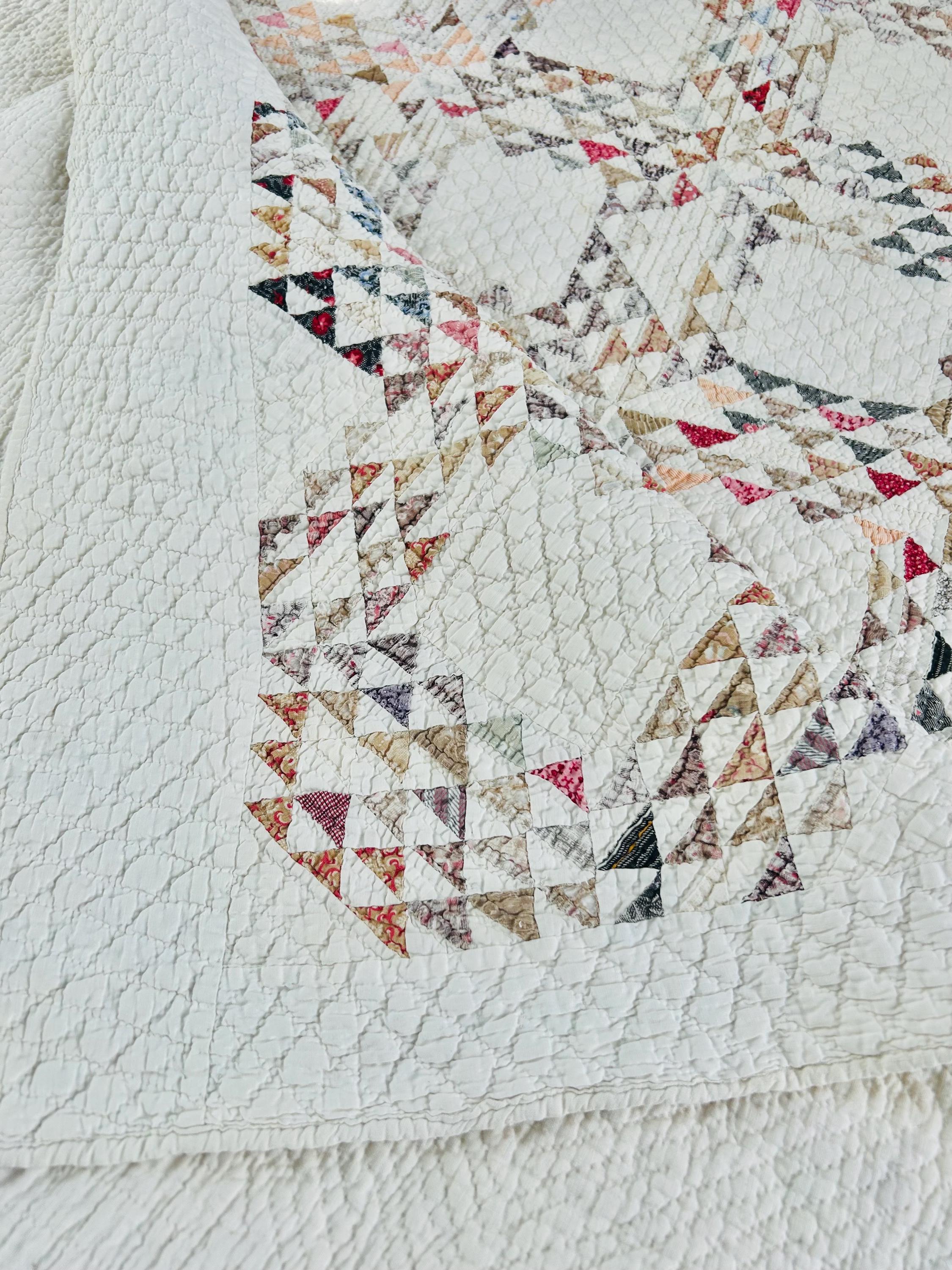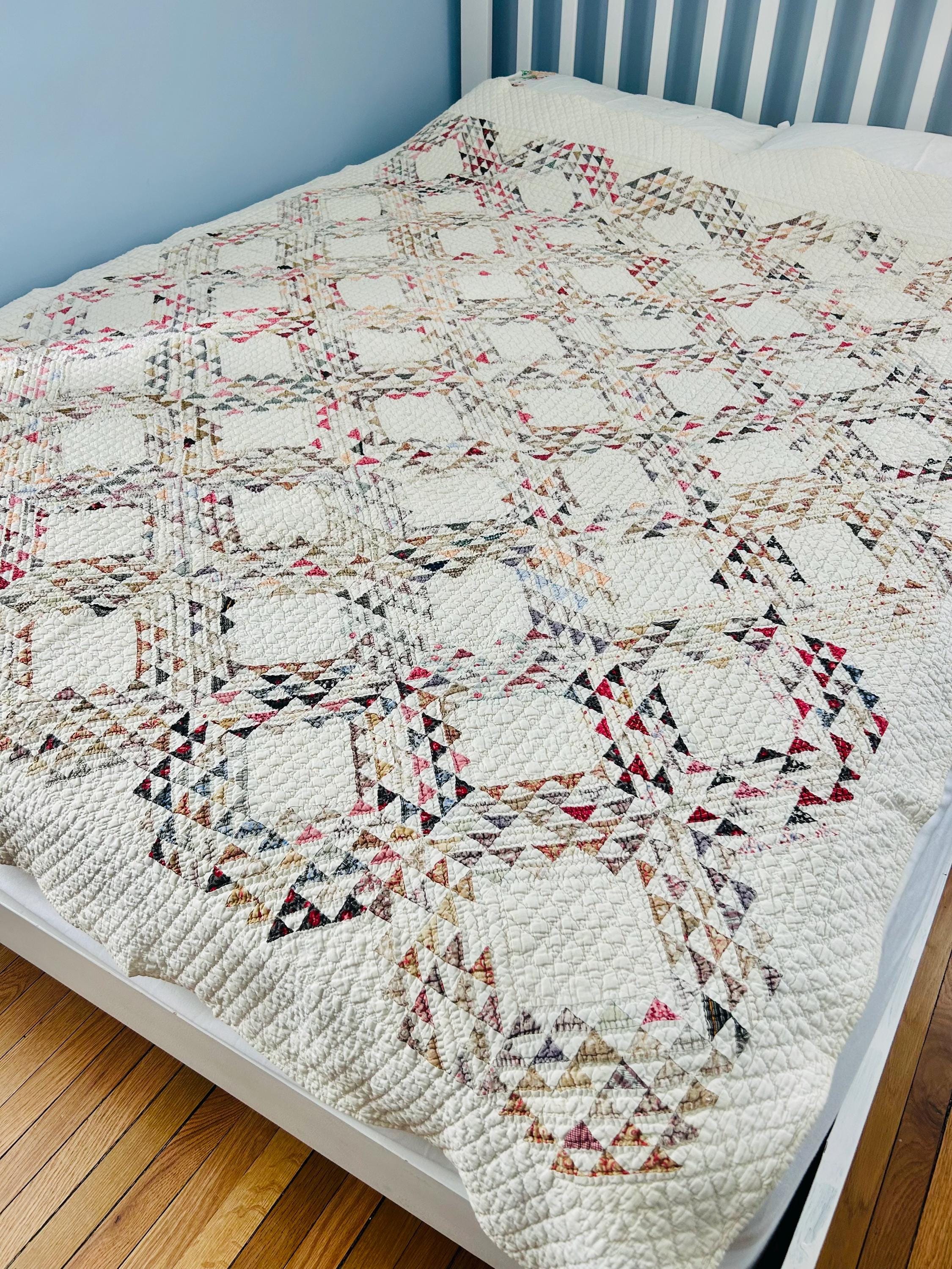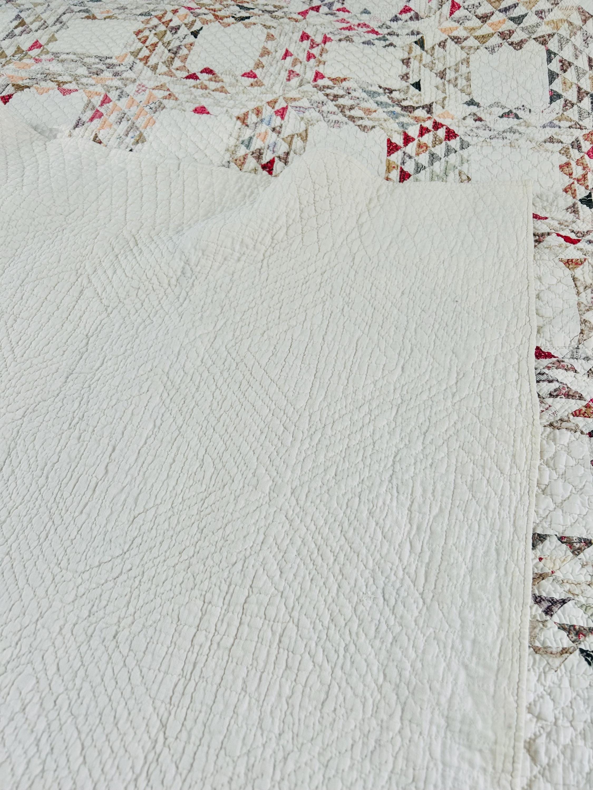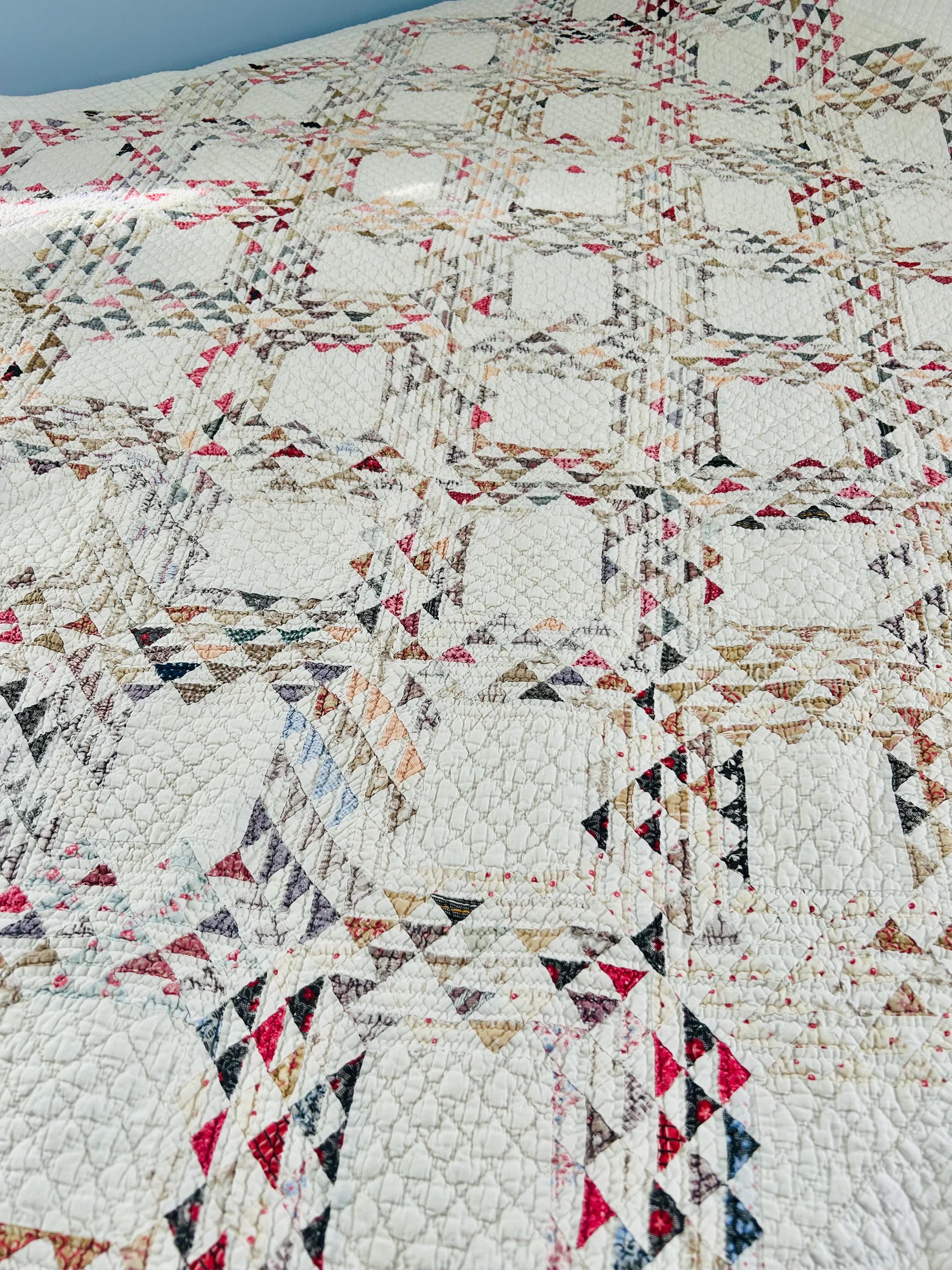CONDITION: The quilt is in excellent antique condition with some fabric loss in some of the triangles (see photos) and some all-over age-related fading.