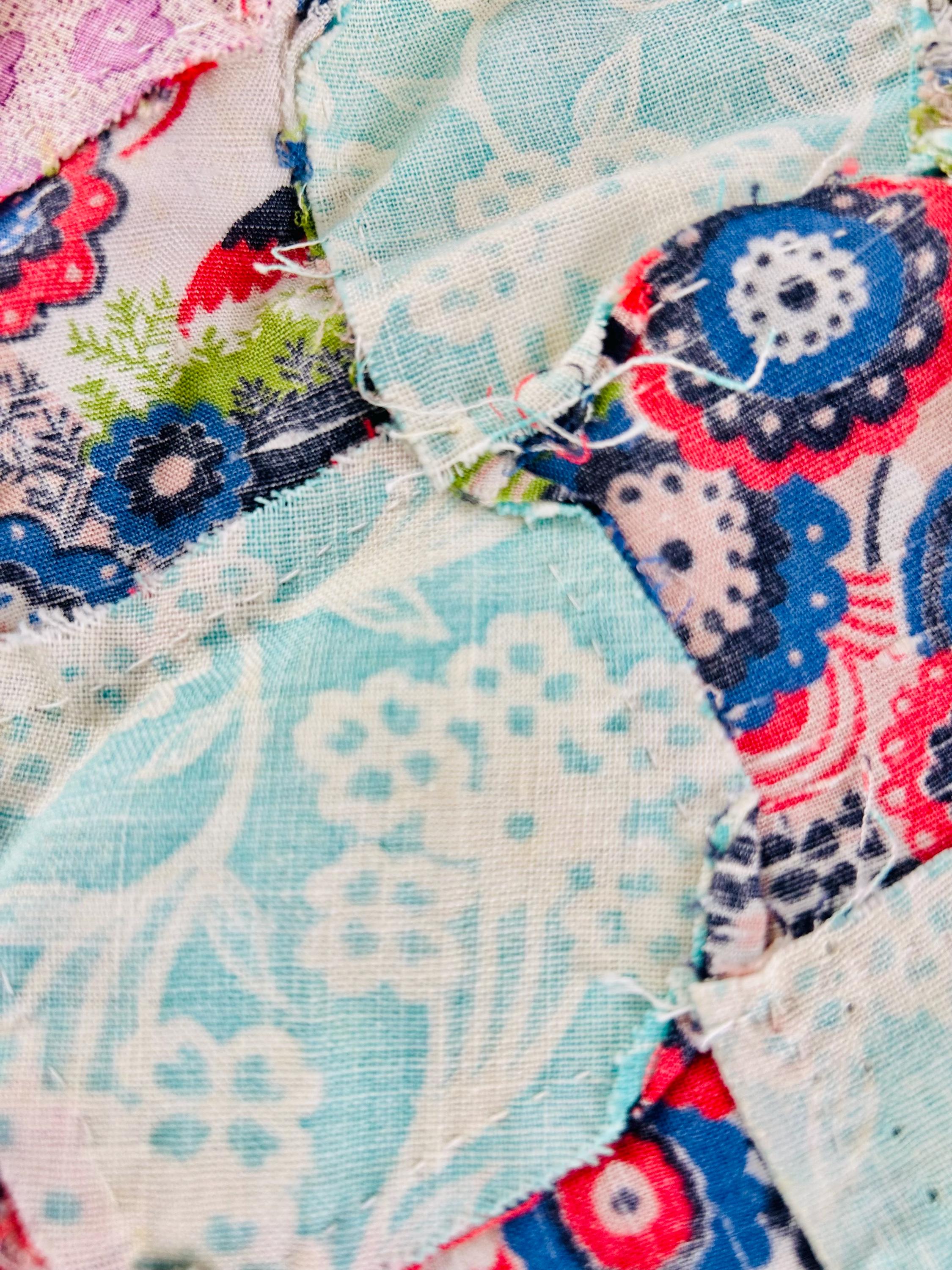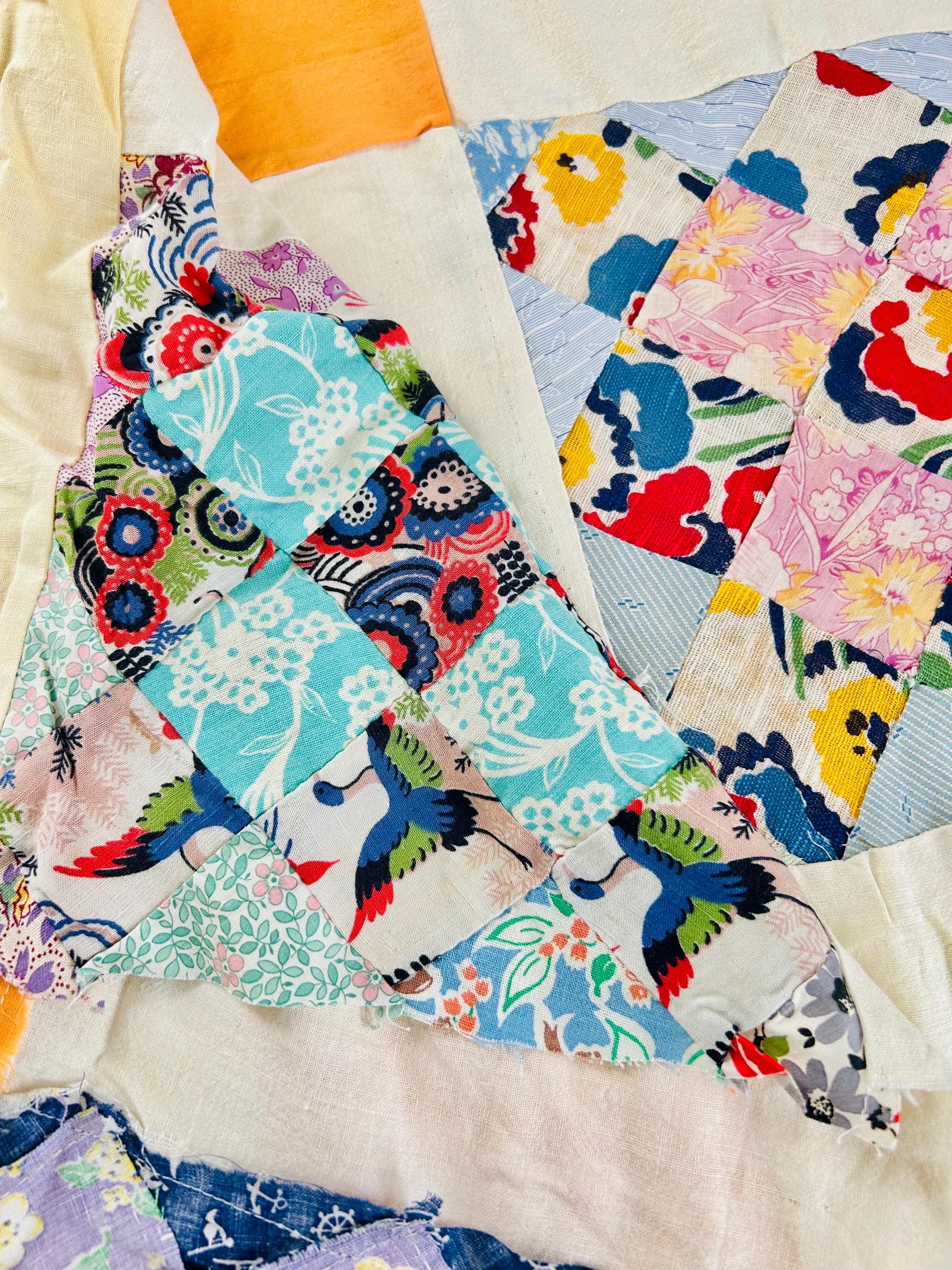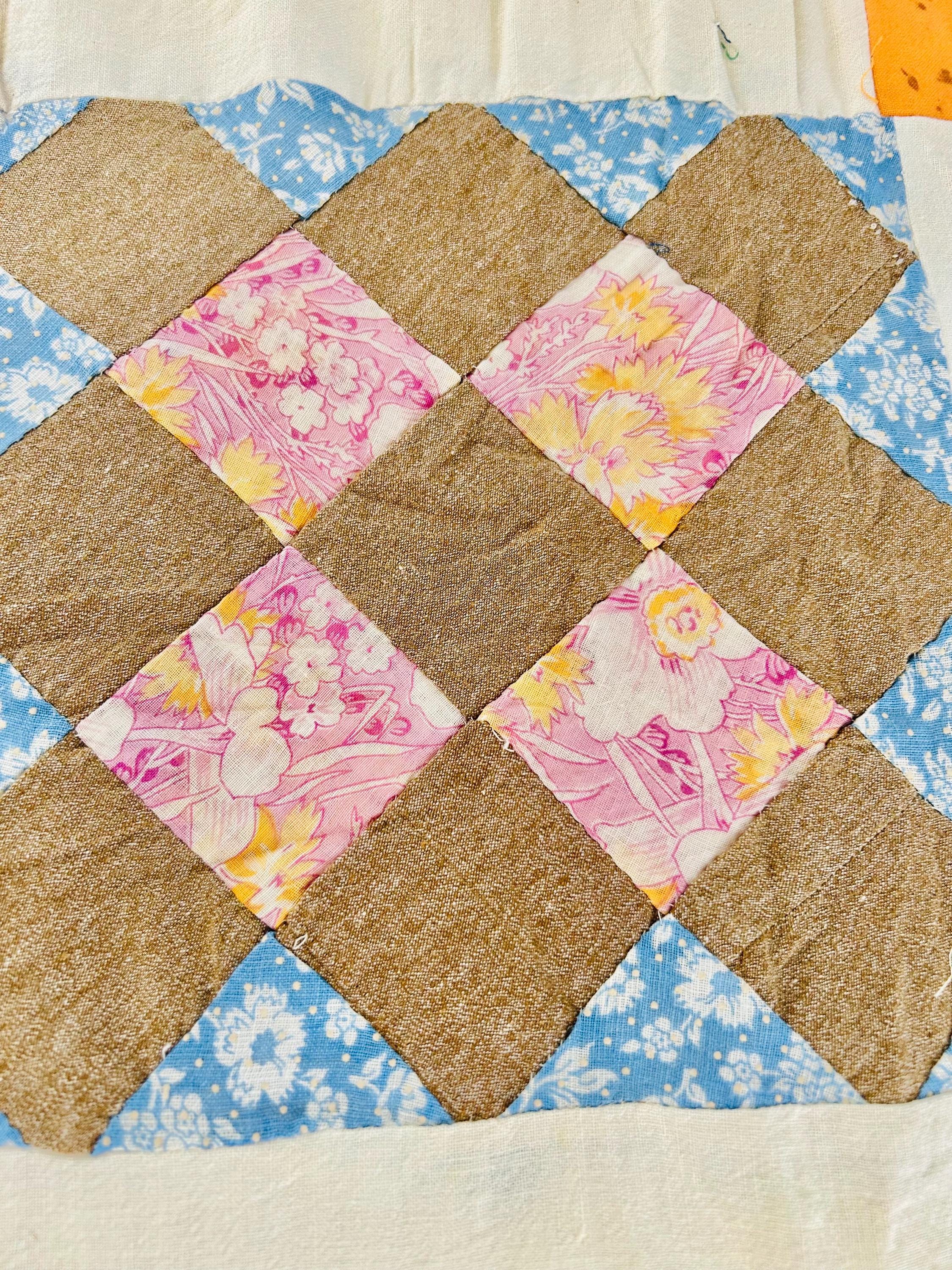 This vintage Depression-era feedsack quilt top in Nine-Patch Variation pattern beautifully captures the resourcefulness and creativity of 1930s–1940s quiltmakers.