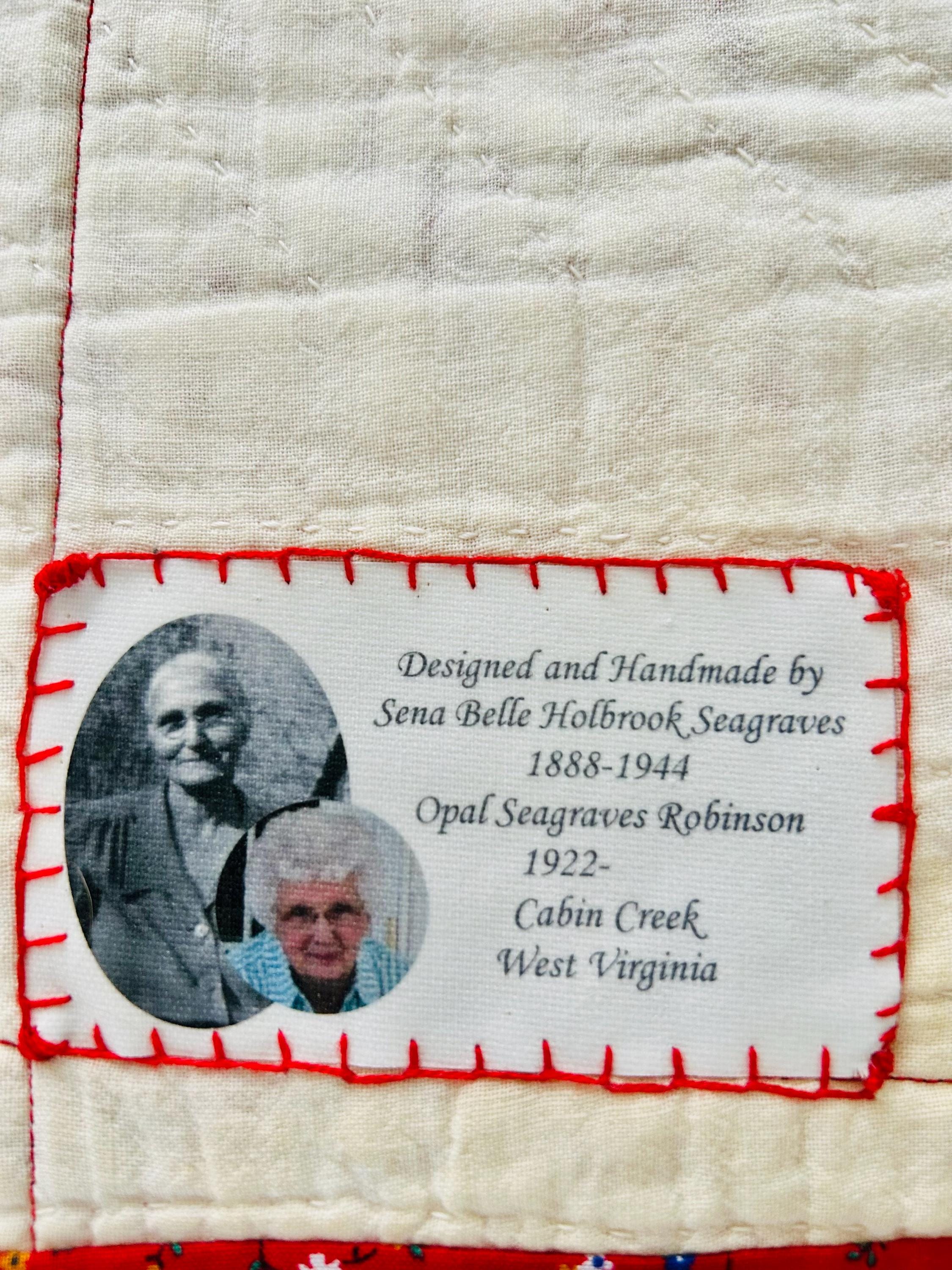 This lovely LeMoyne Star Quilt, circa 1930-1940s, was a multi-generational project of Sena Belle Holbrook Seagraves (1888-1944) and her daughter, Opal Seagraves Robinson (1922-2016) who lived in Cabin Creek, West Virginia when the quilt was made, according to a tag (with photos) attached to the back of the quilt. The family later moved to Tipp City, Ohio.