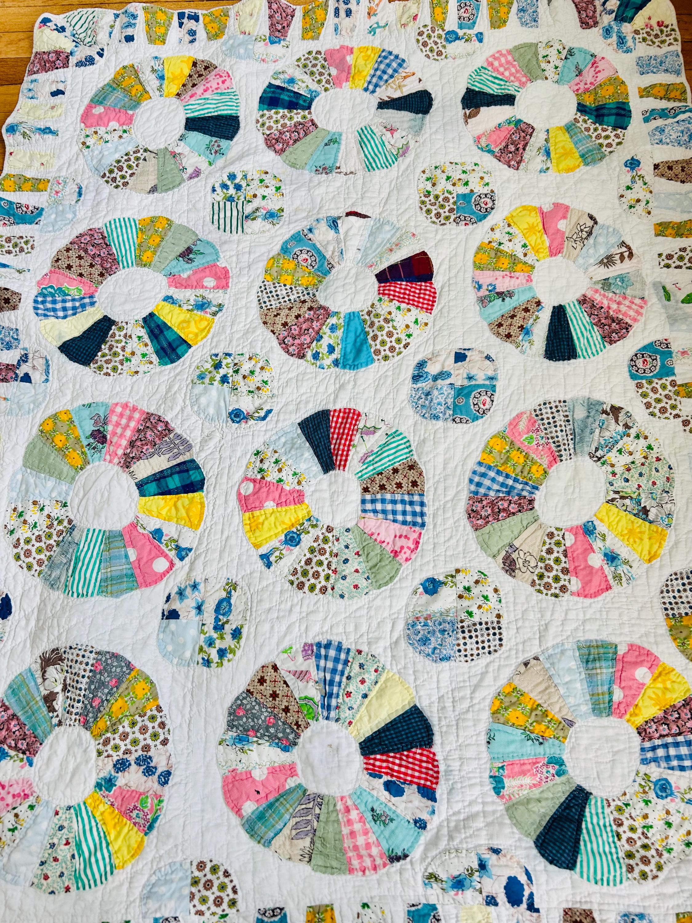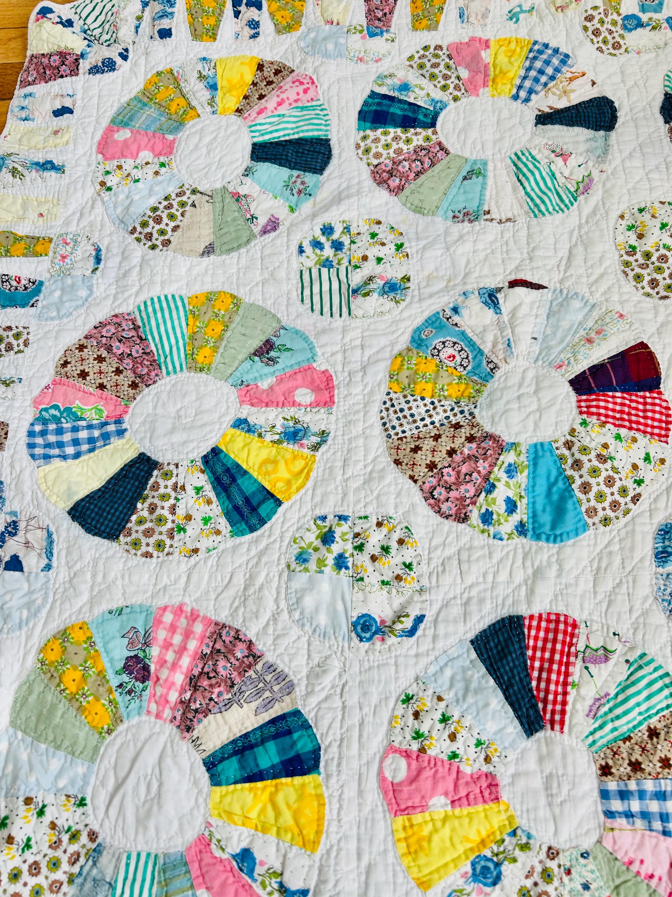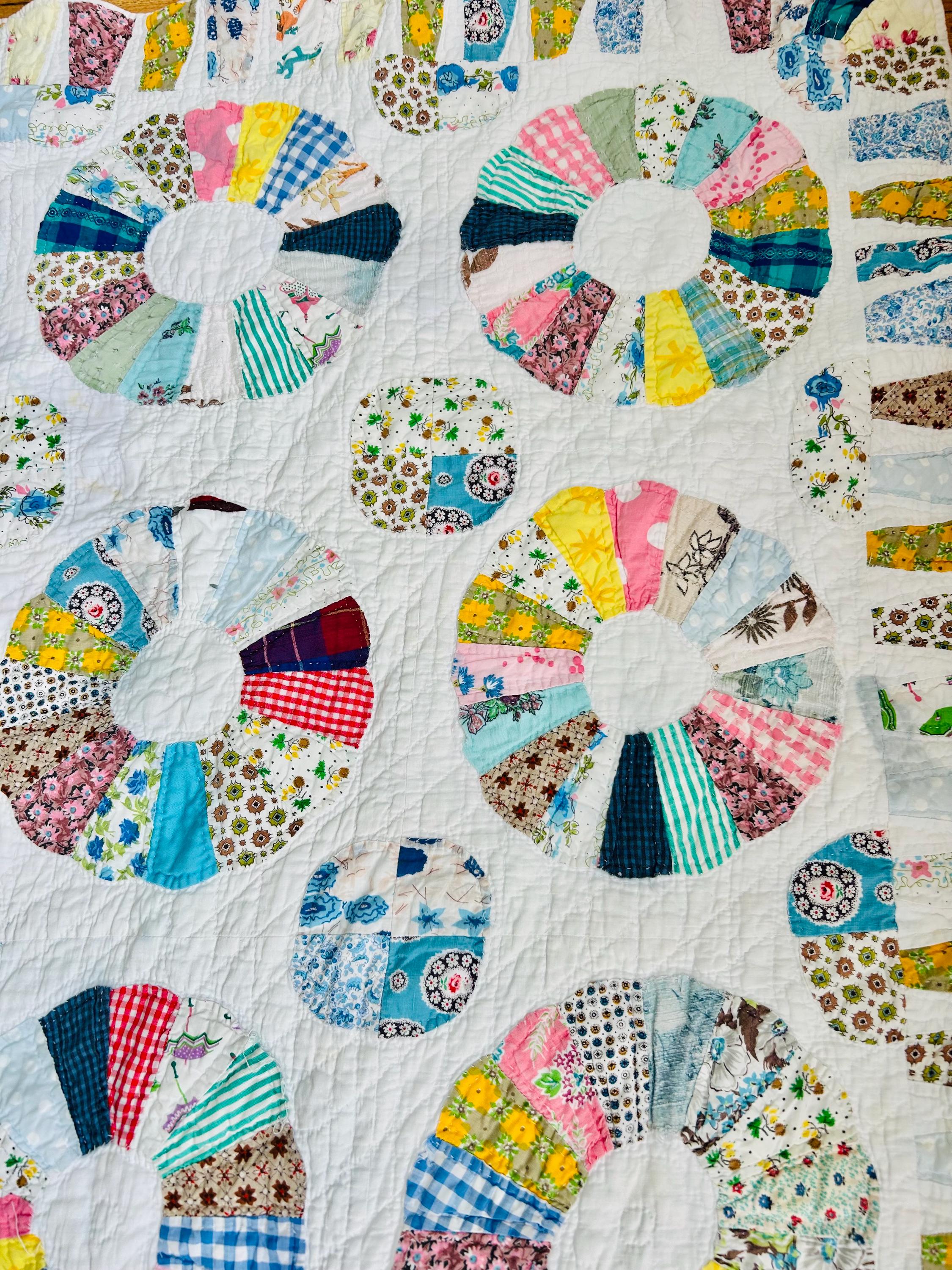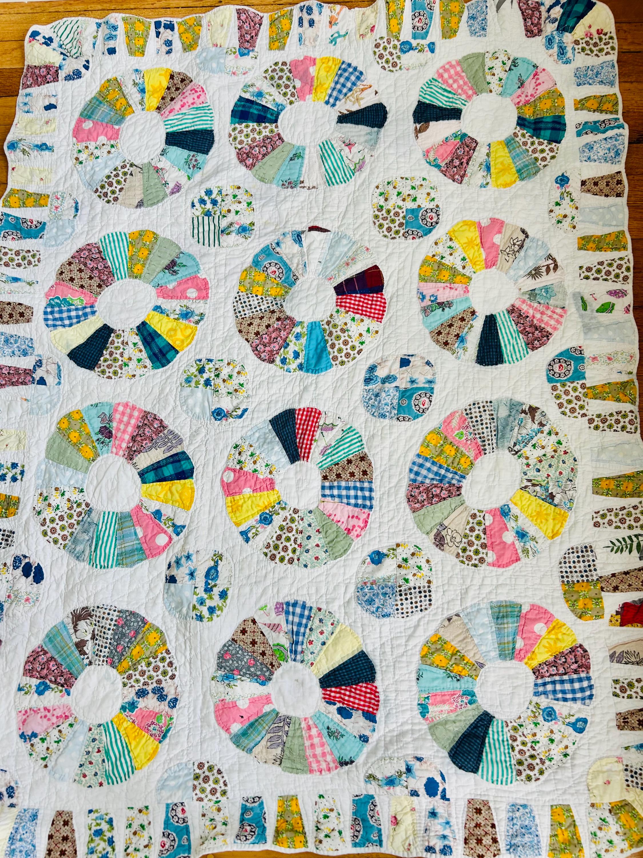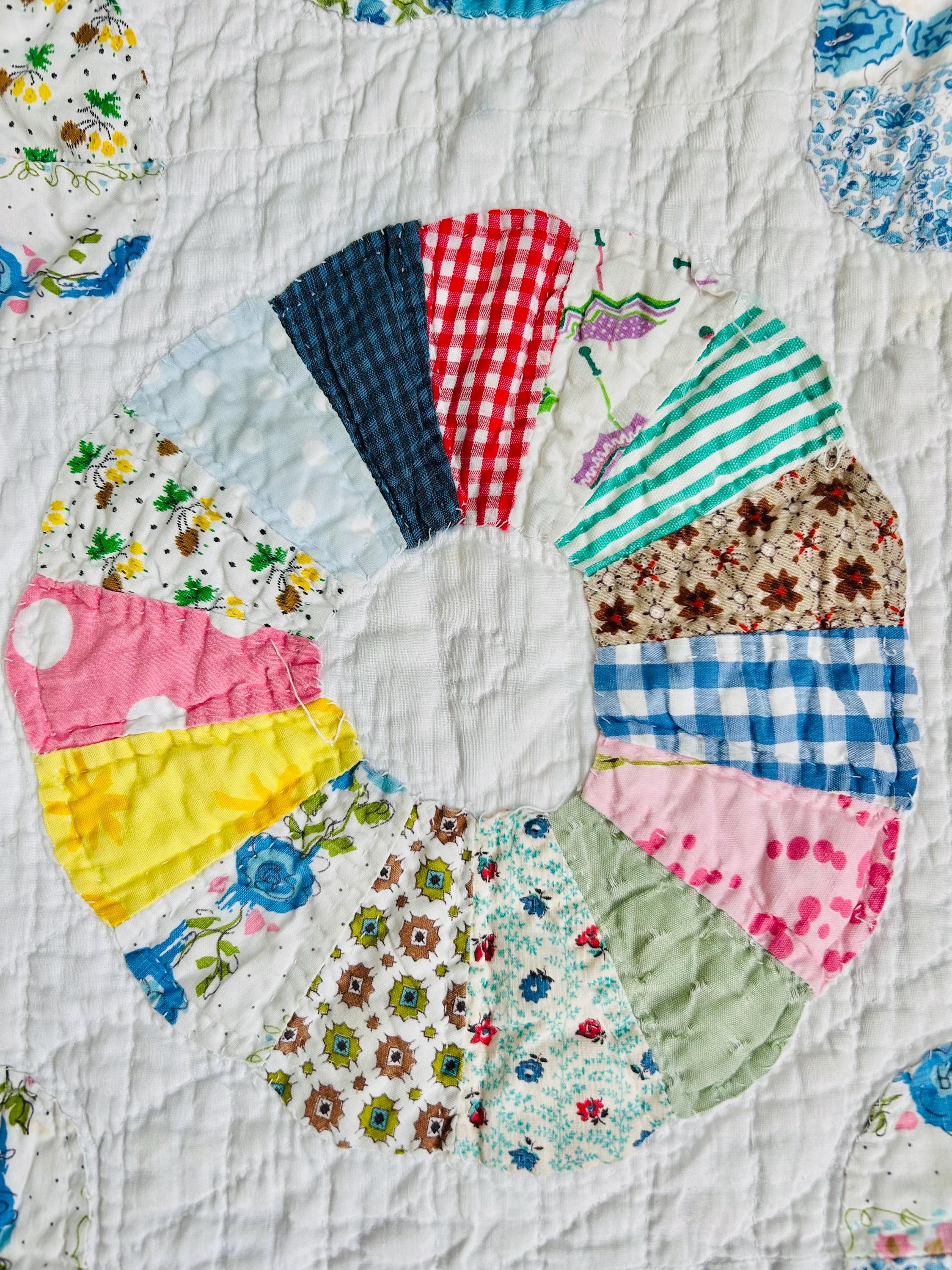 CONDITION: This little quilt has been soaked and hand-washed and is in excellent vintage condition with one small -1/8-inch dark mark in the middle of one of the Dresden Plates circles - see photos. There is also age-related fading to some of the fabrics.