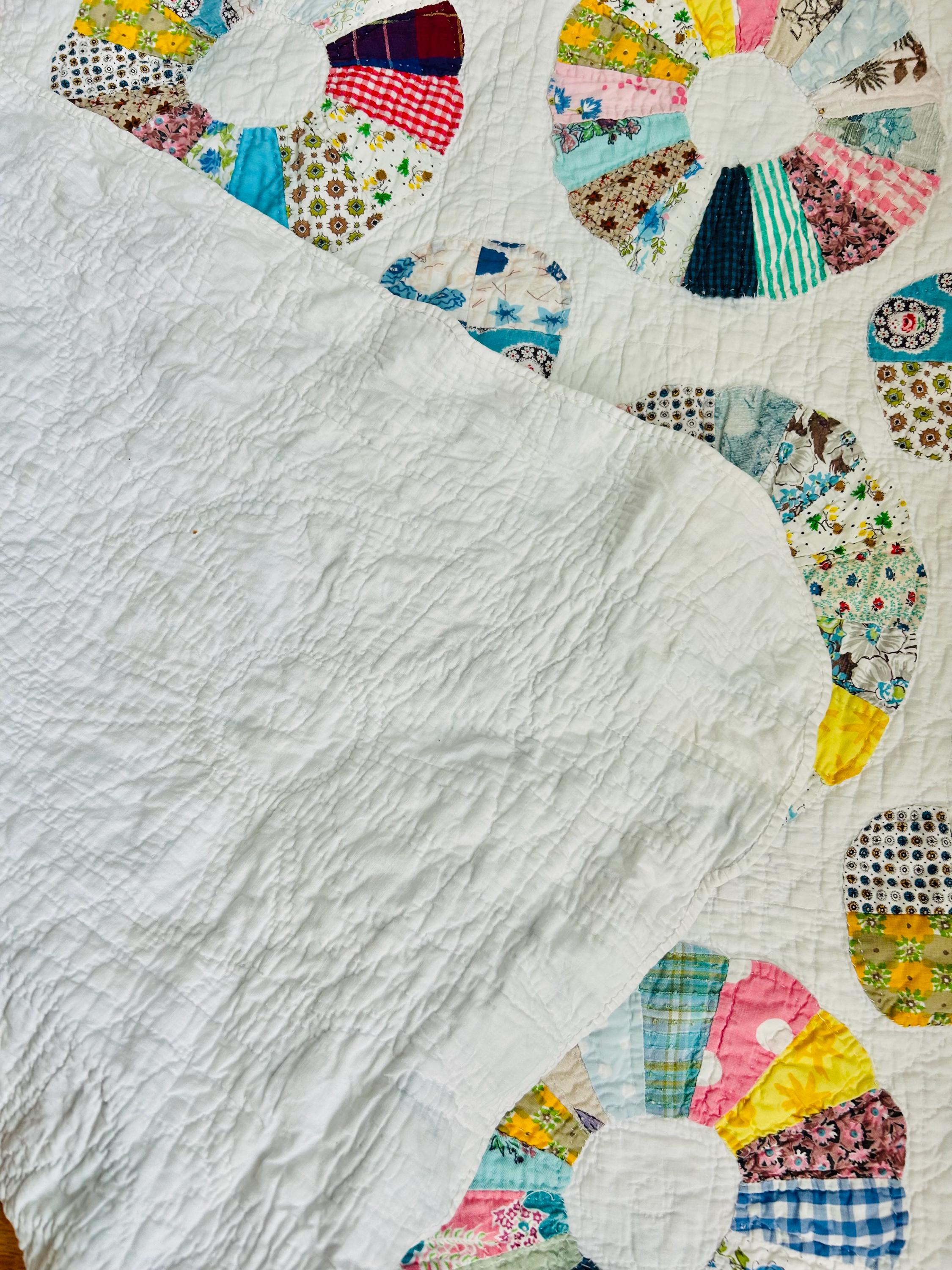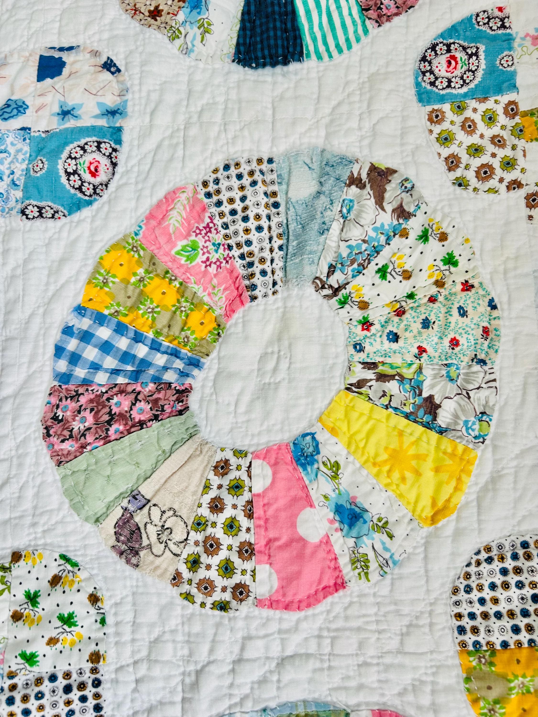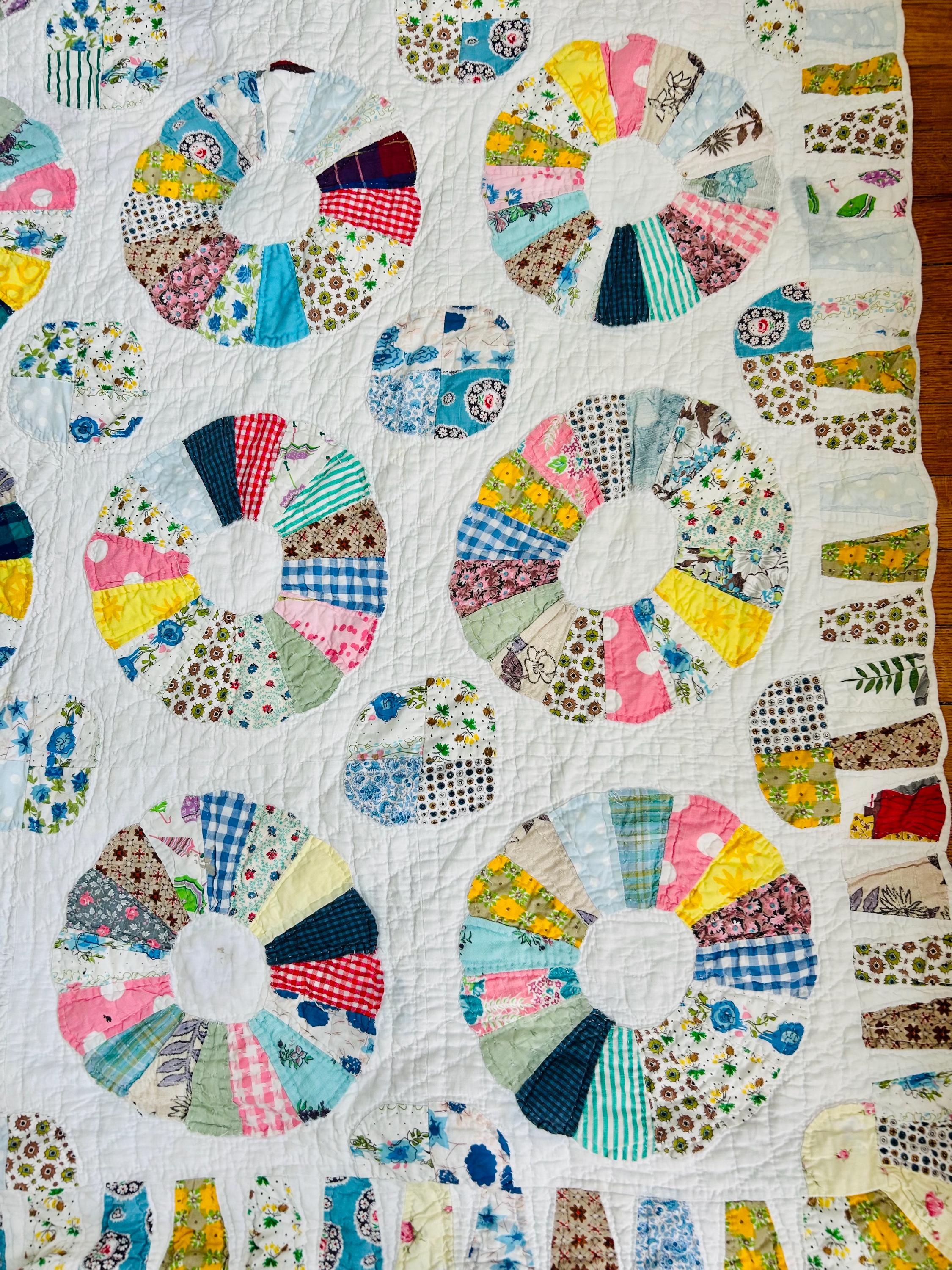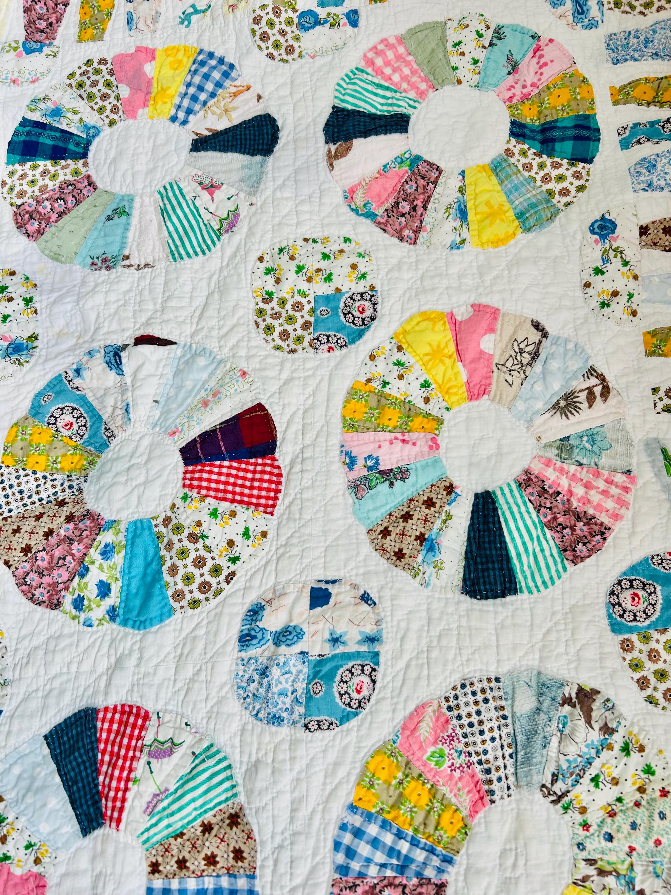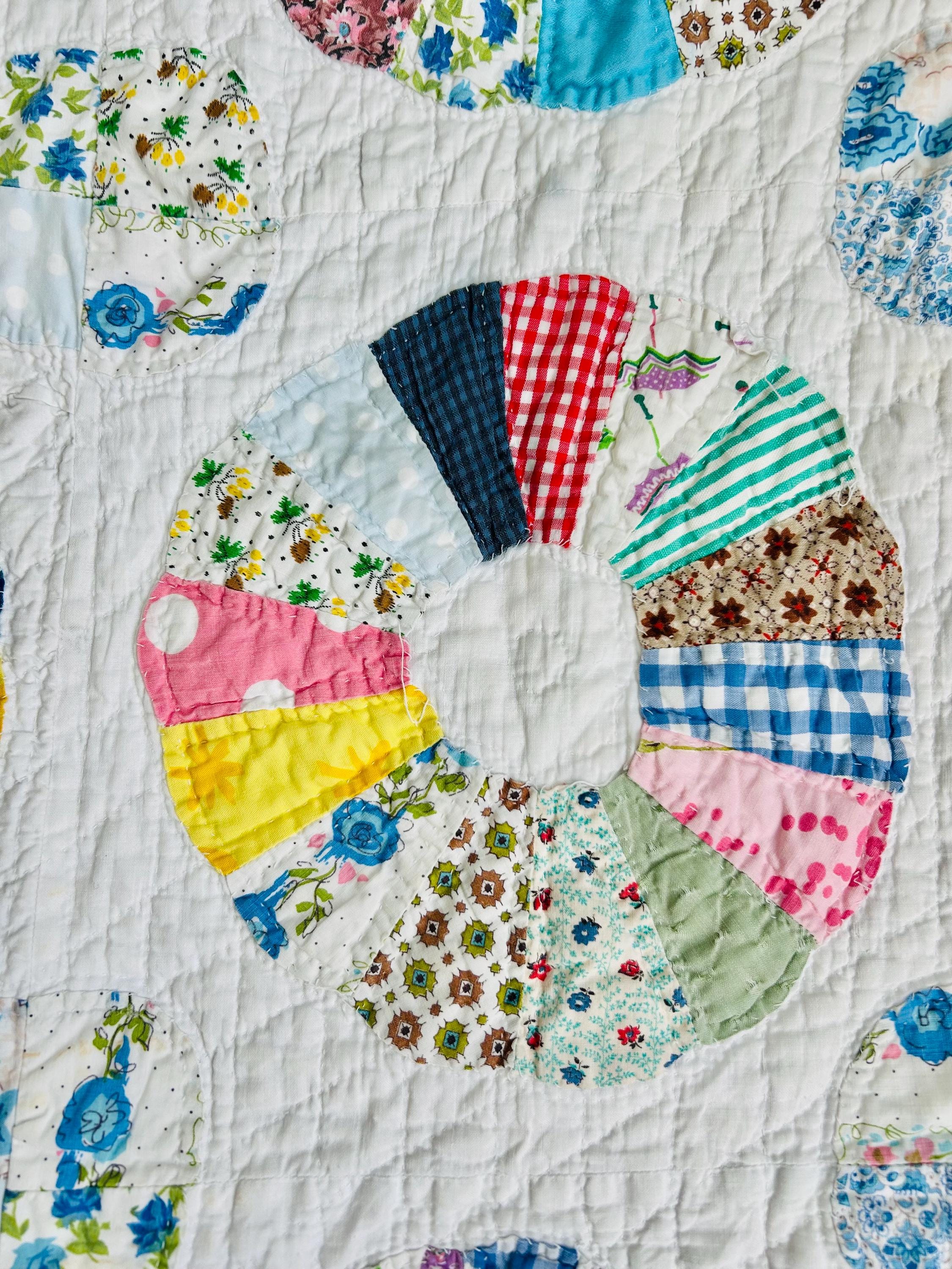 CONDITION: This little quilt has been soaked and hand-washed and is in excellent vintage condition with one small -1/8-inch dark mark in the middle of one of the Dresden Plates circles - see photos. There is also age-related fading to some of the fabrics.