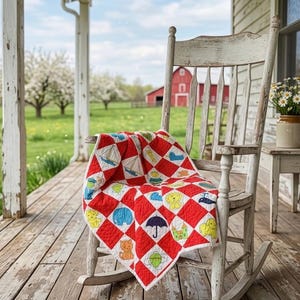 CONDITION: The quilt is in excellent vintage condition with one patch/repair to the red border.